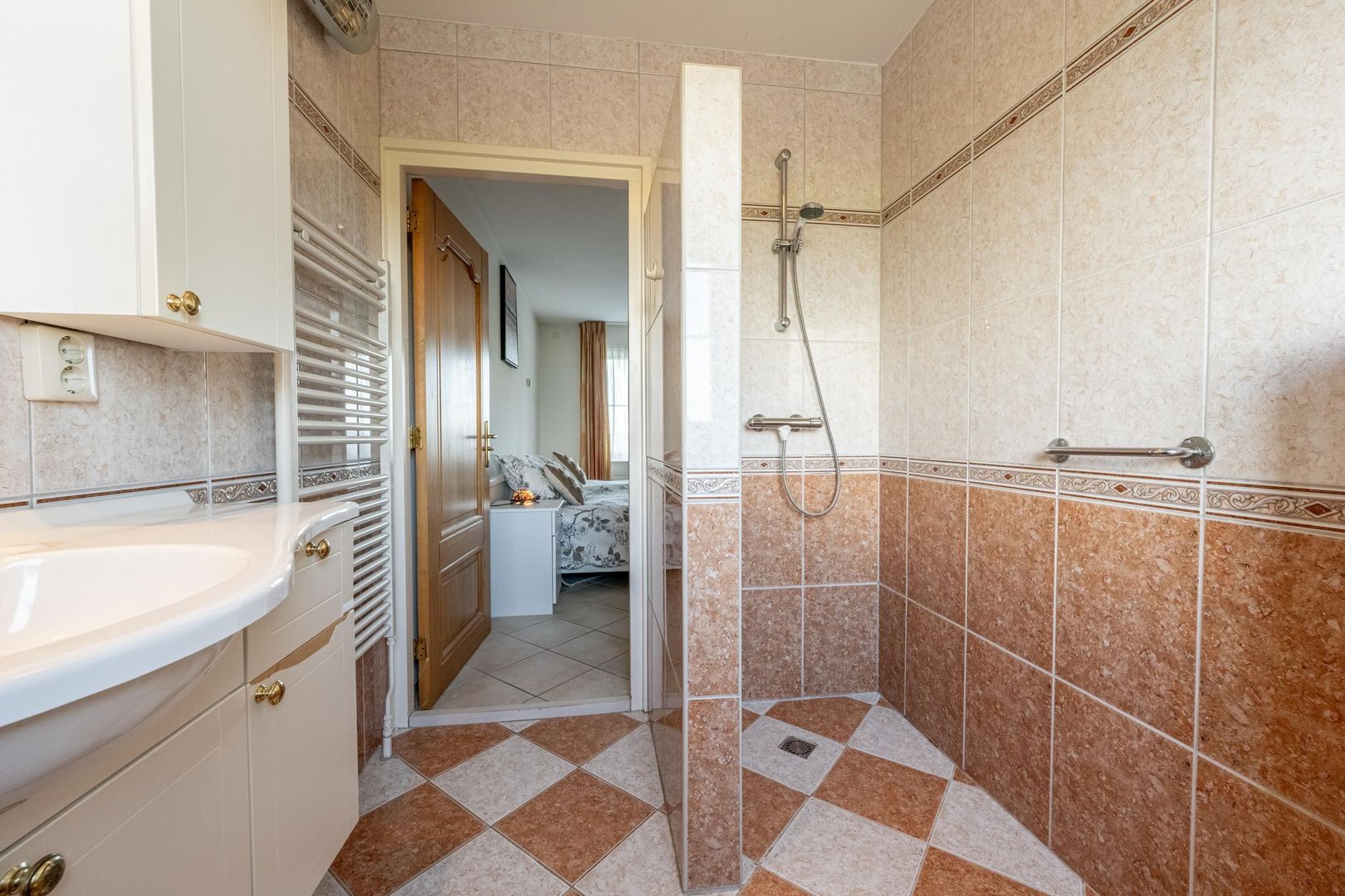 Ook een ruime slaapkamer met badkamer zijn aanwezig op de begane grond.