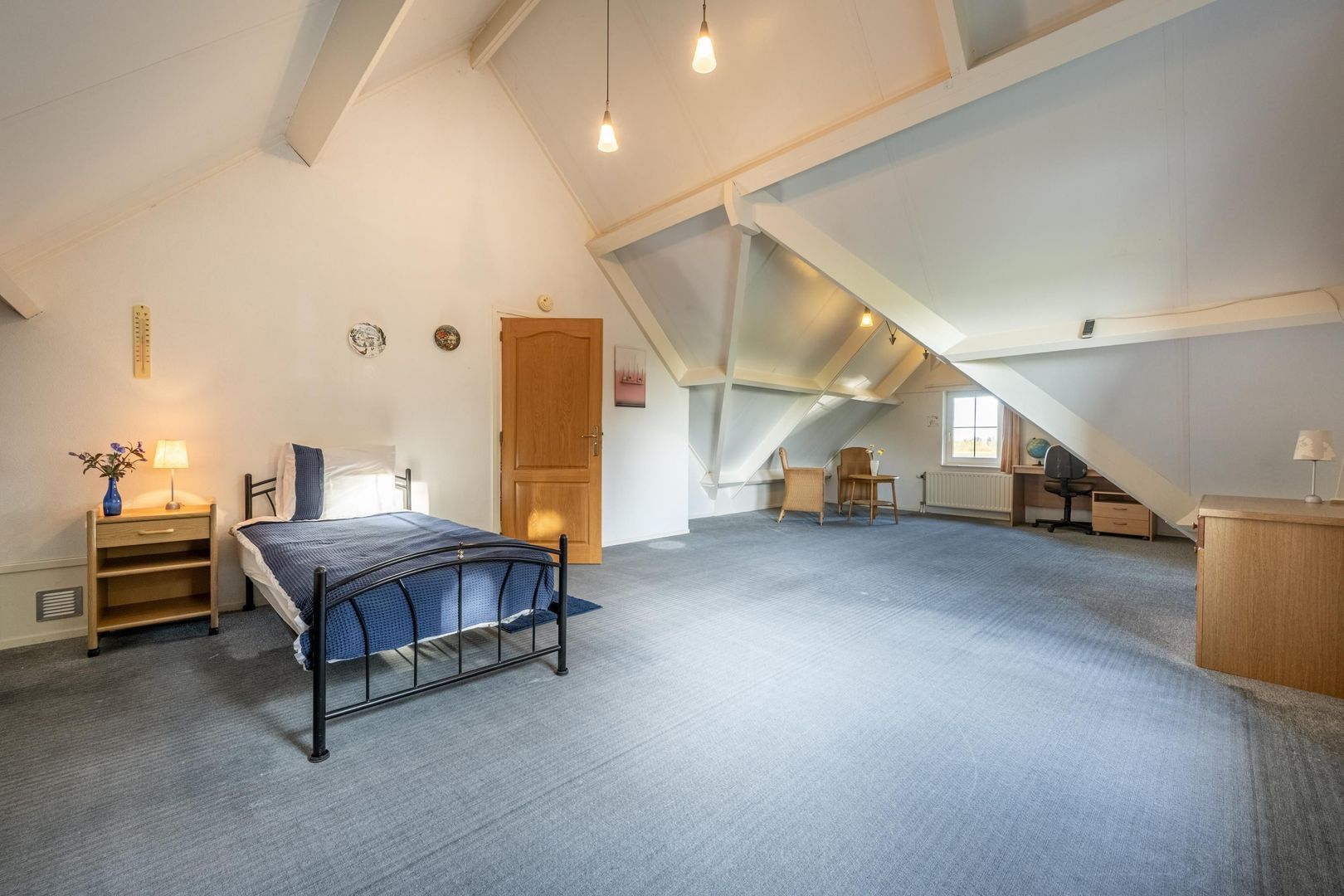 Hier zijn nu twee kamers gemaakt, maar een alternatieve indeling met meer kamers is zeker mogelijk.