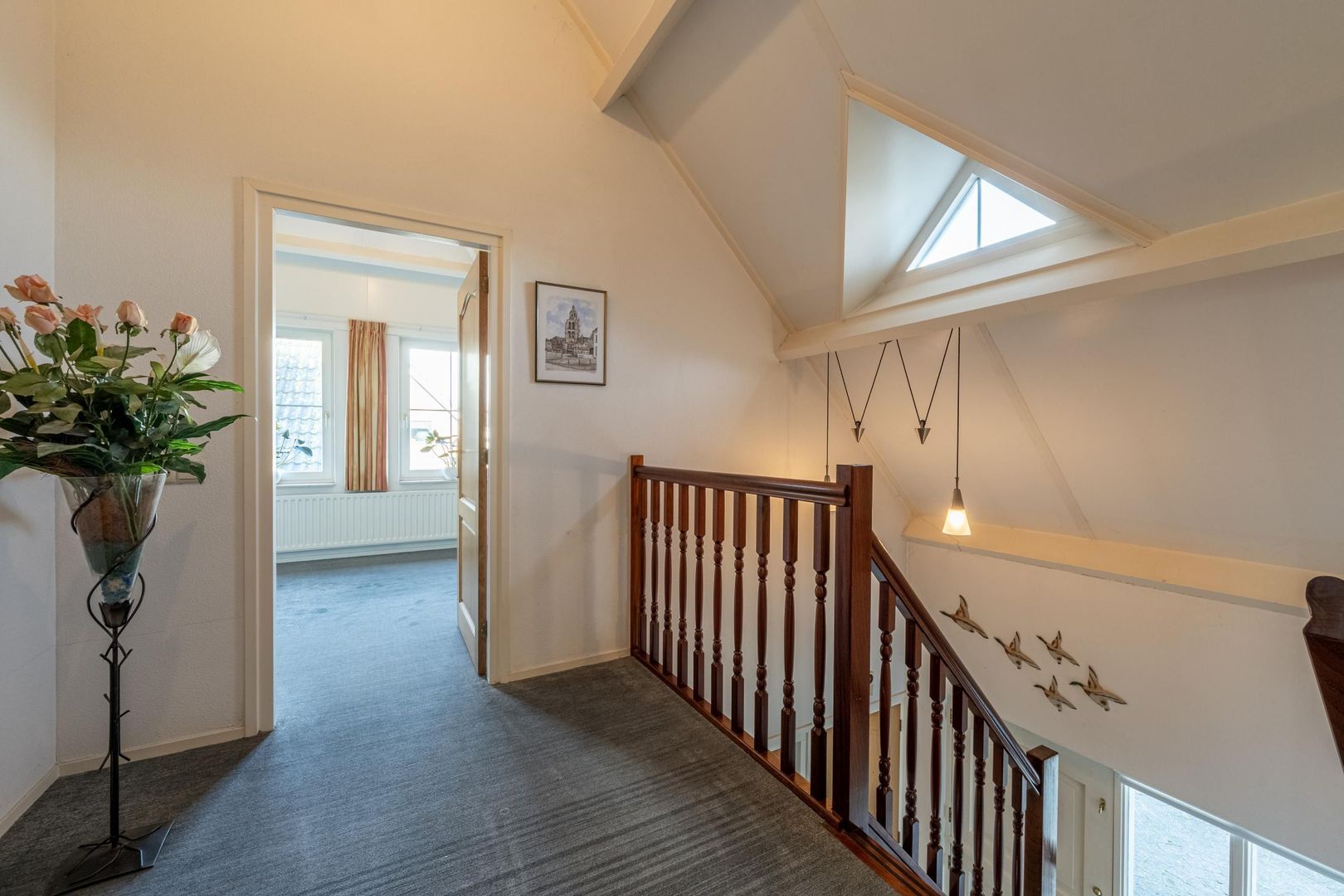 De verdieping is verrassend ruim. De overloop met vide heeft extra licht vanuit de kenmerkende dakkapel.