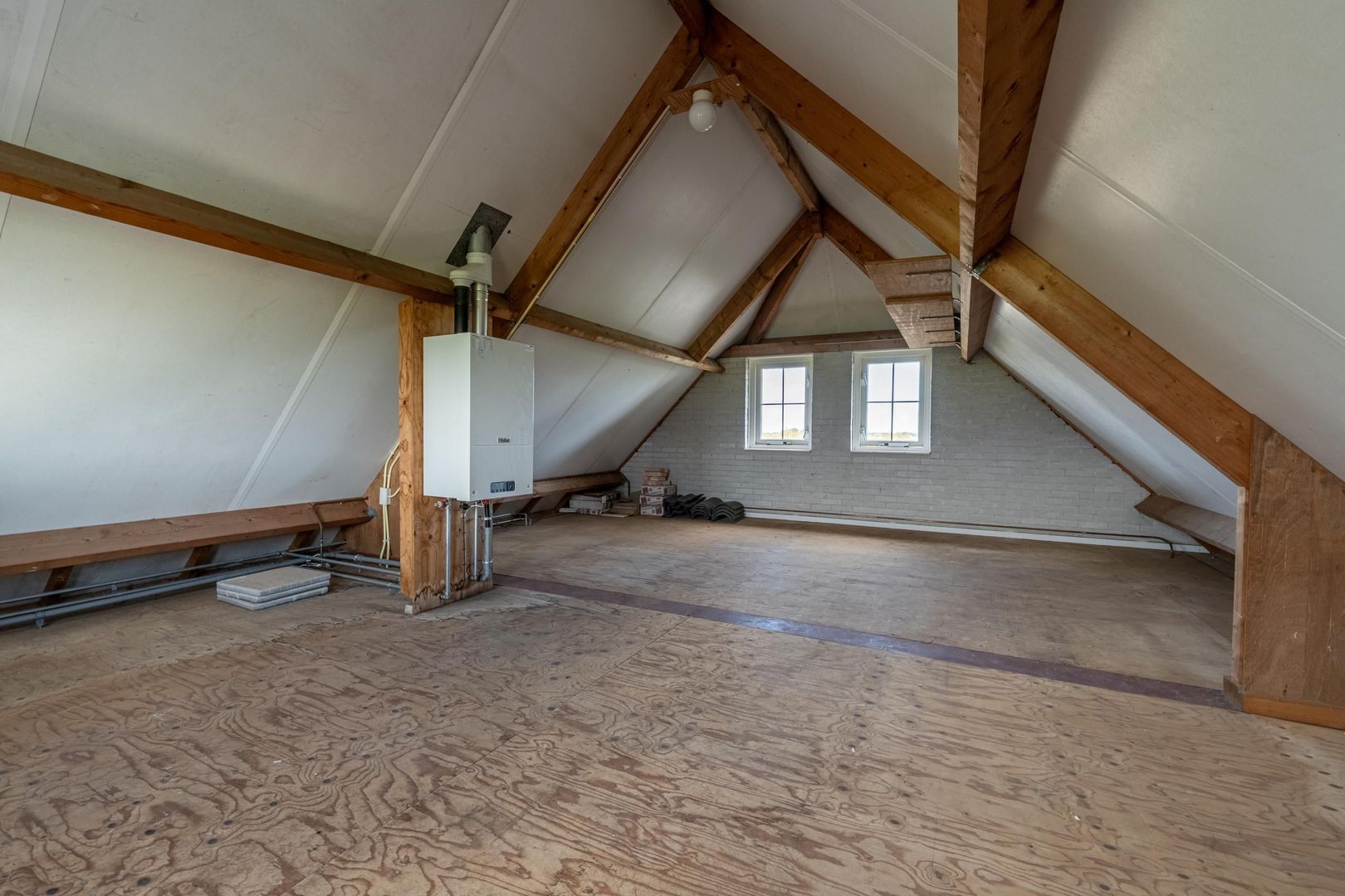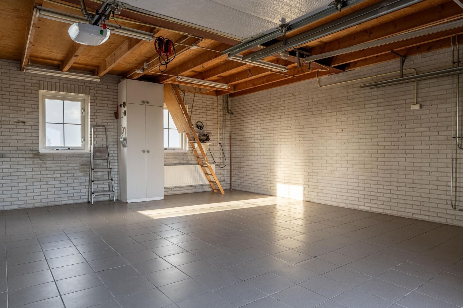Deze is geschikt voor twee auto's en heeft bovendien een grote zolder die met een vlizotrap bereikbaar is.