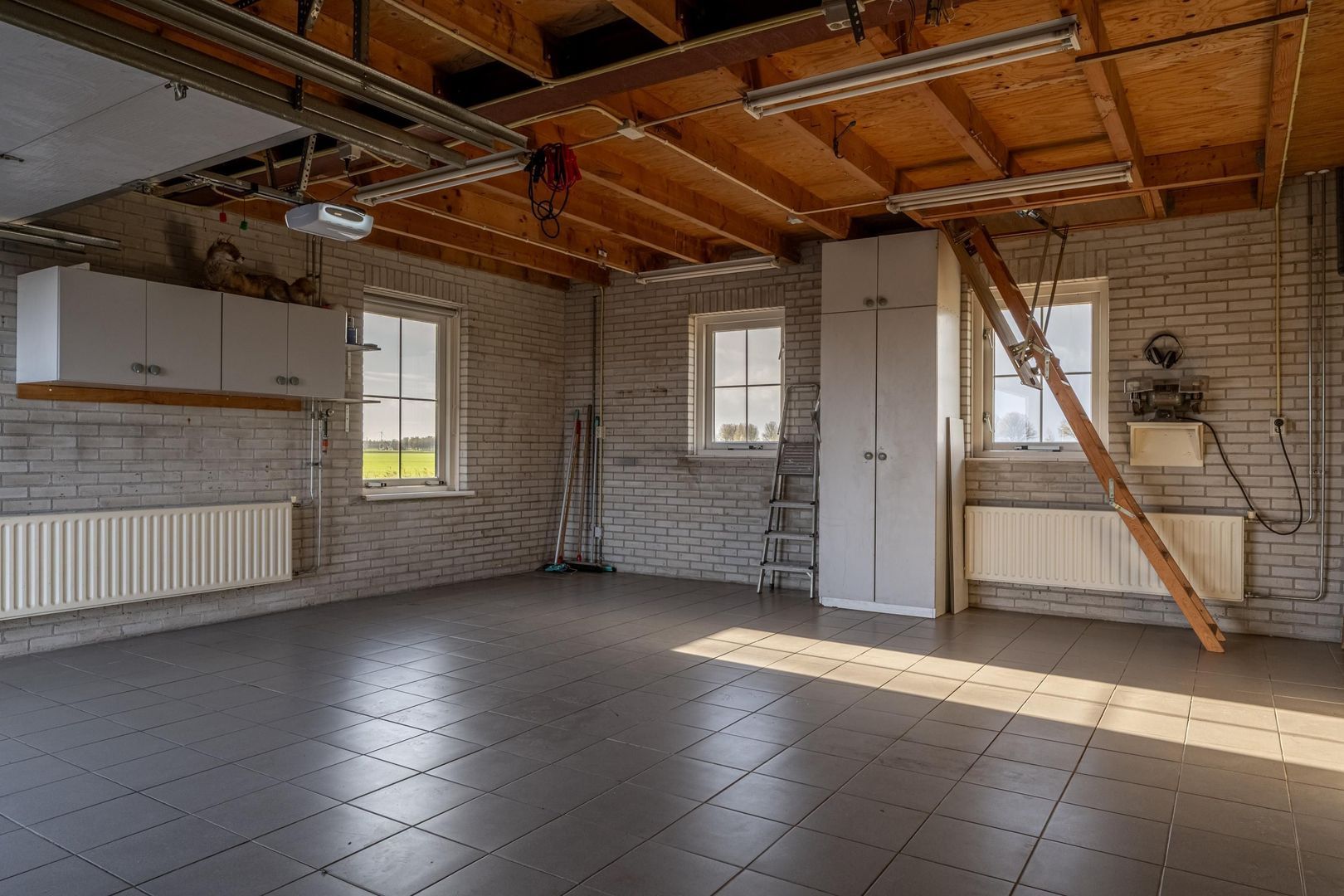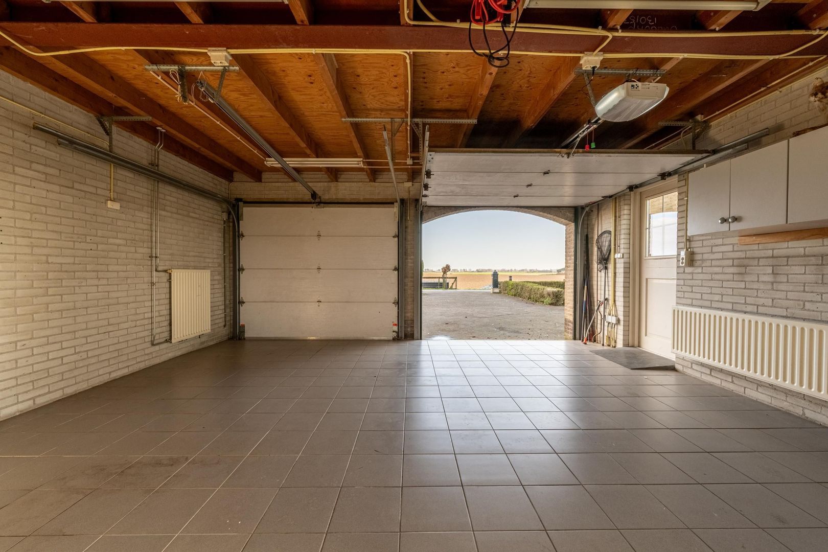 Met twee elektrische deuren, een plavuizen vloer, diverse ramen en verwarming biedt deze ruimte ook andere gebruiksmogelijkheden.