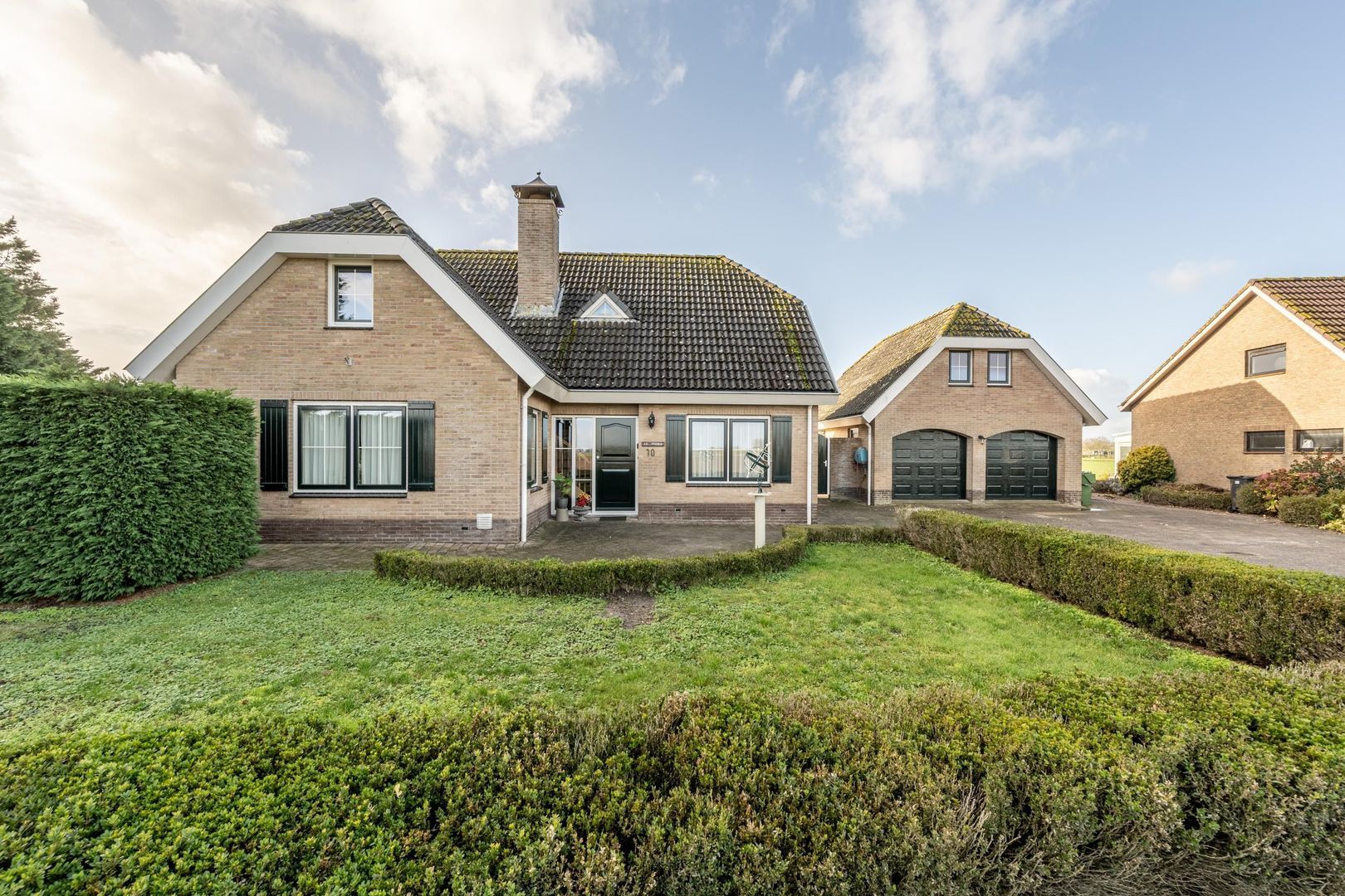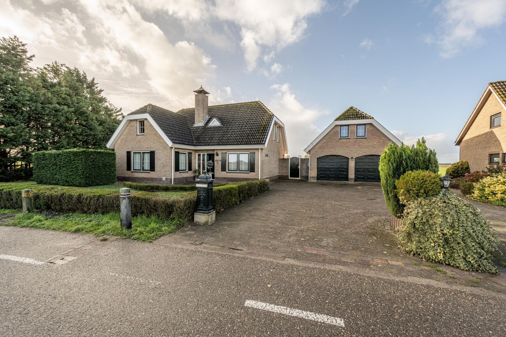De vrijstaande garage is eveneens gebouwd met spouwmuren.