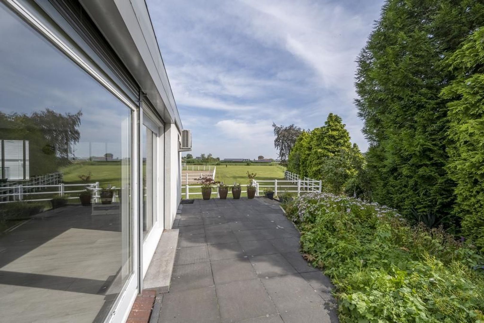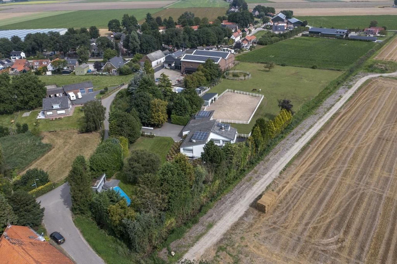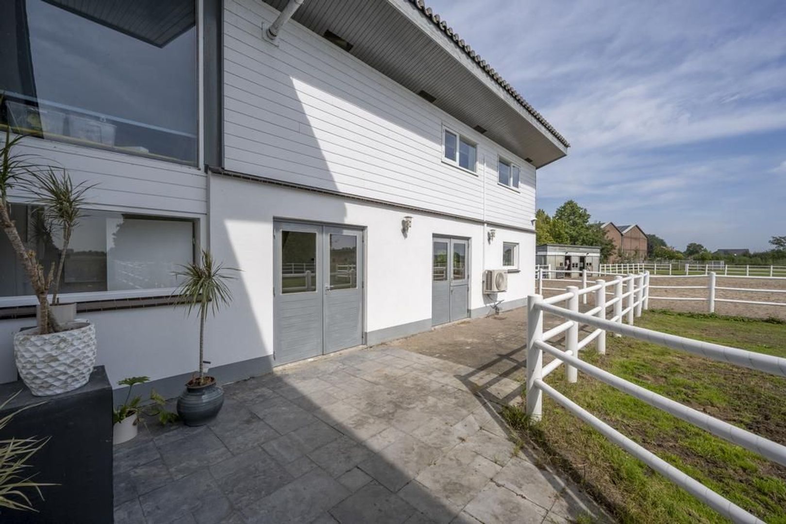 Buiten op het ruime erf zijn alle voorzieningen aanwezig voor het houden van meerdere paarden (of andere dieren). Het object bevat een ruime paddock/rijbak, longeercirkel/roundpen en meerdere ruime stallen met zadelkamer en fourageruimte. De stallen en paddock/rijbak en het grote weiland zijn onderling verbonden en kunnen desgewenst ook onderling afgesloten worden. Dit maakt de omstandigheden perfect voor het op zo natuurlijk mogelijke wijze huisvesten van paarden waaronder een paddock paradise. Door de ligging van de paardenvoorzieningen zijn de paarden steeds zichtbaar vanuit de woonkamer en vanuit de kantoren.