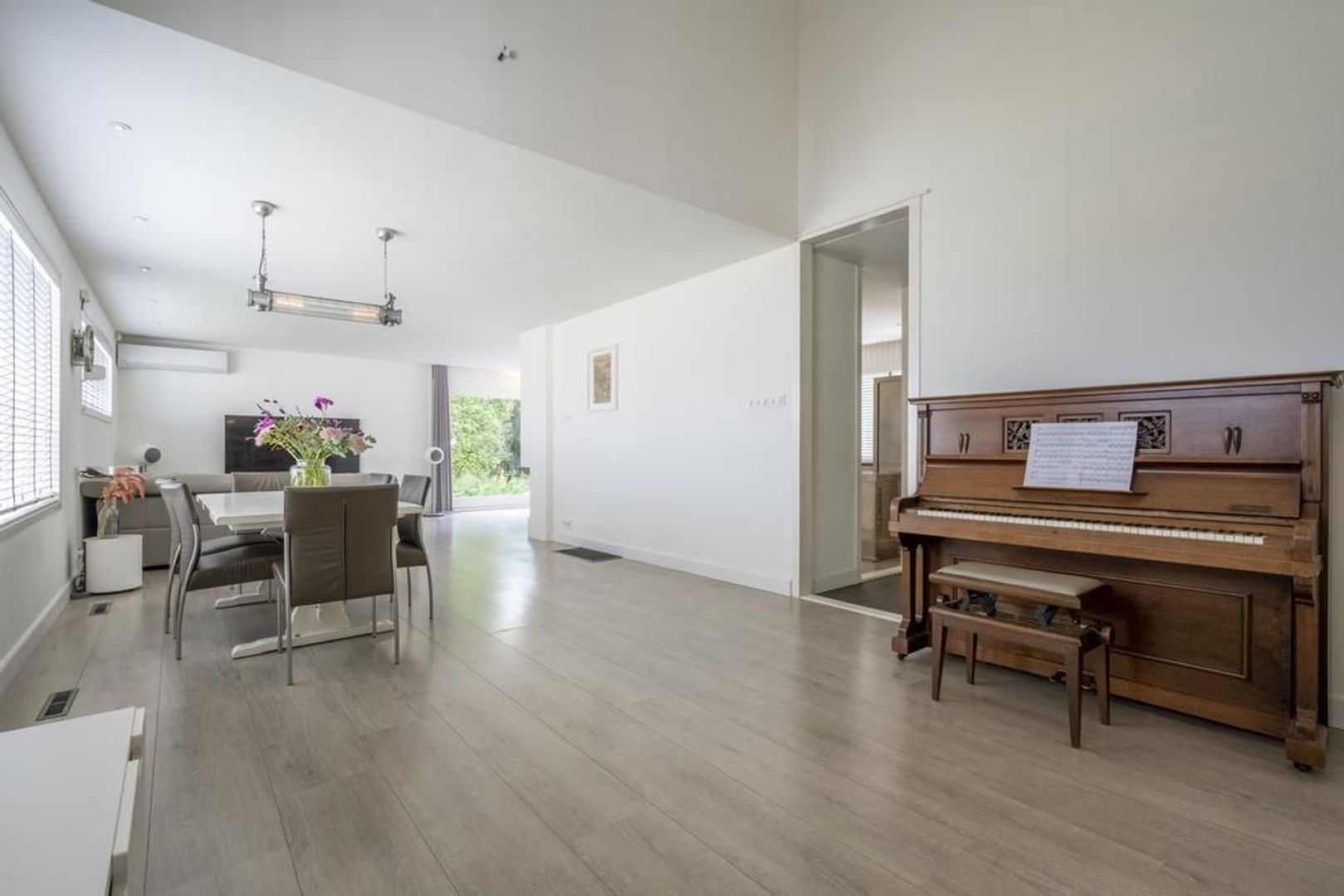 Op de begane grond beschikt de woning over een riante woonkamer met grote raampartijen en schuifpui, zodat maximaal van het uitzicht (en de paarden!) kan worden genoten. De openhaard zorgt voor een behaaglijke en gezellige sfeer. De ruime keuken is voorzien van een moderne hoekinrichting, met luxe inbouwapparatuur. Ook zijn er op deze woonlaag twee slaapkamers, waarvan de grootste met inloopkast, een fraaie badkamer en toilet. Niet te vergeten is de ruime garage, die vanuit de woning bereikbaar is. Boven de kantoorruimte bevindt zich nog een extra kantoorruimte, die multifunctioneel inzetbaar is. Dit kantoorgedeelte heeft een eigen toilet, keukenblok met inbouwapparatuur en eigen ingang, maar is ook via de woning bereikbaar.
