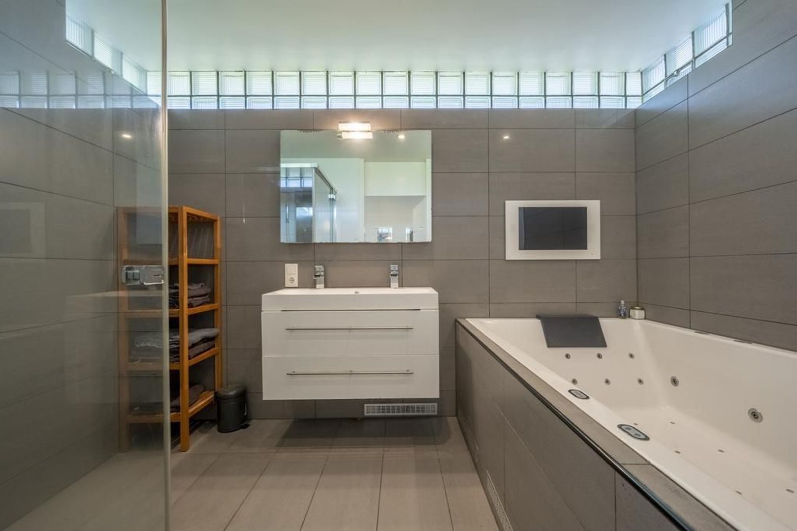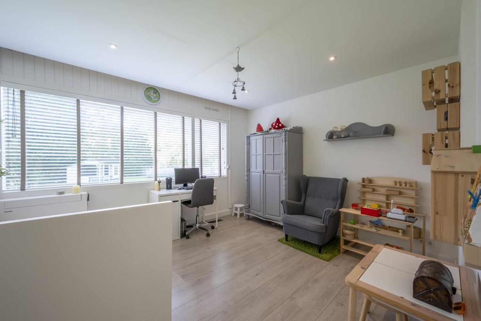 Op de verdieping zijn nog eens drie slaapkamers, een derde badkamer en veel bergruimte.