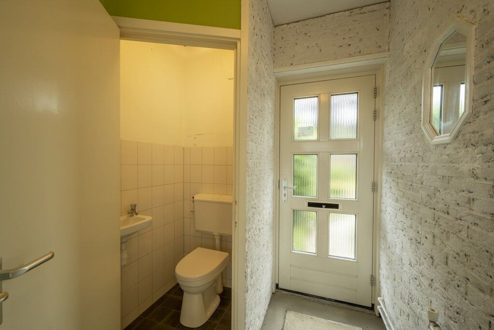 De indeling is globaal als volgt: entree, hal met toiletruimte en trapopgang. Doorzon woonkamer met grote ramen. Dichte keuken zonder inrichting.