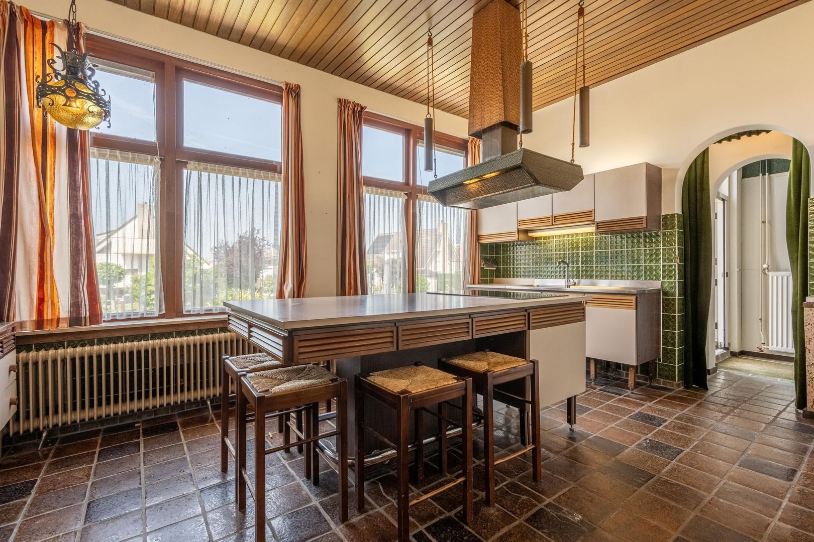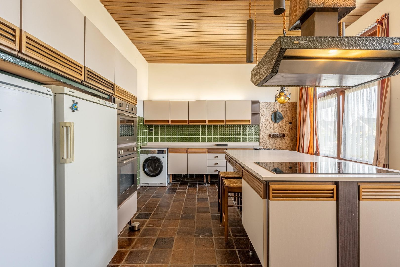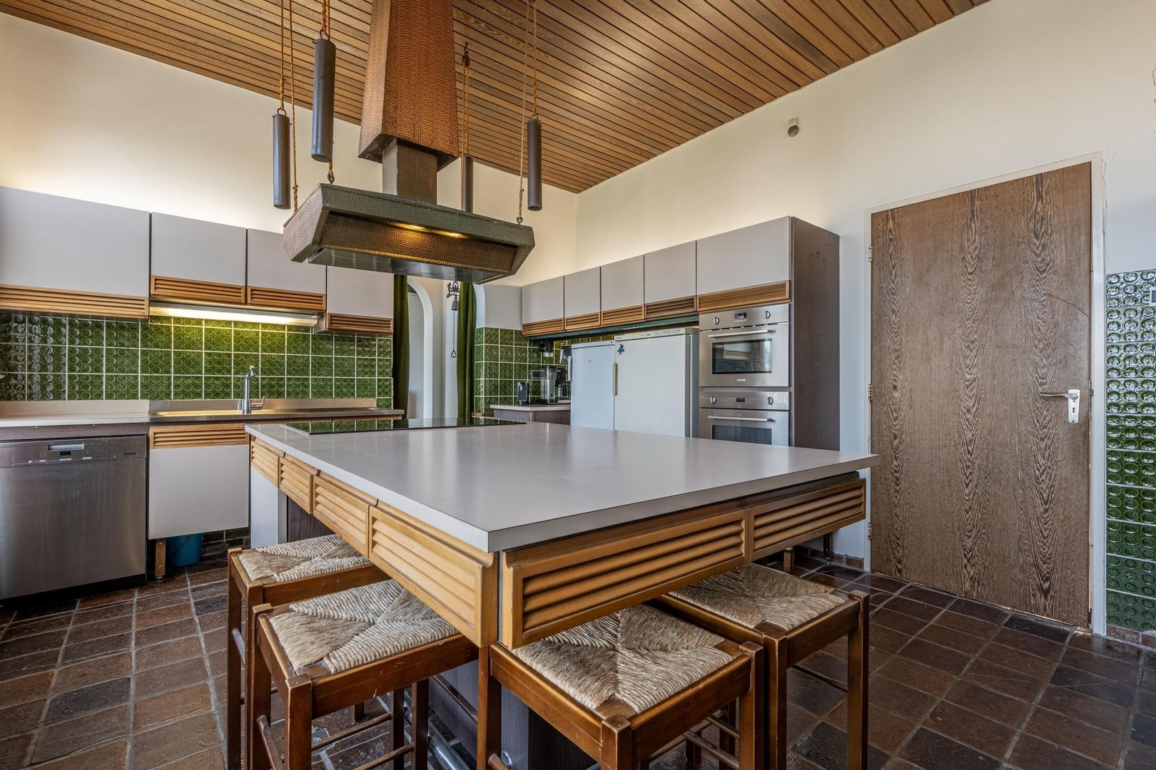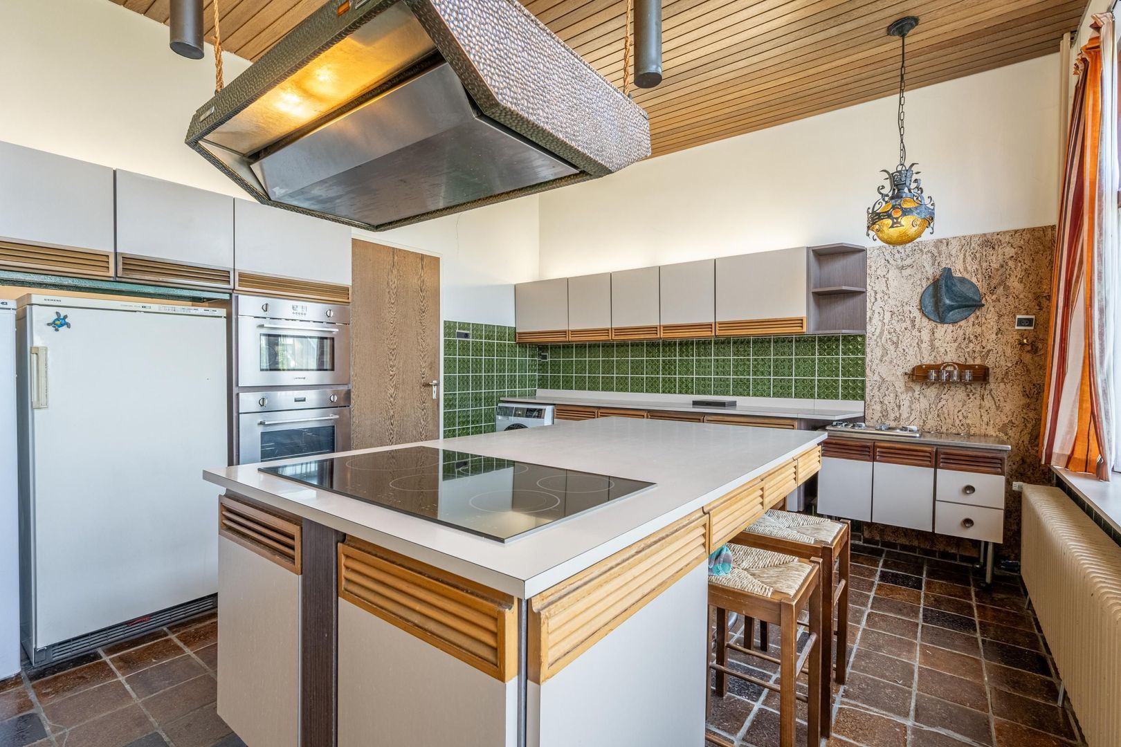 Aan de tuinzijde bevindt zich de keuken. Deze heeft een uitgebreide inrichting met o.a. een kookeiland. De apparatuur is omstreeks 2019 nog vernieuwd.