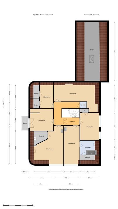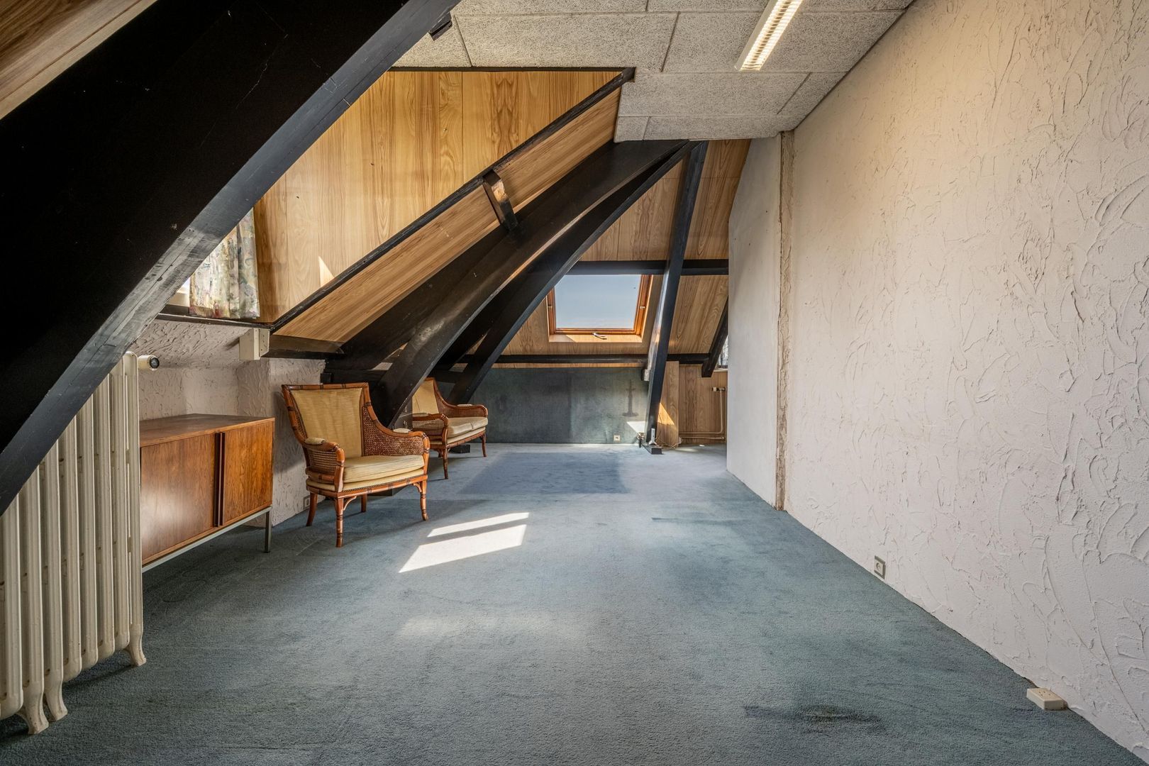 Een losse trap geeft toegang tot een ruime zolder (met een hoogte onder de nok van ruim 2,5 m). Ook boven de garages is nog een zolder.