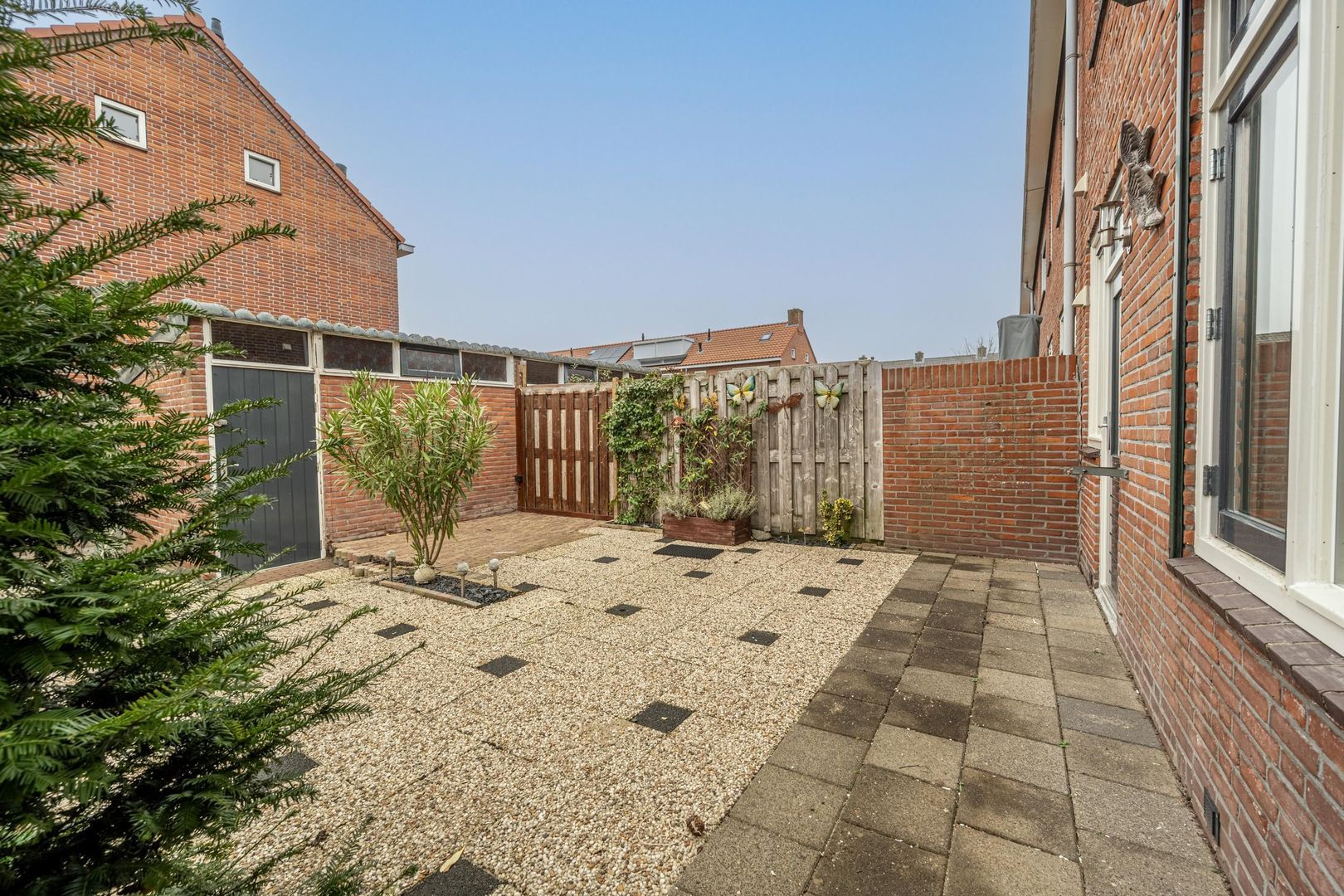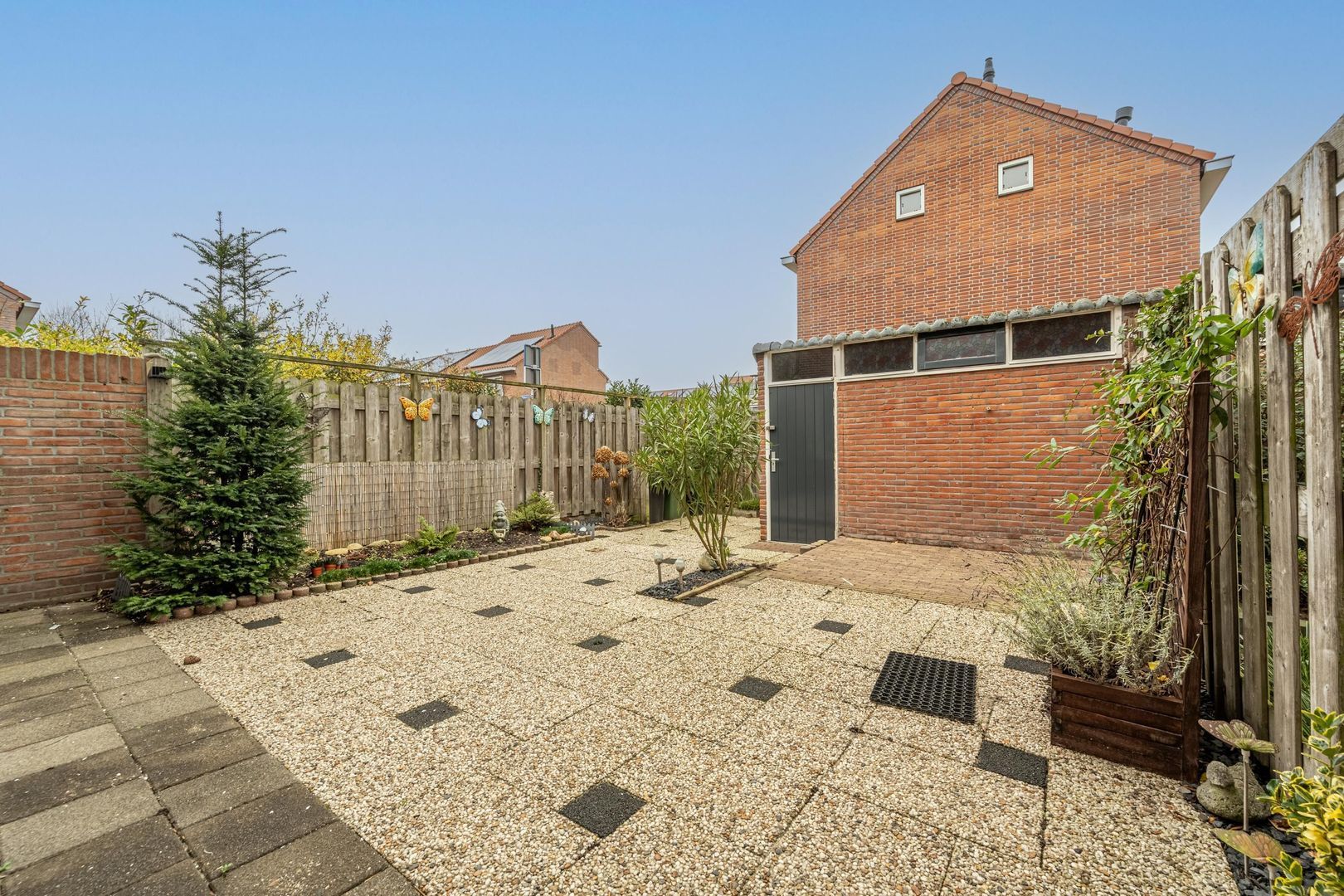 In de tuin staat een stenen berging.