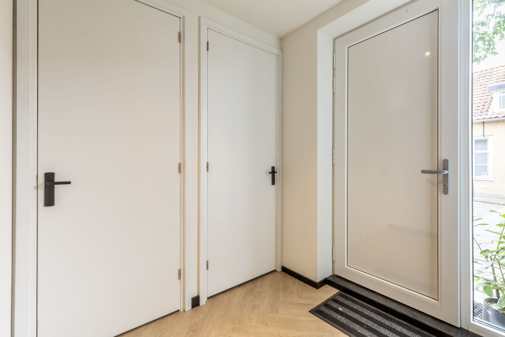 De indeling is als volgt: door de gezamenlijke zij-entree met de meterkast wordt de eigen hal bereikt. Hierin bevindt zich ook de moderne toiletruimte.