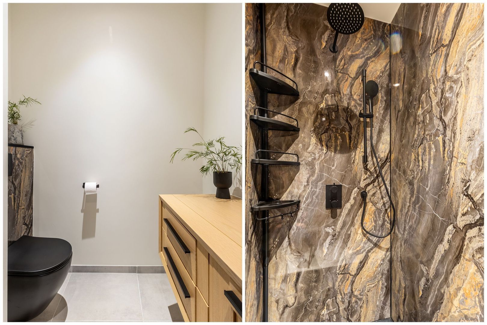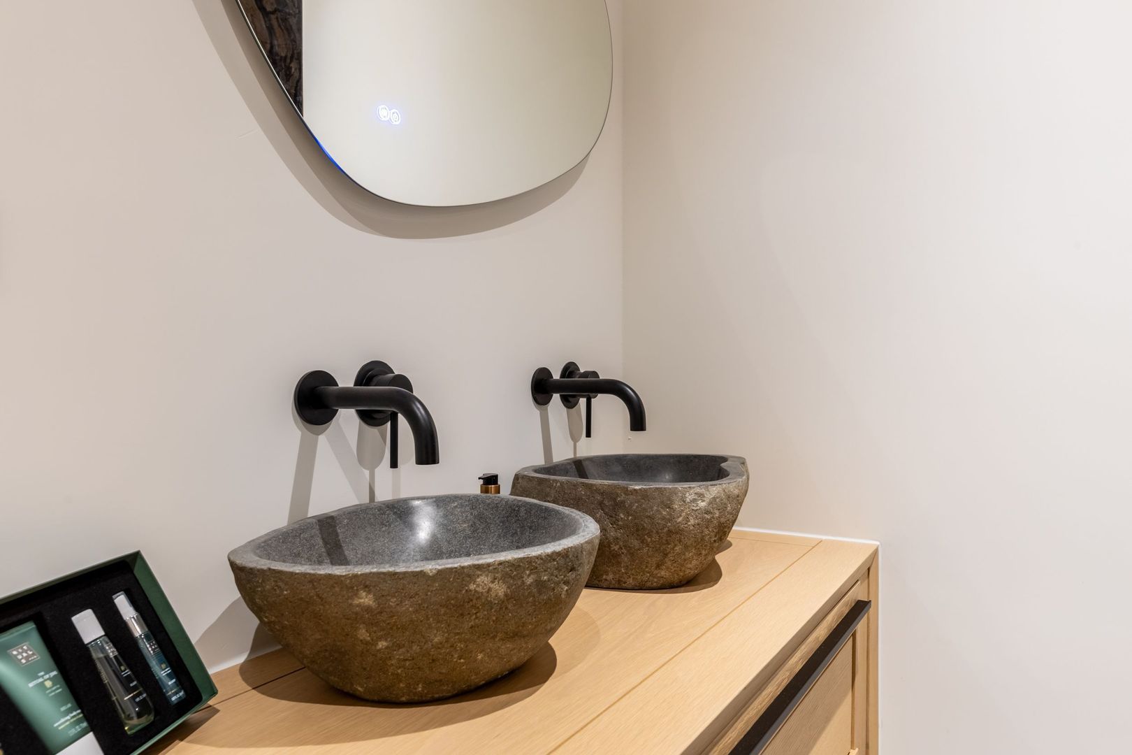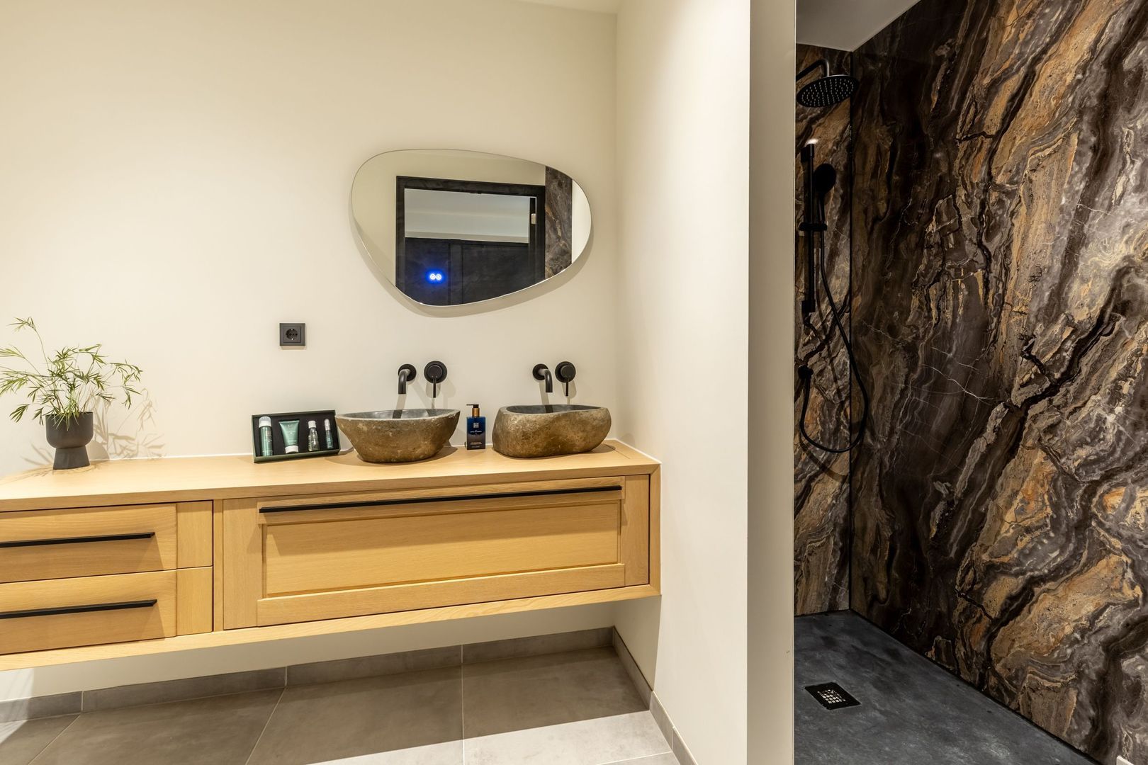 De badkamer is prachtig en qua stijl helemaal van deze tijd. Er is een heerlijke inloopdouche, een tweede toilet en een badkamermeubel met dubbele opzet wastafels. Fraai tegel- en stucwerk siert de badkamer.