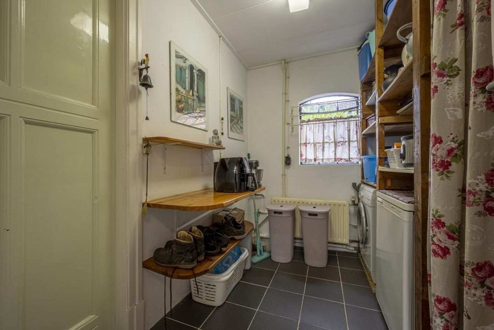 In de bijkeuken zijn de aansluitingen voor de wasapparatuur.