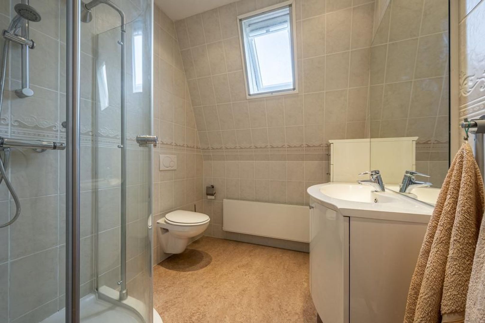 Op de eerste verdieping zijn vier slaapkamers, waarvan de voorste voorzien is van het kleine terras op de erker. De badkamer is ingericht met een doucheruimte, wastafelmeubel en sanibroyeur.