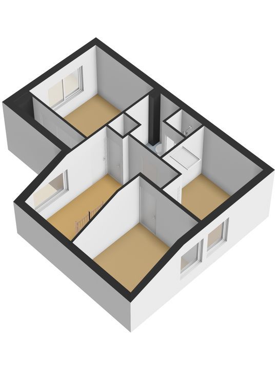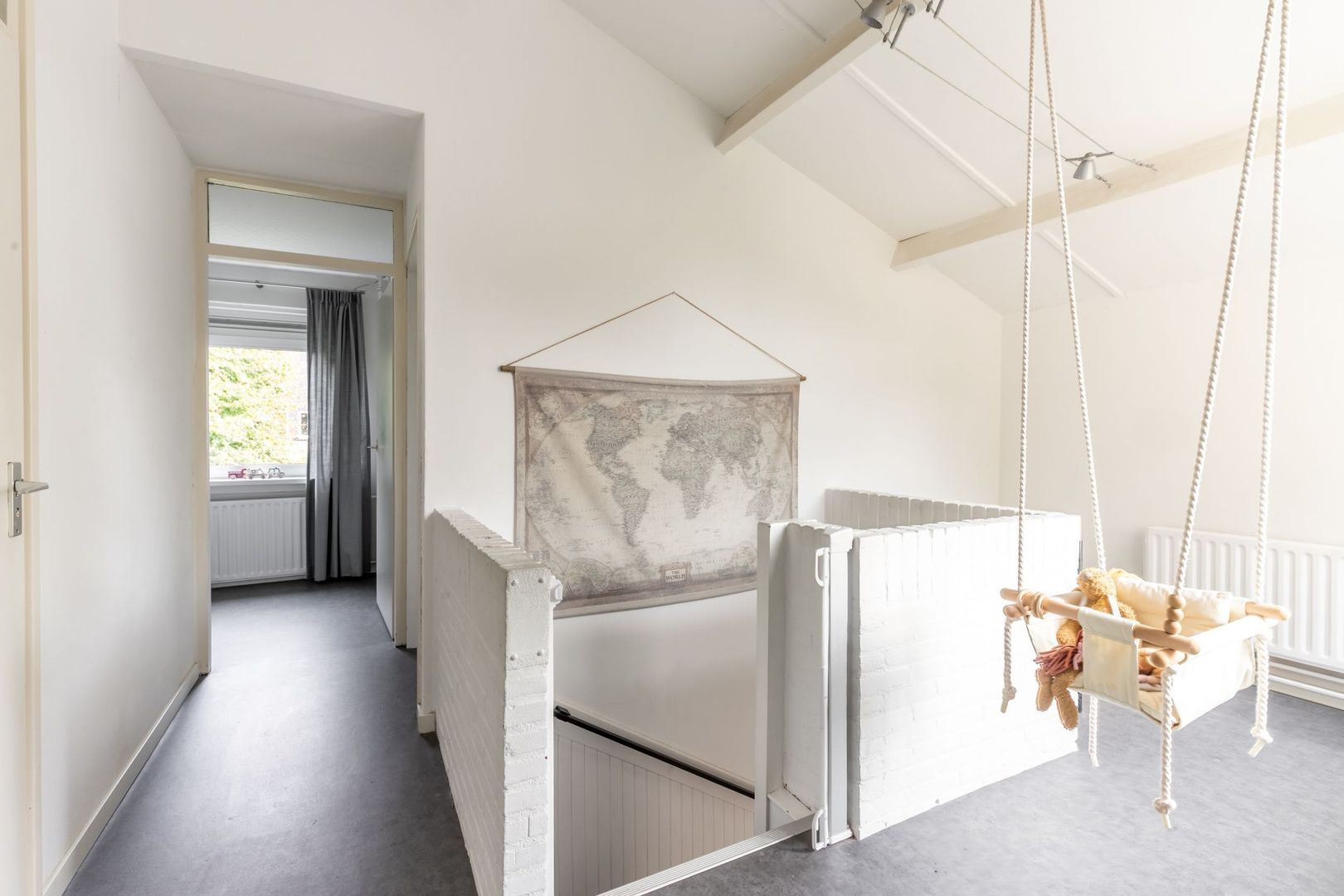 Op de eerste verdieping zijn drie slaapkamers, waarvan de grootste met een vaste kastenwand.