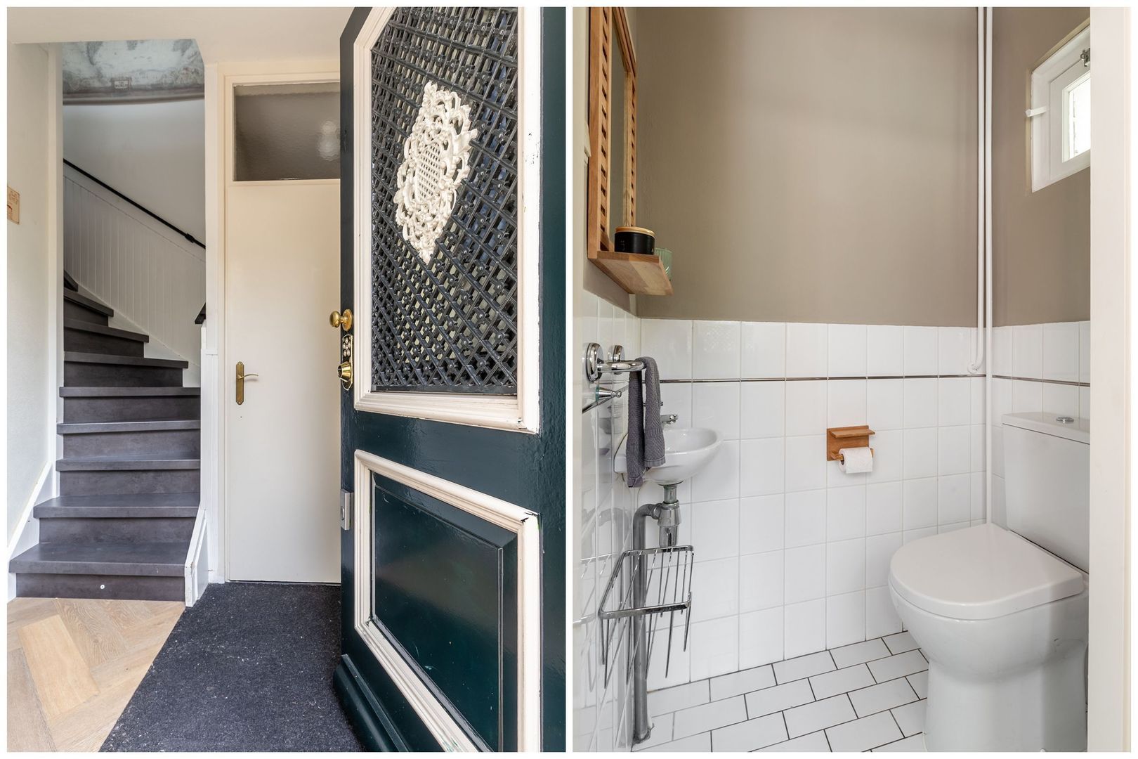 Indeling: via de oprit met eigen parkeergelegenheid wordt de entree van het huis bereikt. In de hal zijn de toiletruimte en de trapopgang naar de verdieping.