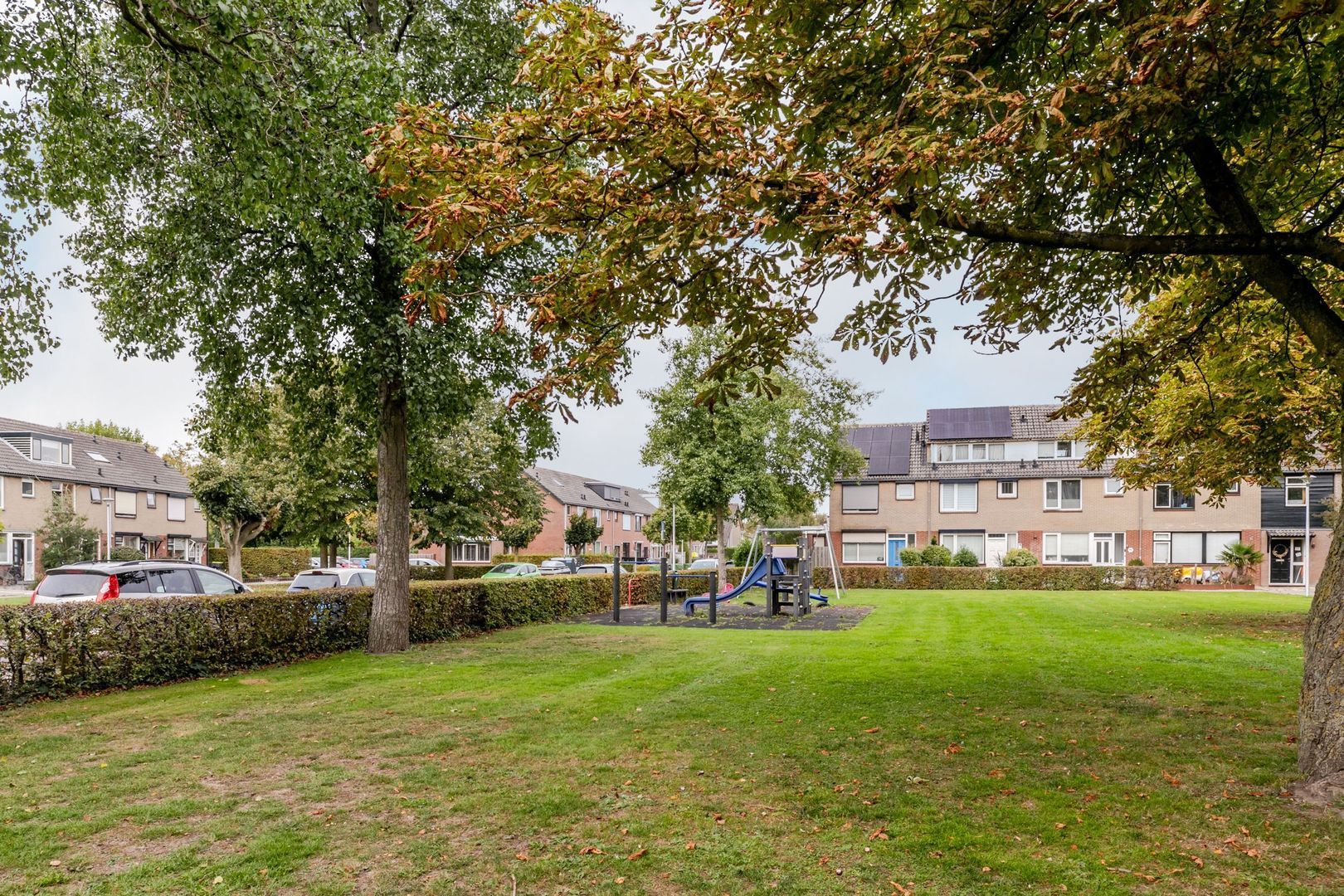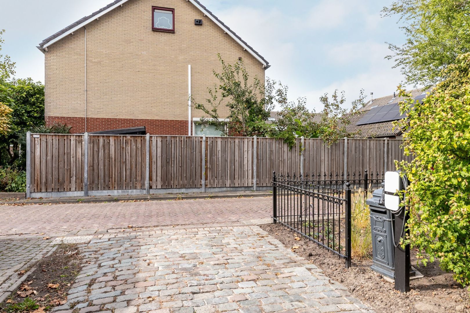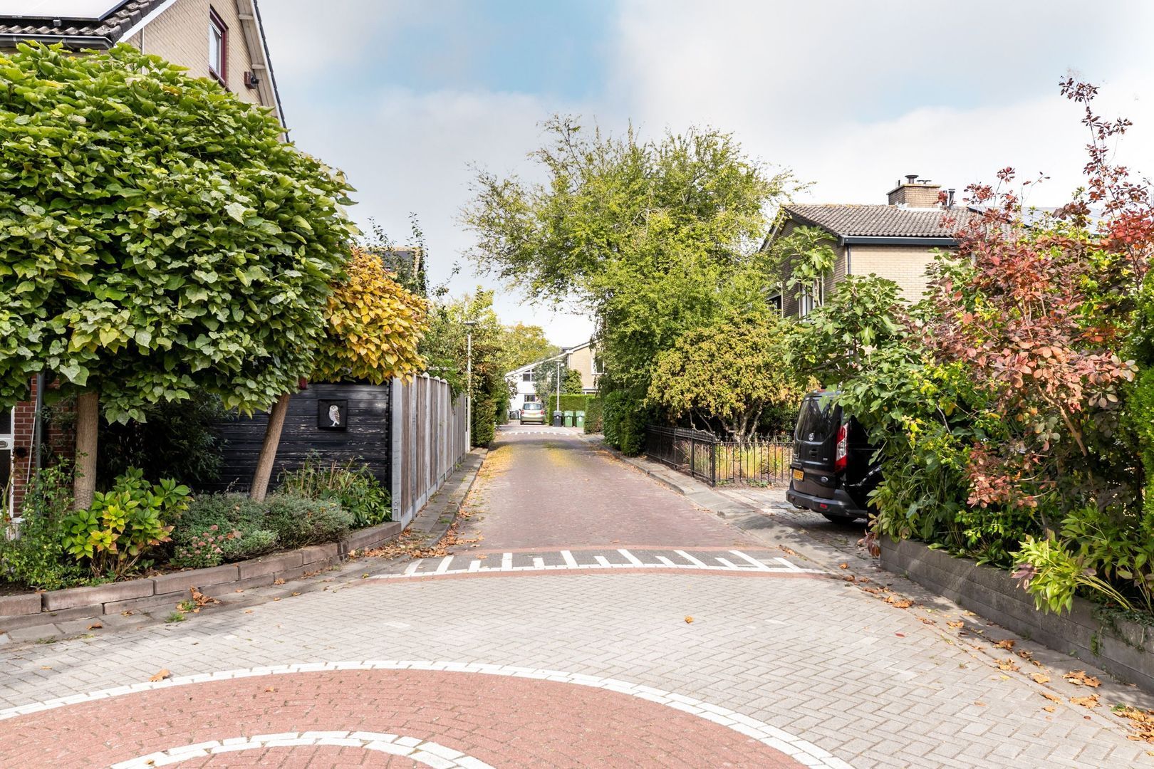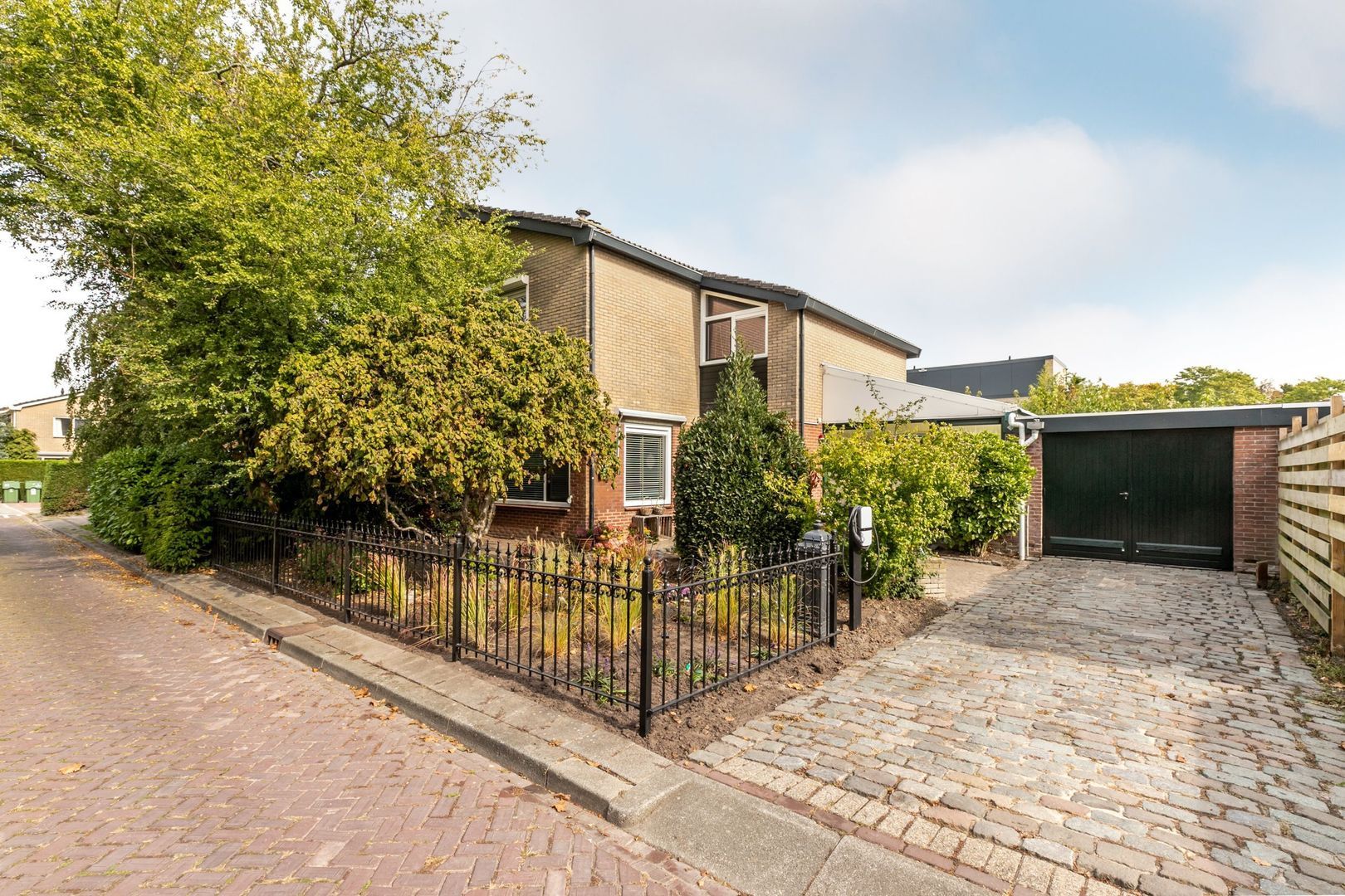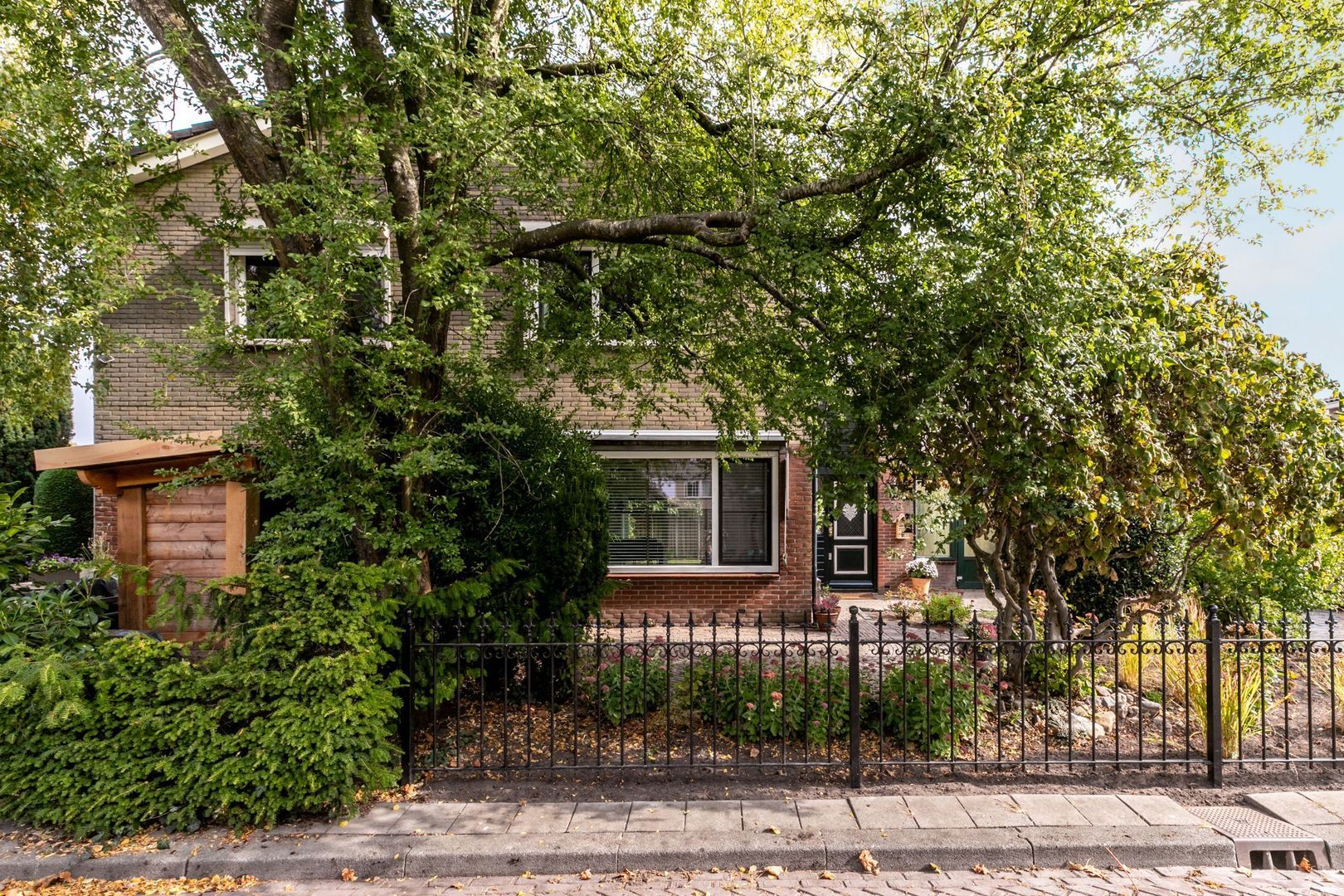 Ook de voortuin is royaal en biedt onder andere ruimte om te parkeren op eigen terrein.