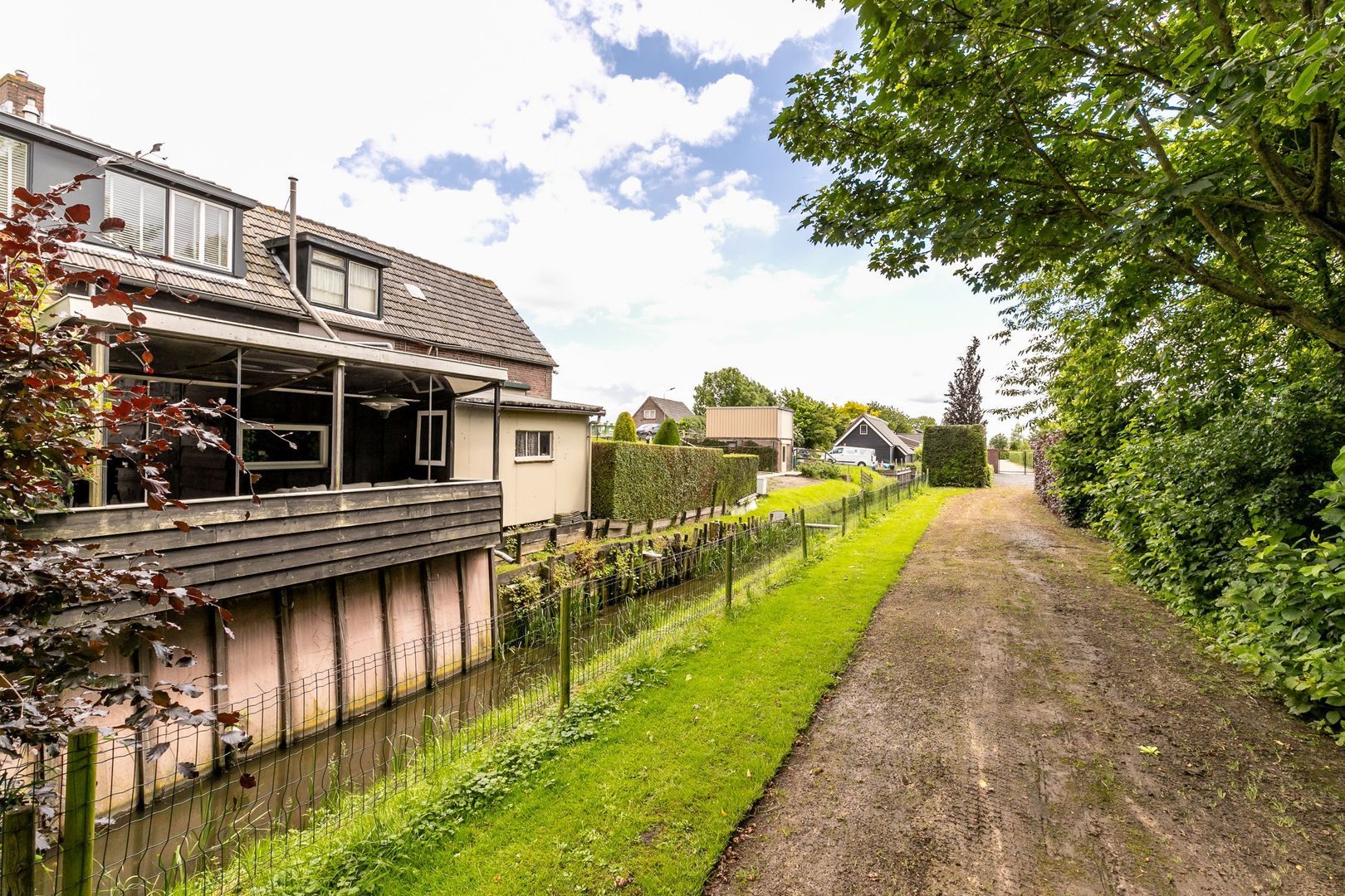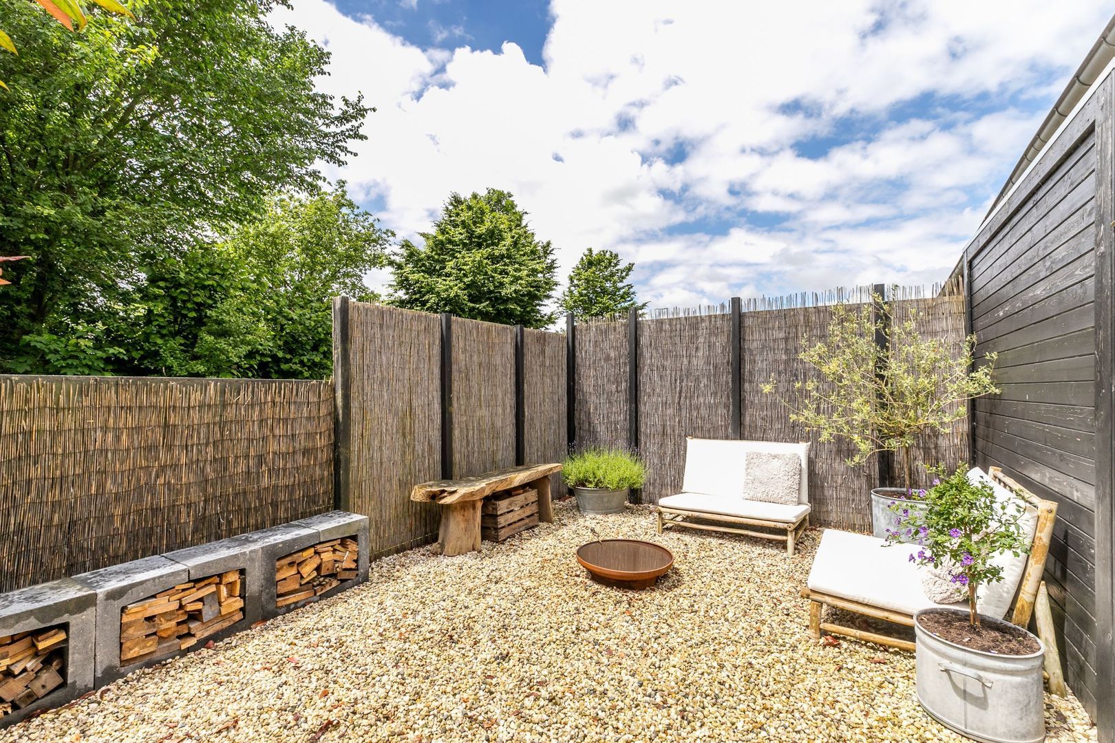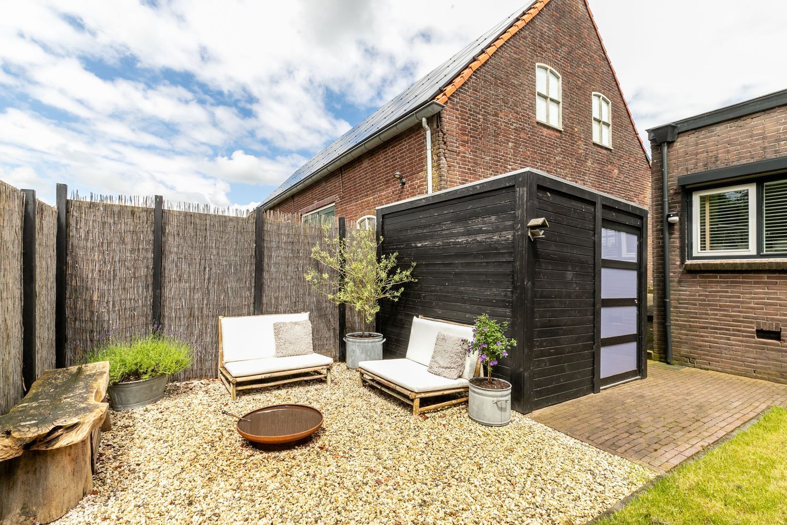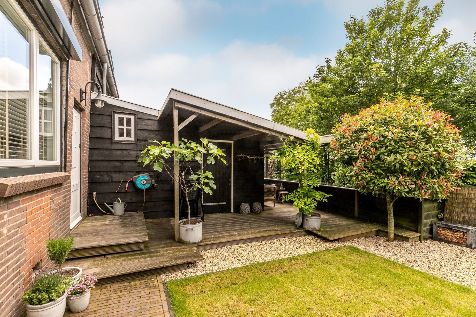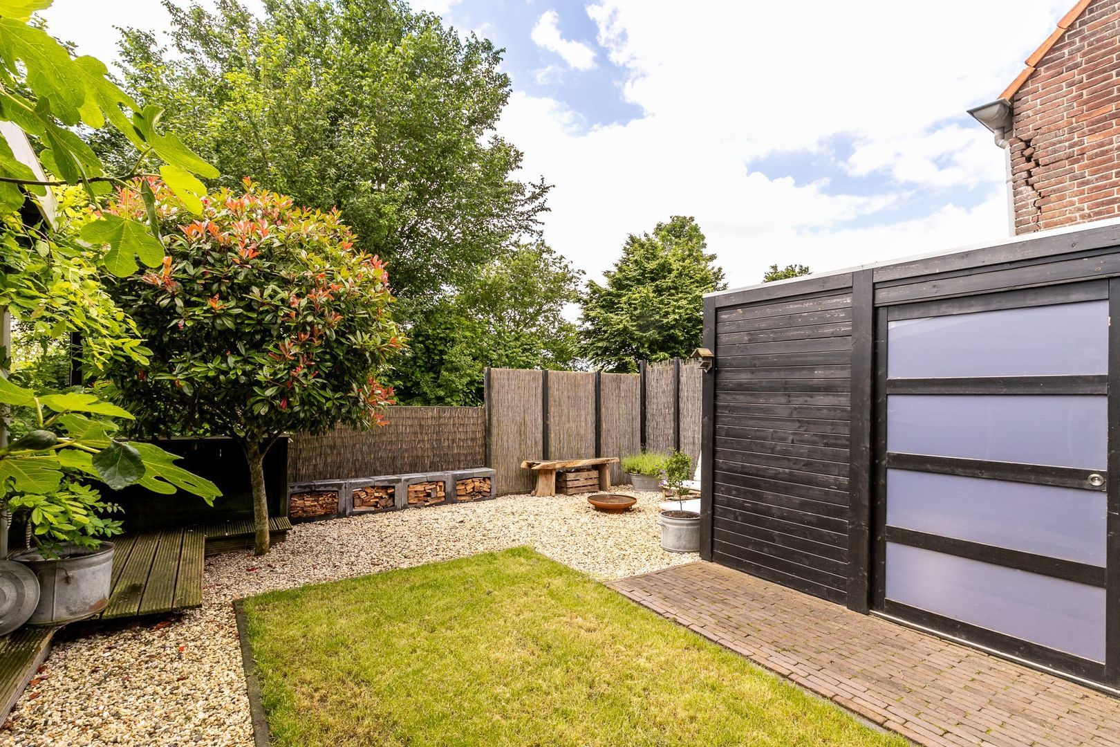 Aan de achterkant ligt een leuke, beschutte tuin.