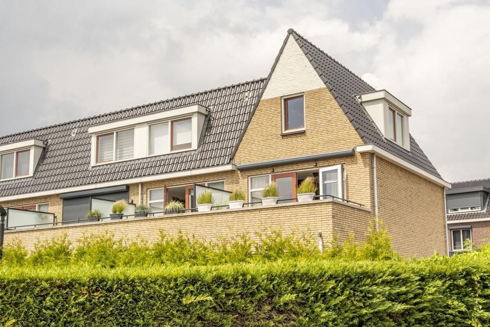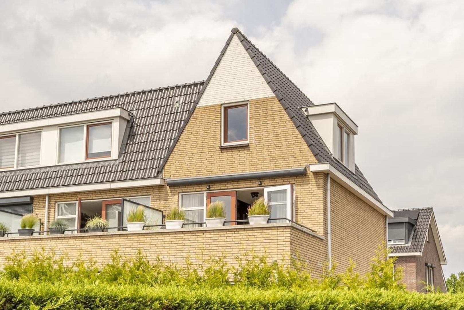 Deze maisonnette heeft kenmerkende tuitgevels aan de voor- en achterkant en een dakkapel in het dakvlak.
