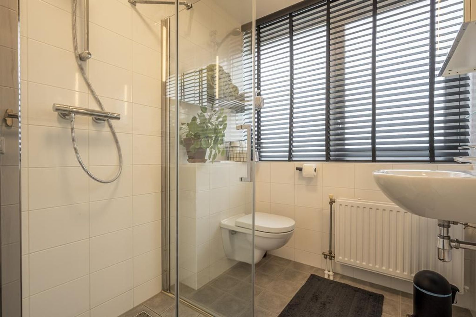 Deze is voorzien van een dakkapel en is ingericht met een inloopdouche, een wastafel en een tweede toilet.