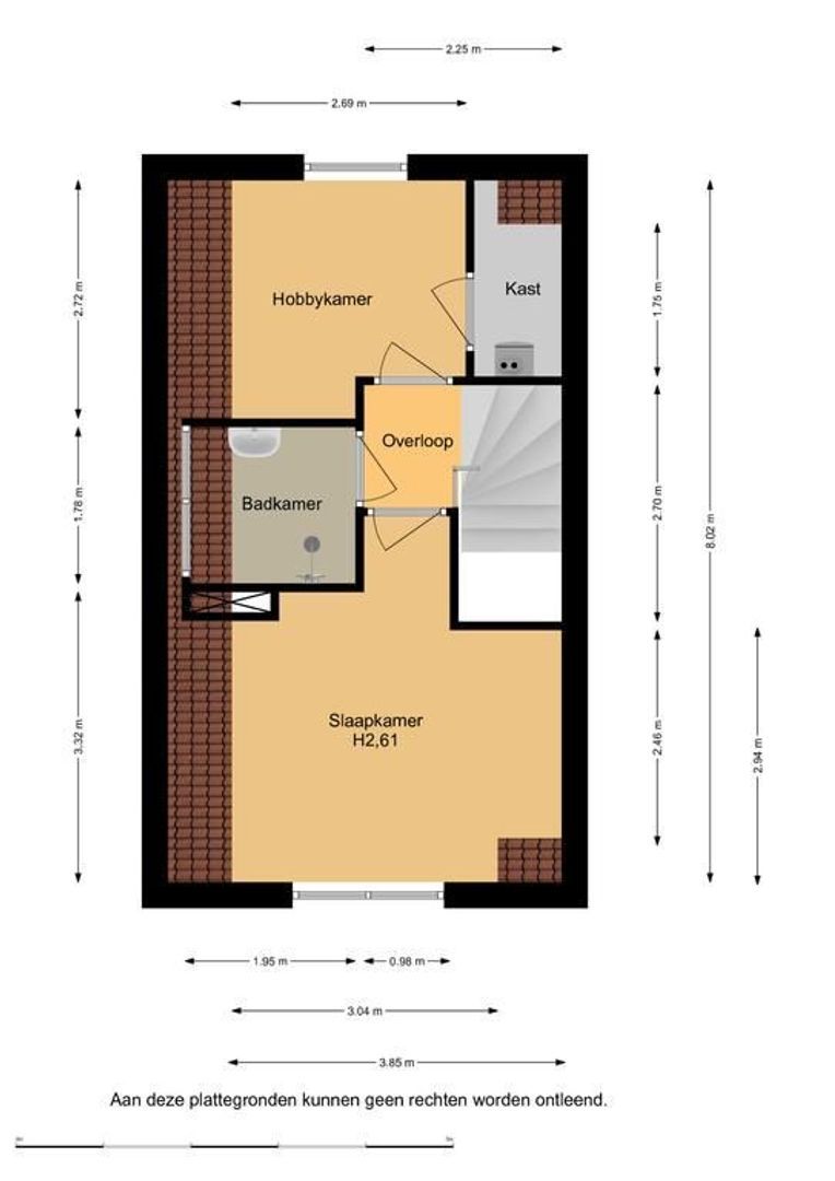 Op de tweede verdieping zijn twee slaapkamers en de badkamer.