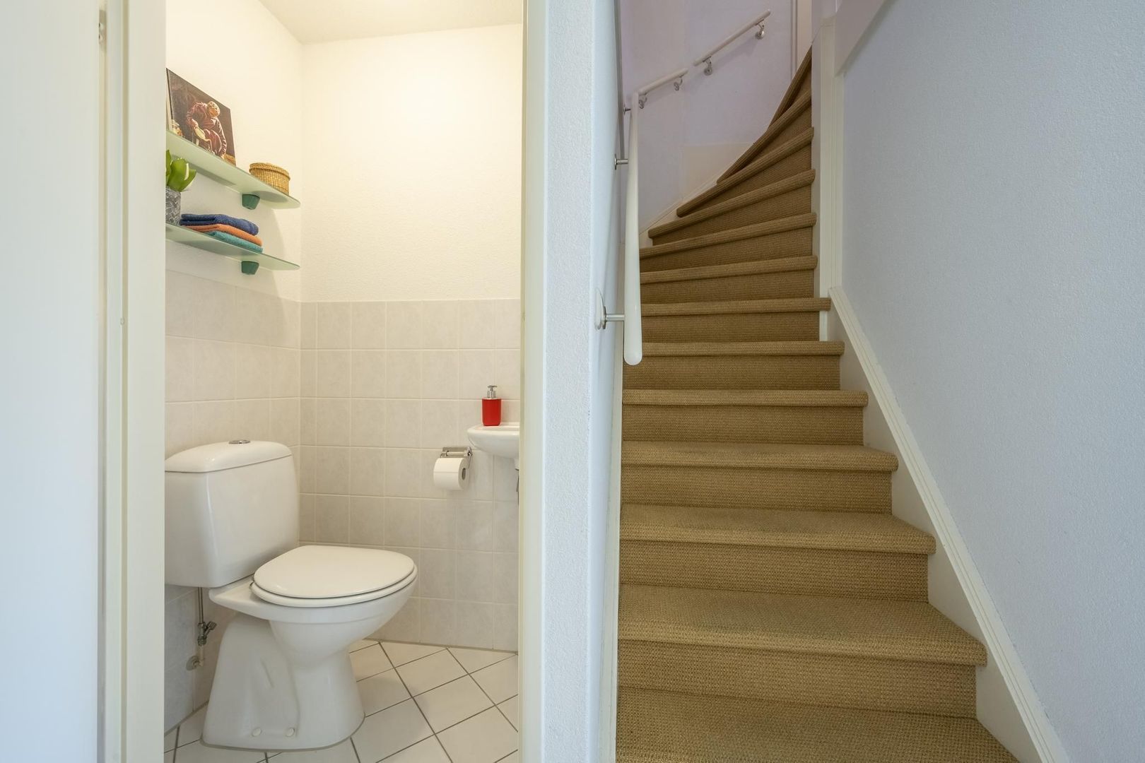Hal met meterkast, toiletruimte, trapopgang en toegang tot de garage/berging.