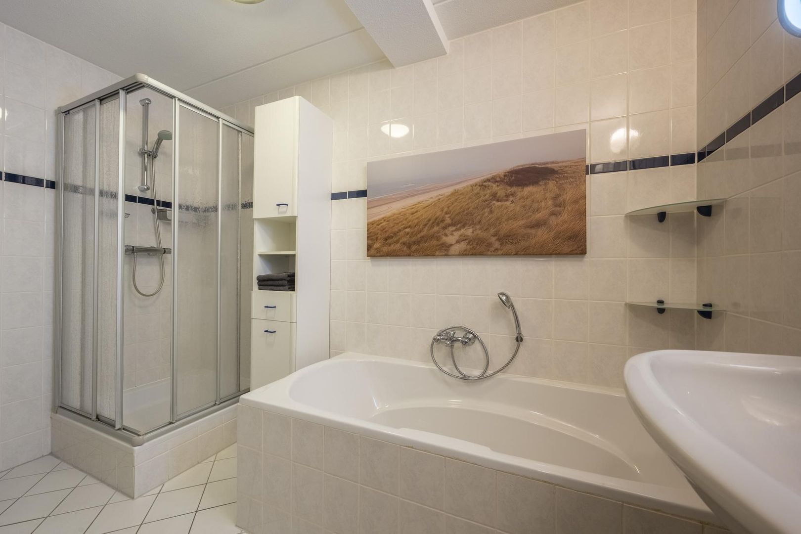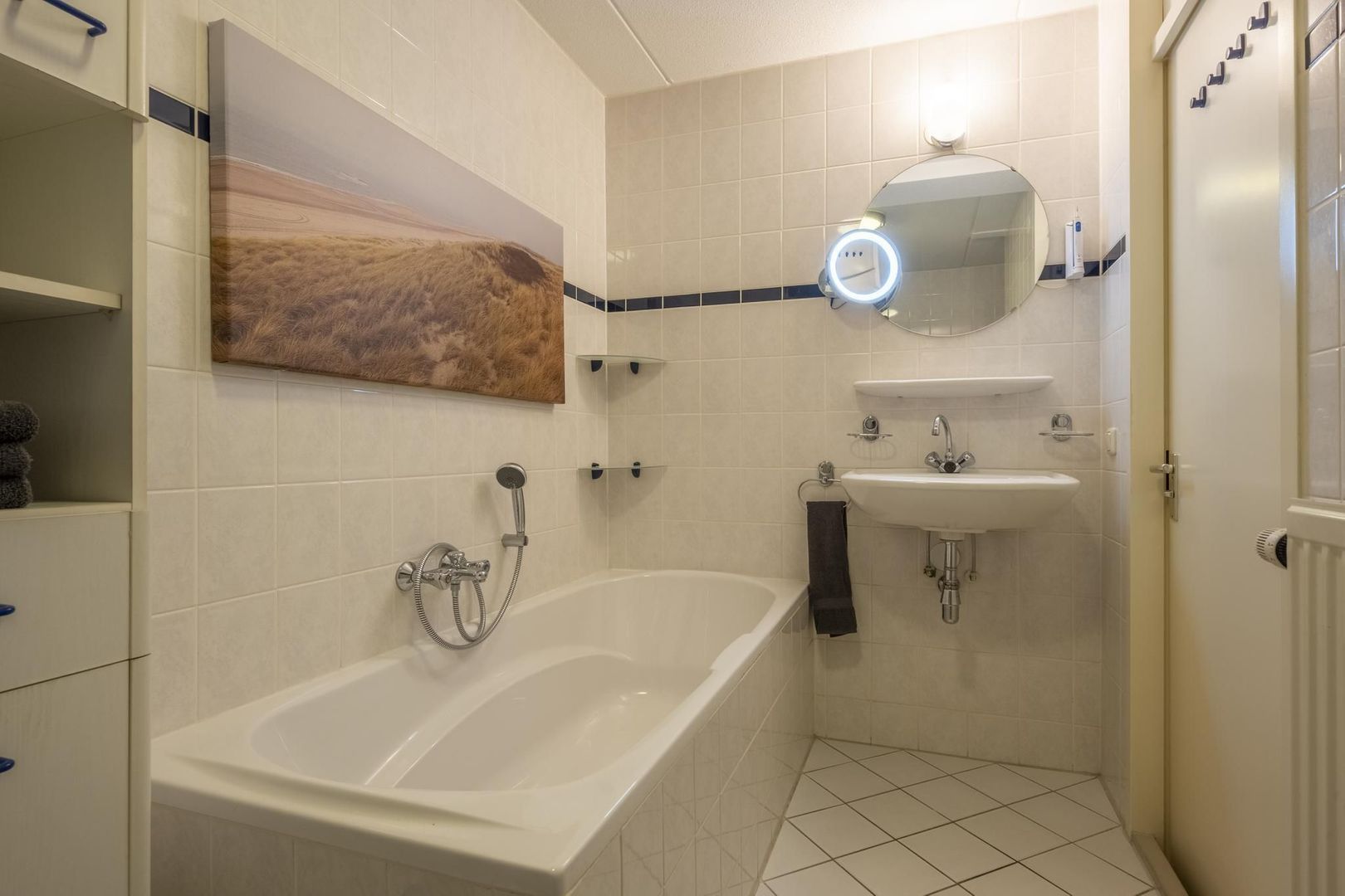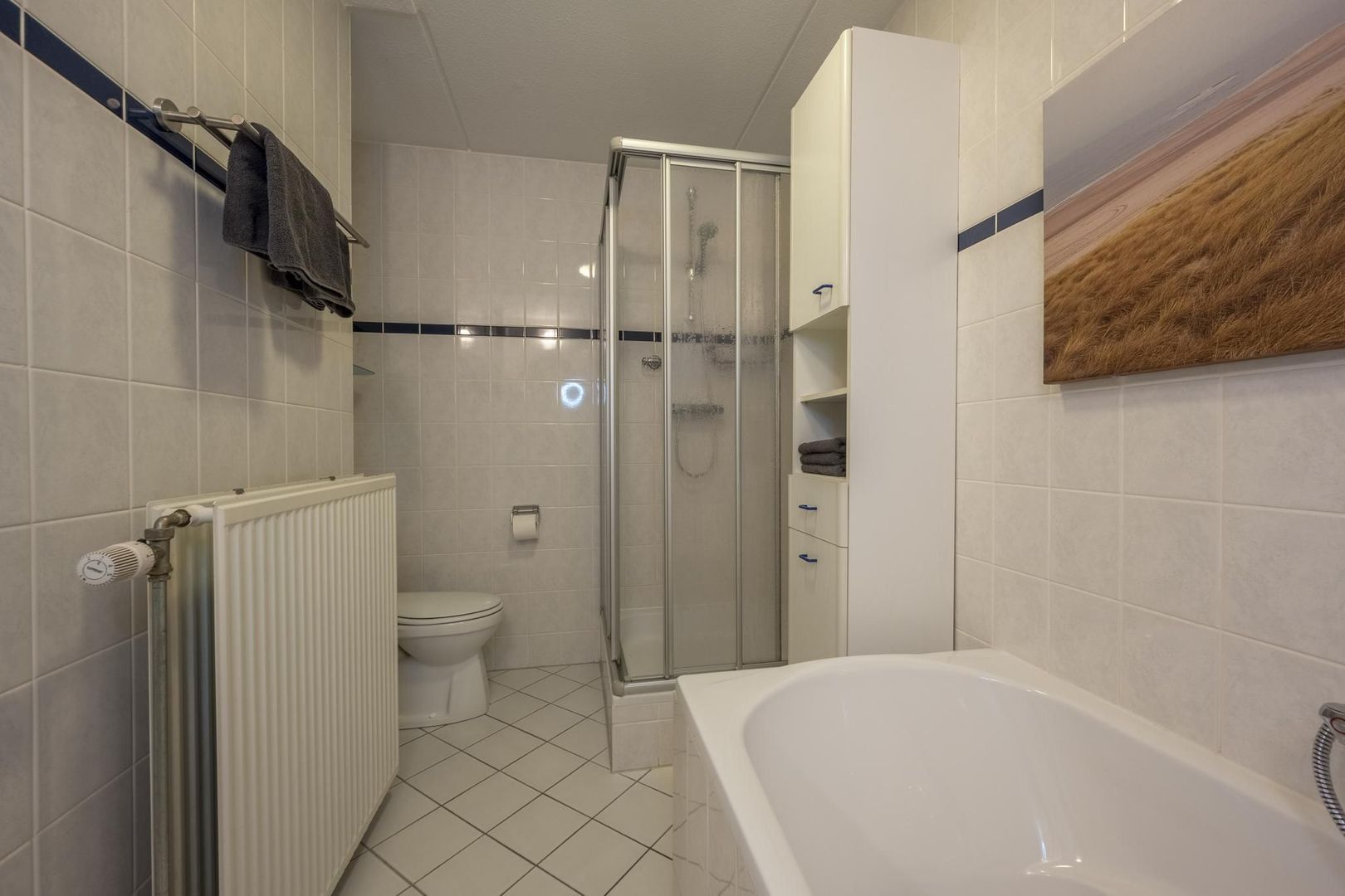 De badkamer is weliswaar iets ouder, maar nog steeds netjes. Deze is ingericht met een duo bad, een douchecabine, een tweede toilet, een wastafel en voorzien van vloerverwarming.
