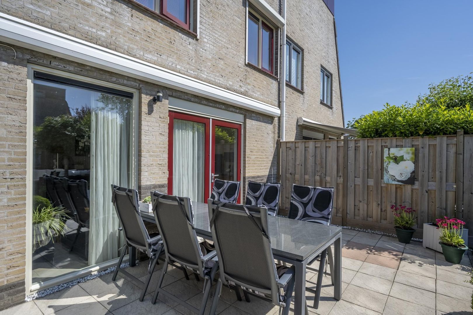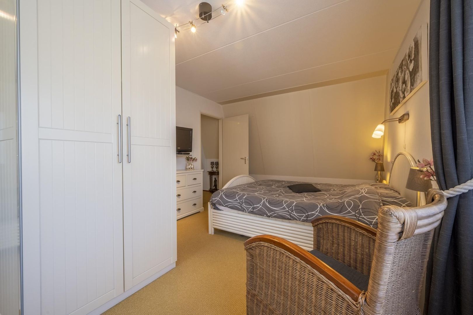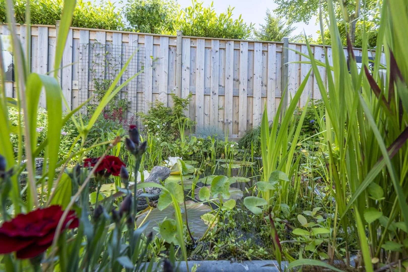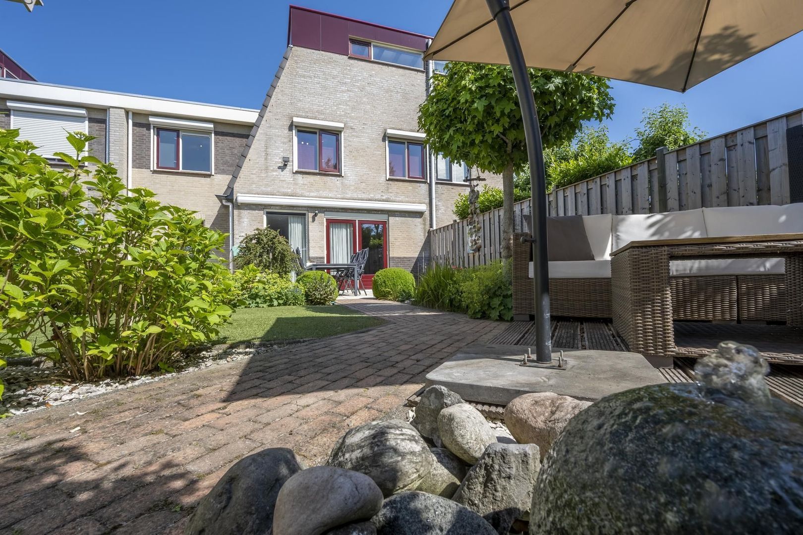 De achtertuin heeft een fijne ligging op het zuidoosten. Deze is mooi aangelegd en goed onderhouden. Achterin staat nog een praktische houten berging voor tuingereedschap of stoelen.