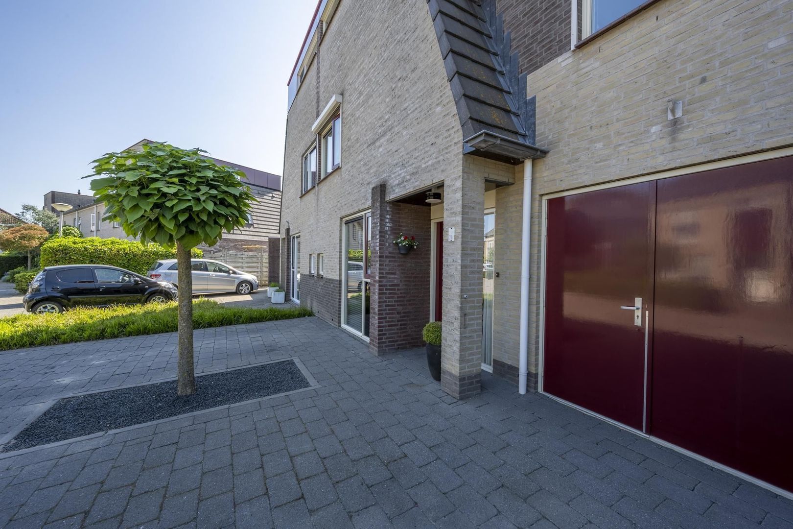 De garage is uitgevoerd met een loopdeur en een openslaande deur. Hierin is een hele rij vaste kasten gemaakt. Voor de woning is gelegenheid om twee auto's op eigen terrein te parkeren.