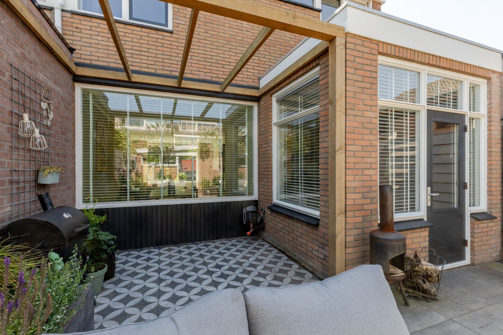 De ramen en kozijnen zijn grotendeels uitgevoerd in hout, deels in kunststof en beschikken over zowel dubbel als HR-glas.