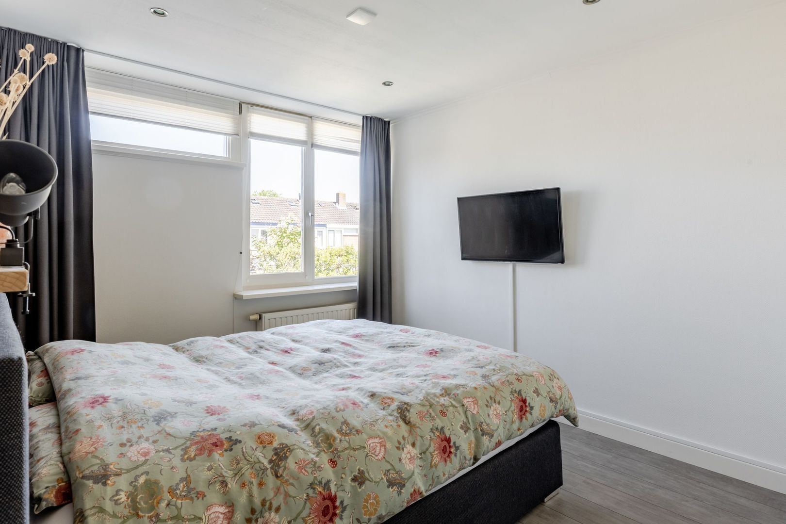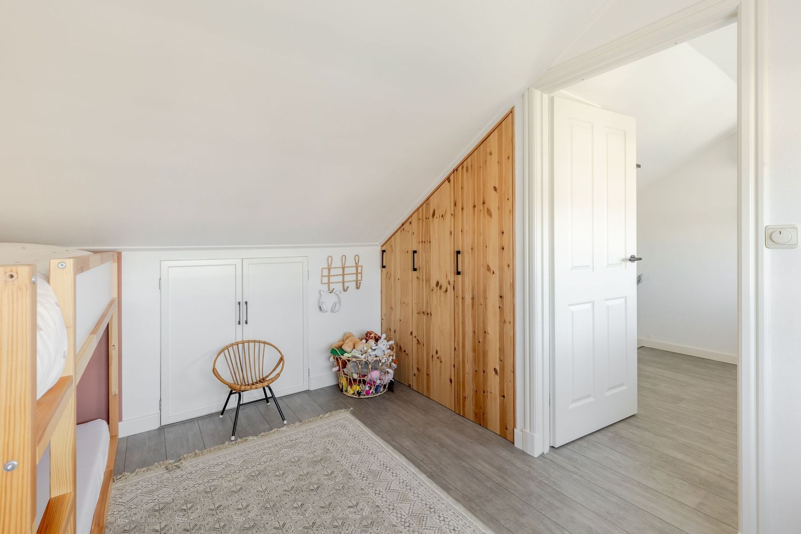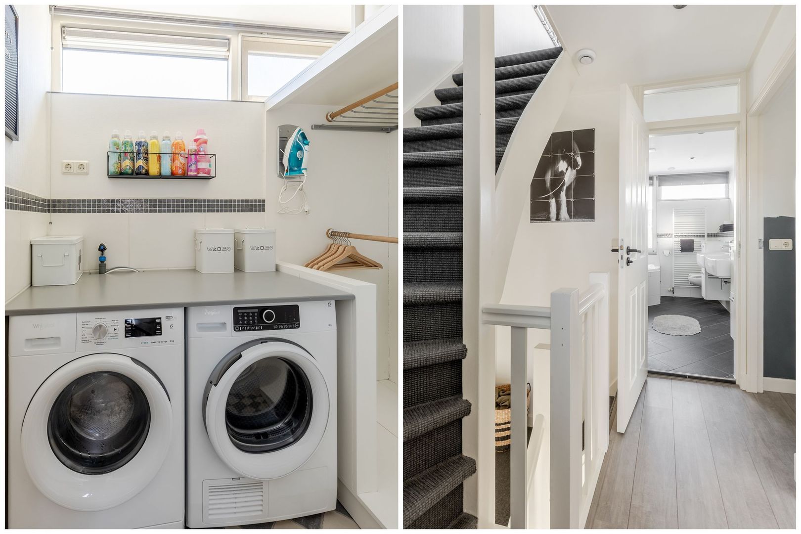 De indeling van de eerste verdieping is gewijzigd. Er zijn nu twee mooie slaapkamers, een ruime badkamer en een wasruimte.