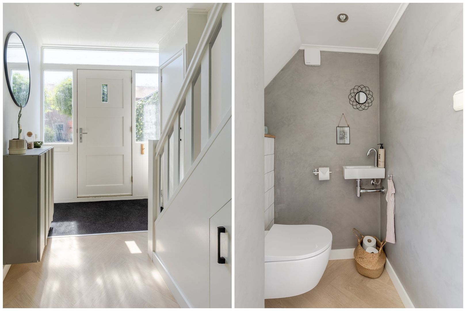 De indeling is als volgt: entree, hal met meterkast, trapopgang met trapkast en toiletruimte met wandcloset en handwasbakje.
