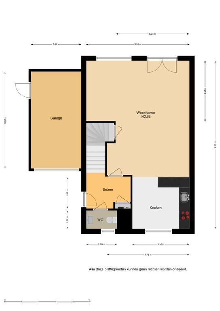 De indeling is als volgt: entree, hal met meterkast, trapopgang en grote toiletruimte.