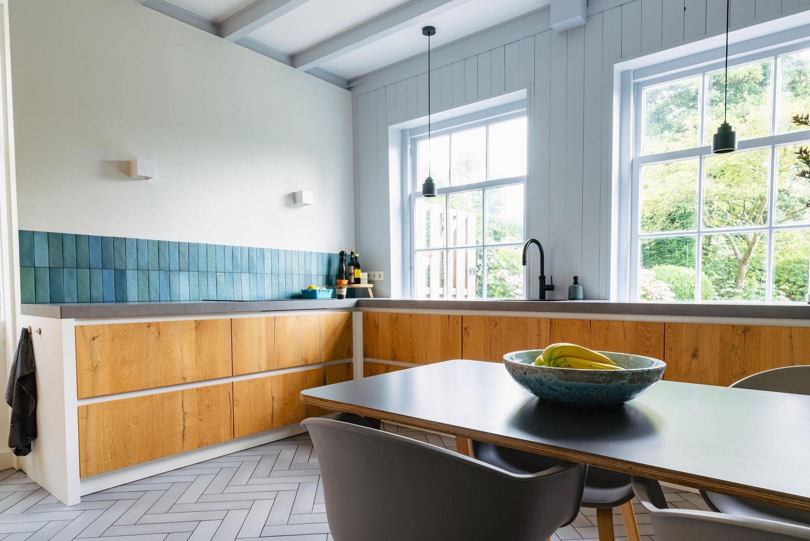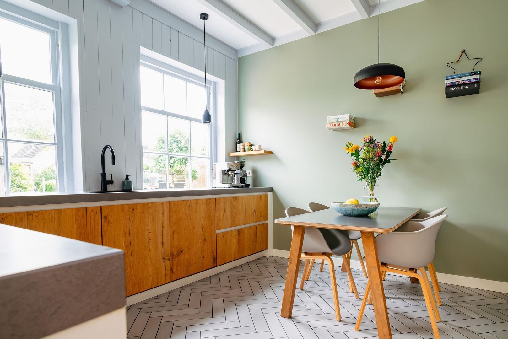 In 2020 is een mooie nieuwe keuken geplaatst, compleet met inbouwapparatuur en een Quooker. De vloer is afgewerkt met in visgraat patroon gelegde tegels met daaronder comfortabele vloerverwarming.