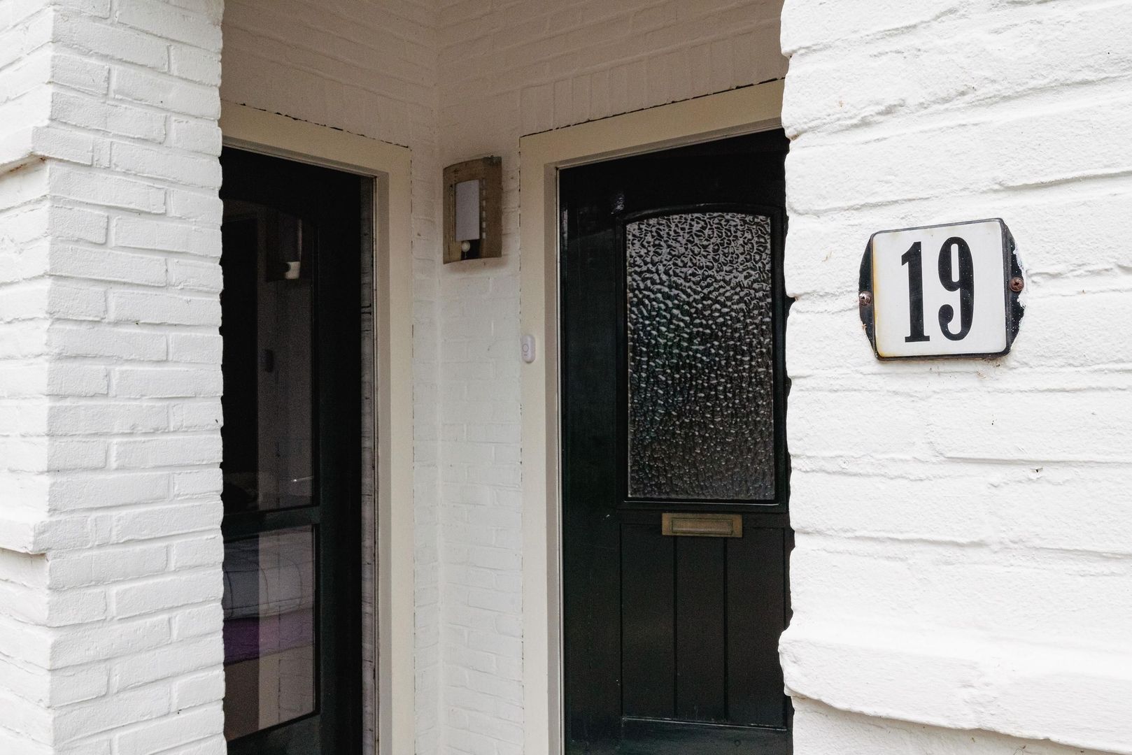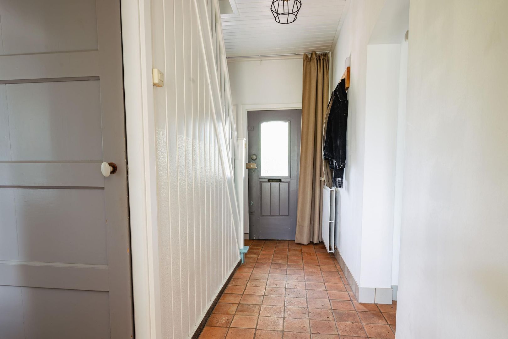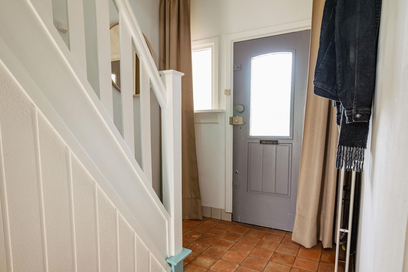 De indeling en afwerkingen zijn als volgt: centrale entree met hal, trapopgang naar de eerste verdieping, toiletruimte, trapje naar de kelder en bijkeuken. De bijkeuken, met de aansluiting voor de wasapparatuur, geeft toegang tot de achtertuin. Op de vloer in de hal liggen antieke plavuizen.