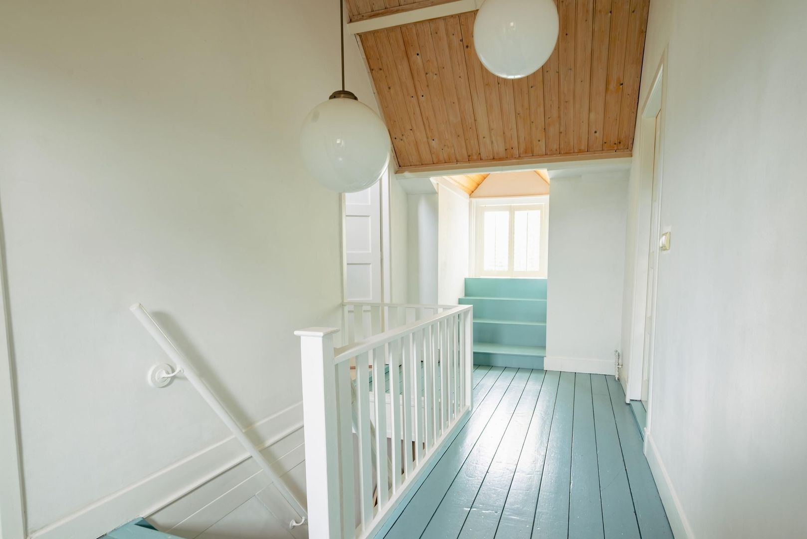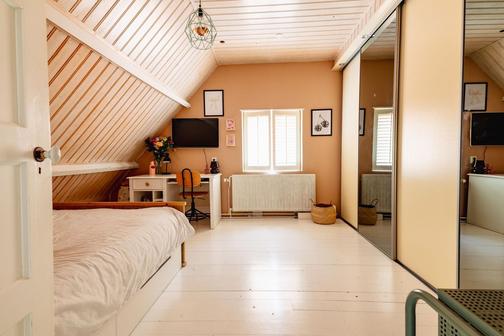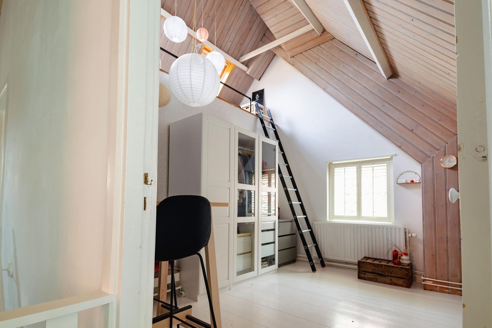 Op de verdieping valt direct de dakkapel op de overloop op. Deze nodigt uit om in te gaan zitten en te genieten van het leuke uitzicht. Er zijn drie prima slaapkamers, waarvan de grootste is voorzien van een zolder/entresol.