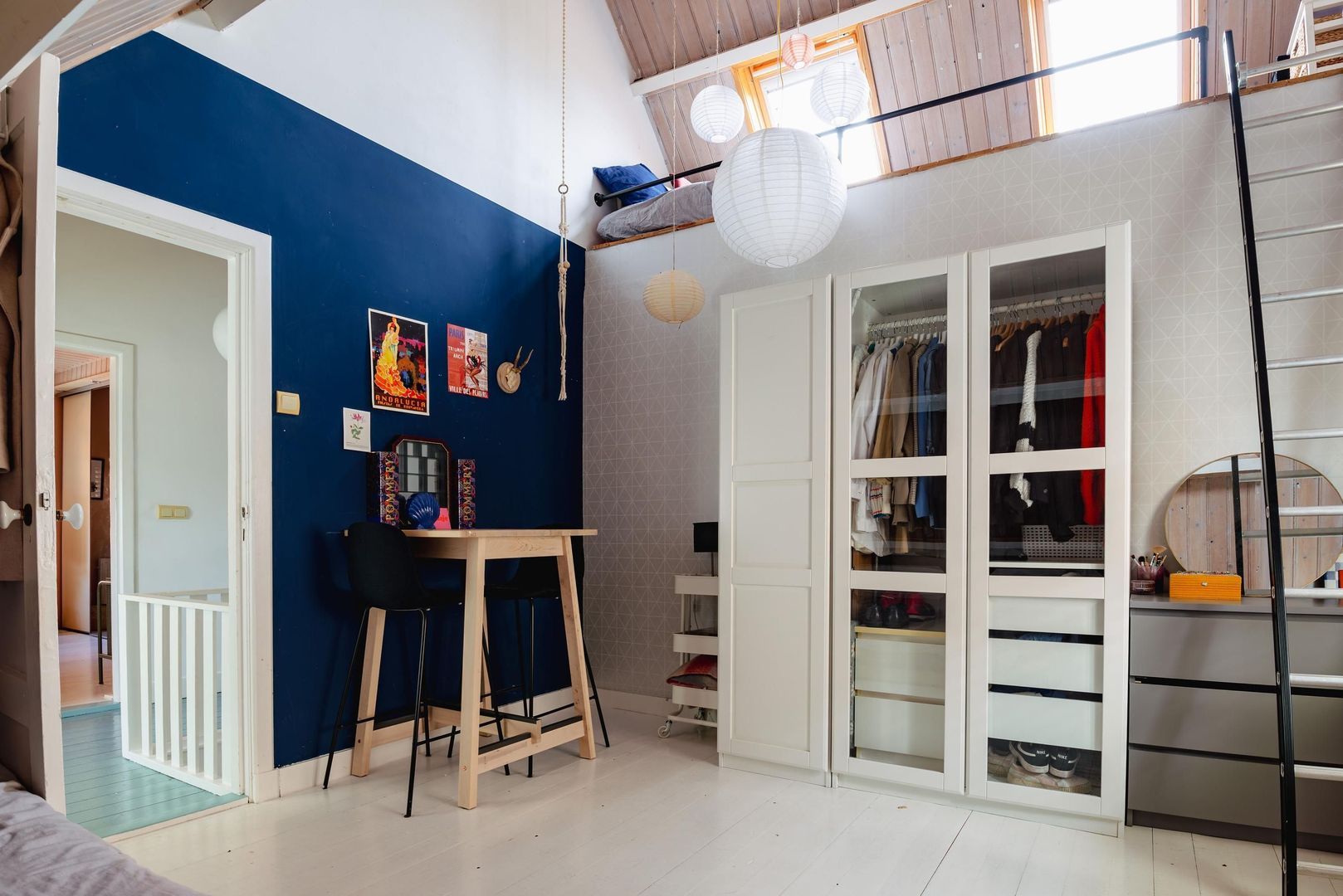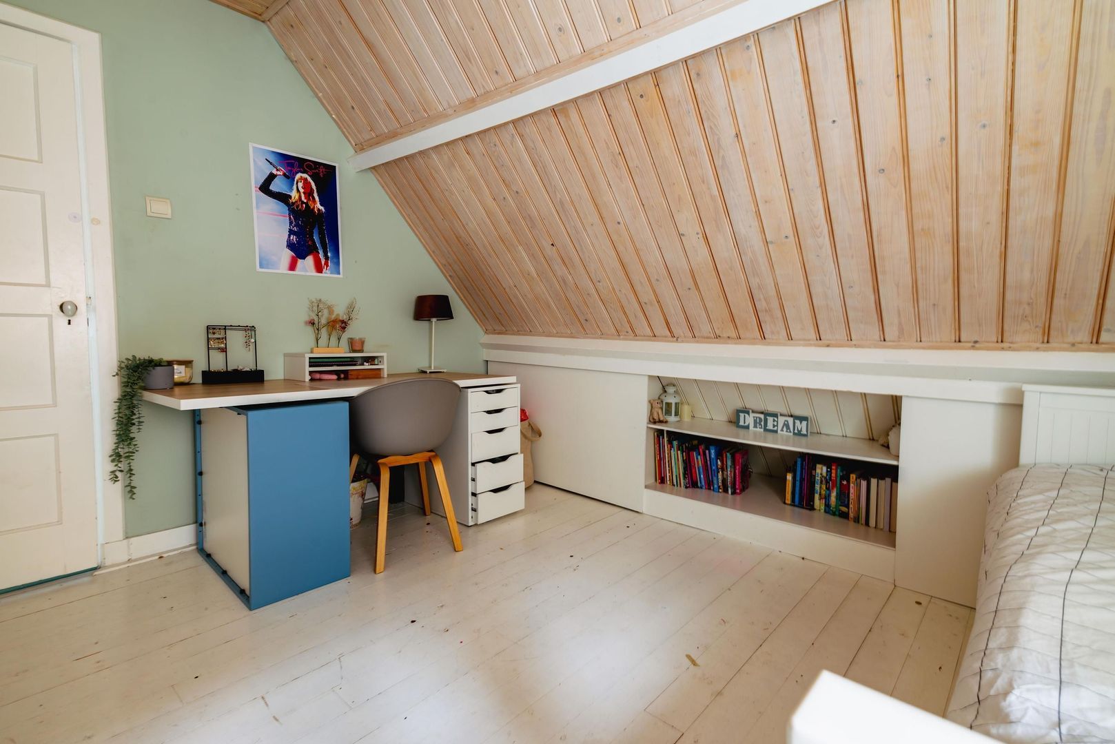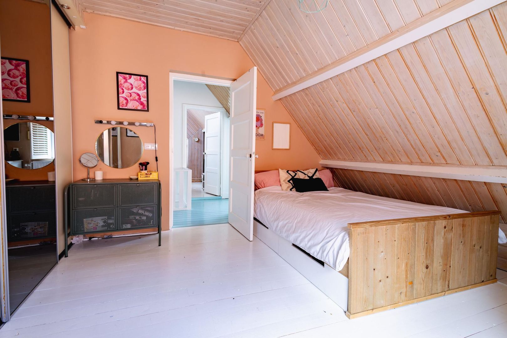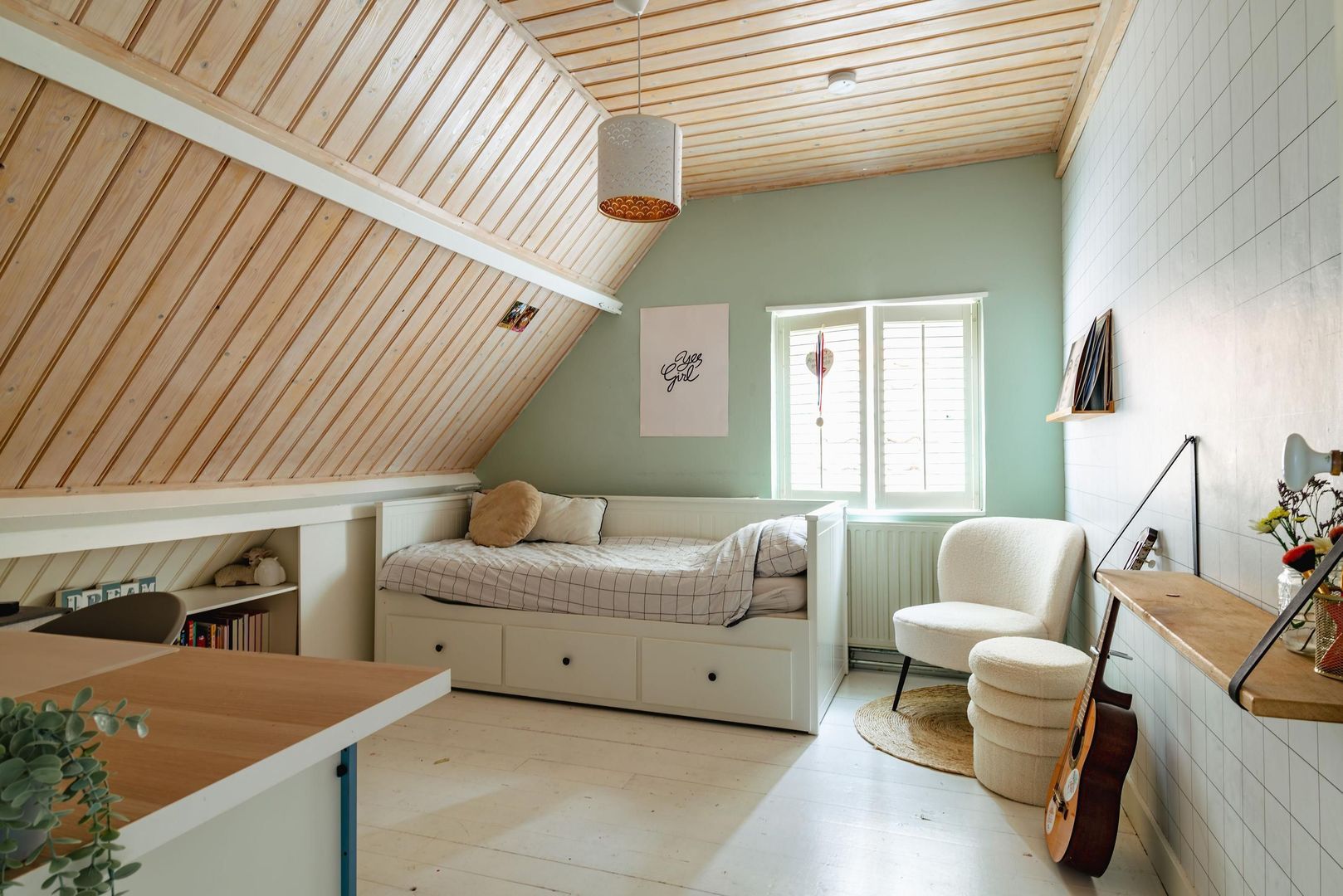 Op de verdieping valt direct de dakkapel op de overloop op. Deze nodigt uit om in te gaan zitten en te genieten van het leuke uitzicht. Er zijn drie prima slaapkamers, waarvan de grootste is voorzien van een zolder/entresol.