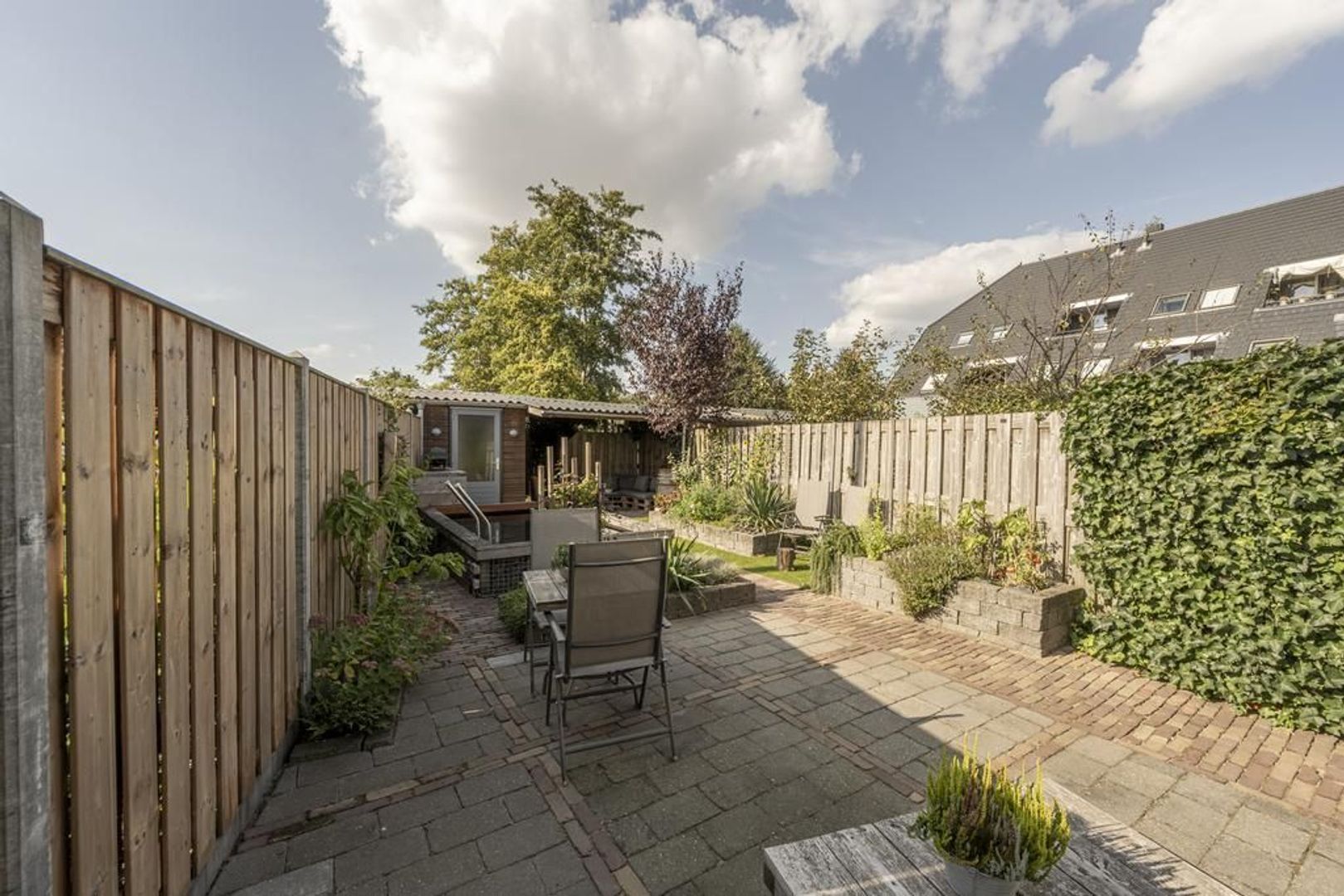 De achtertuin ligt op het noordwesten. Deze is wel 15 meter lang, dus er is altijd een plekje te vinden waar de zon komt.