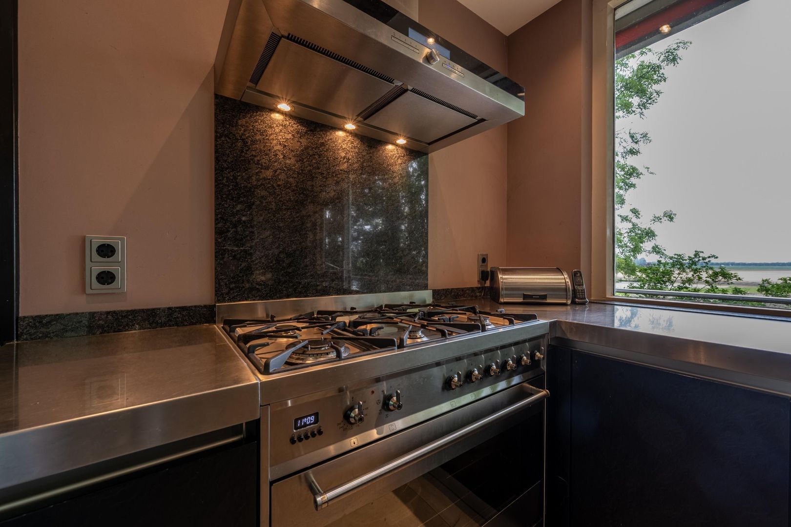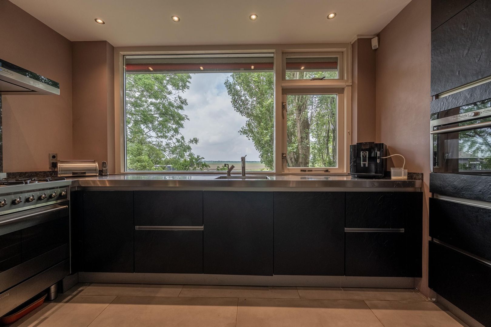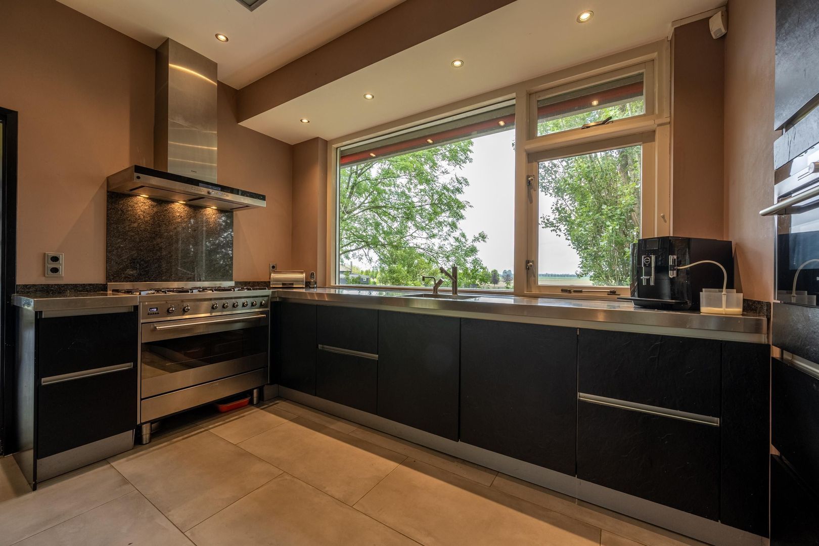De keuken is voorzien van een uitgebreide, stoere inrichting met RVS aanrechtblad, veel moderne inbouwapparatuur, een warm- en koudwater- plus een separate Quooker kraan. Ook het vrije uitzicht vanuit de keuken is verrassend.
