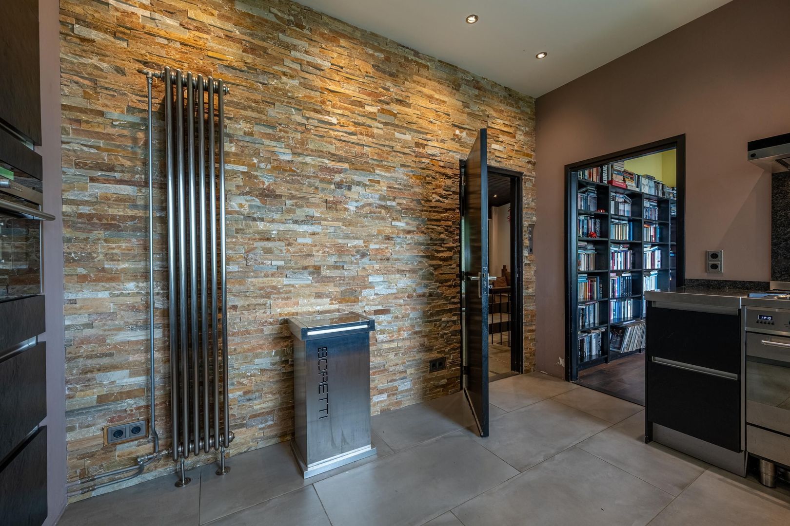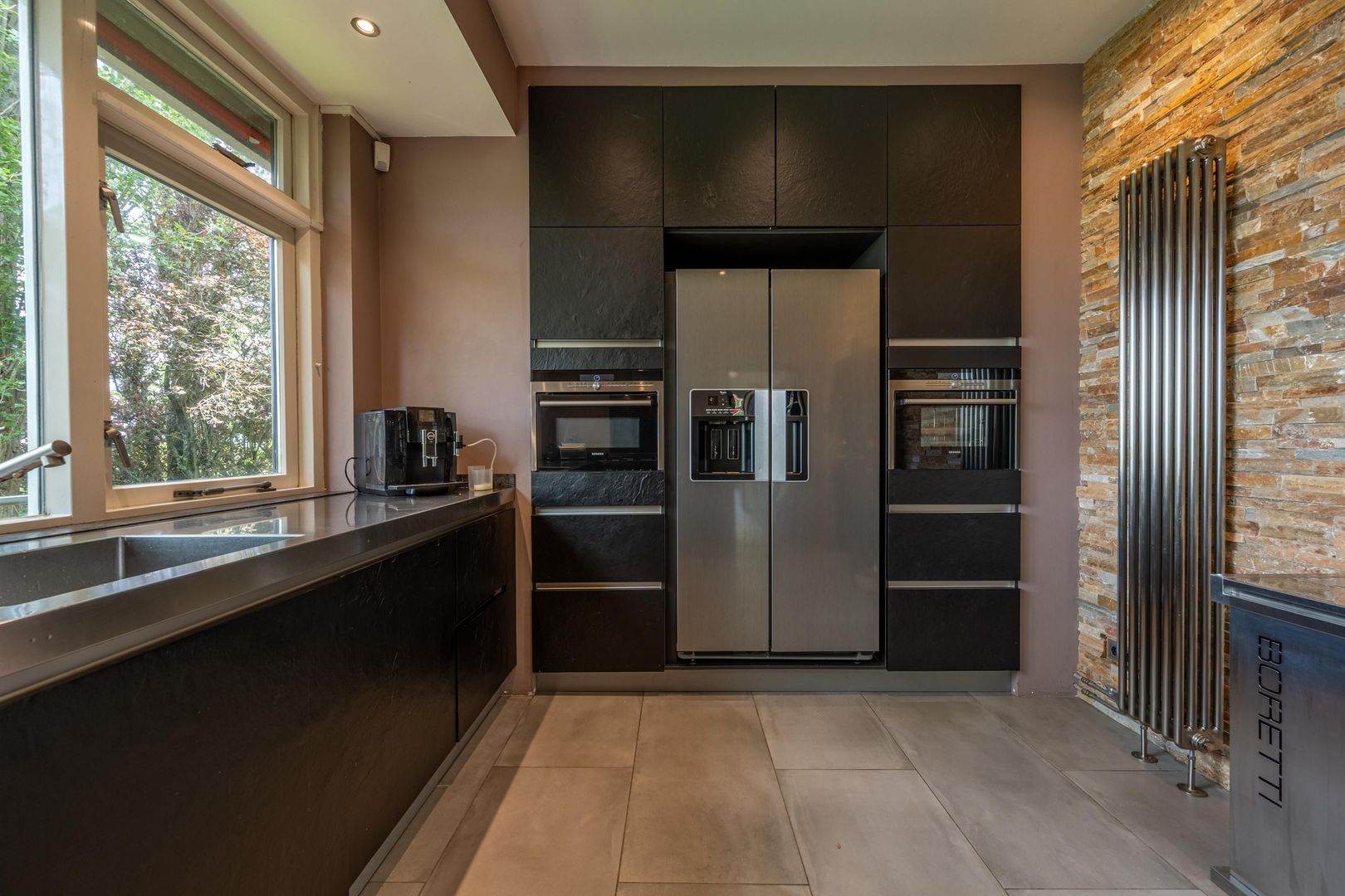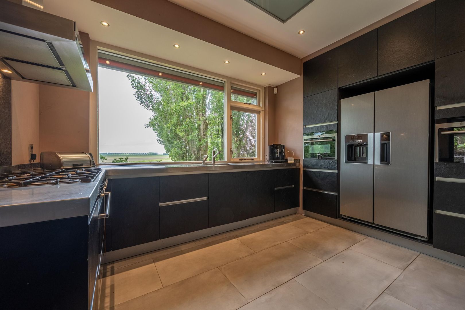 De keuken is voorzien van een uitgebreide, stoere inrichting met RVS aanrechtblad, veel moderne inbouwapparatuur, een warm- en koudwater- plus een separate Quooker kraan. Ook het vrije uitzicht vanuit de keuken is verrassend.