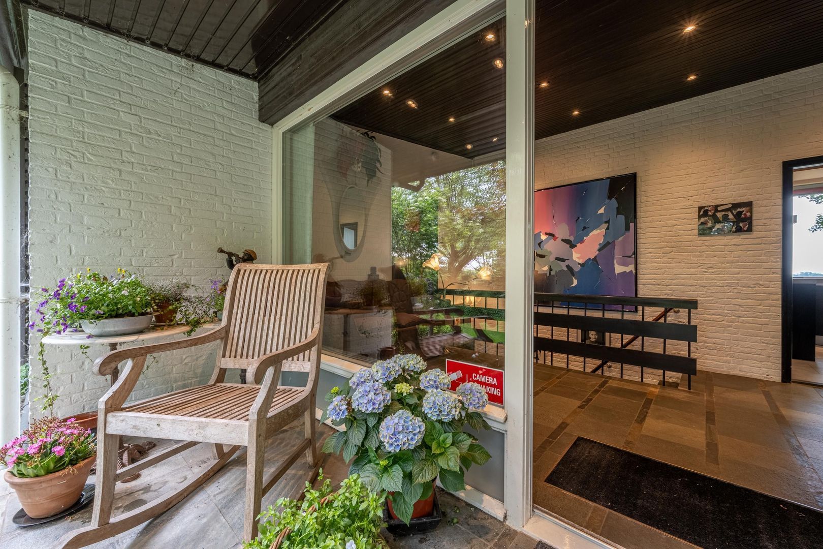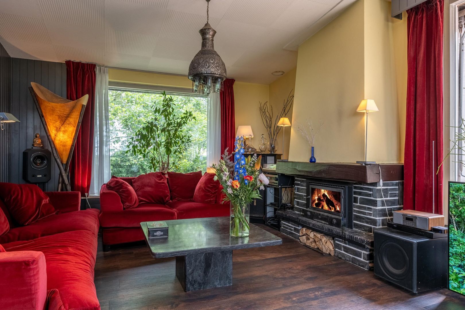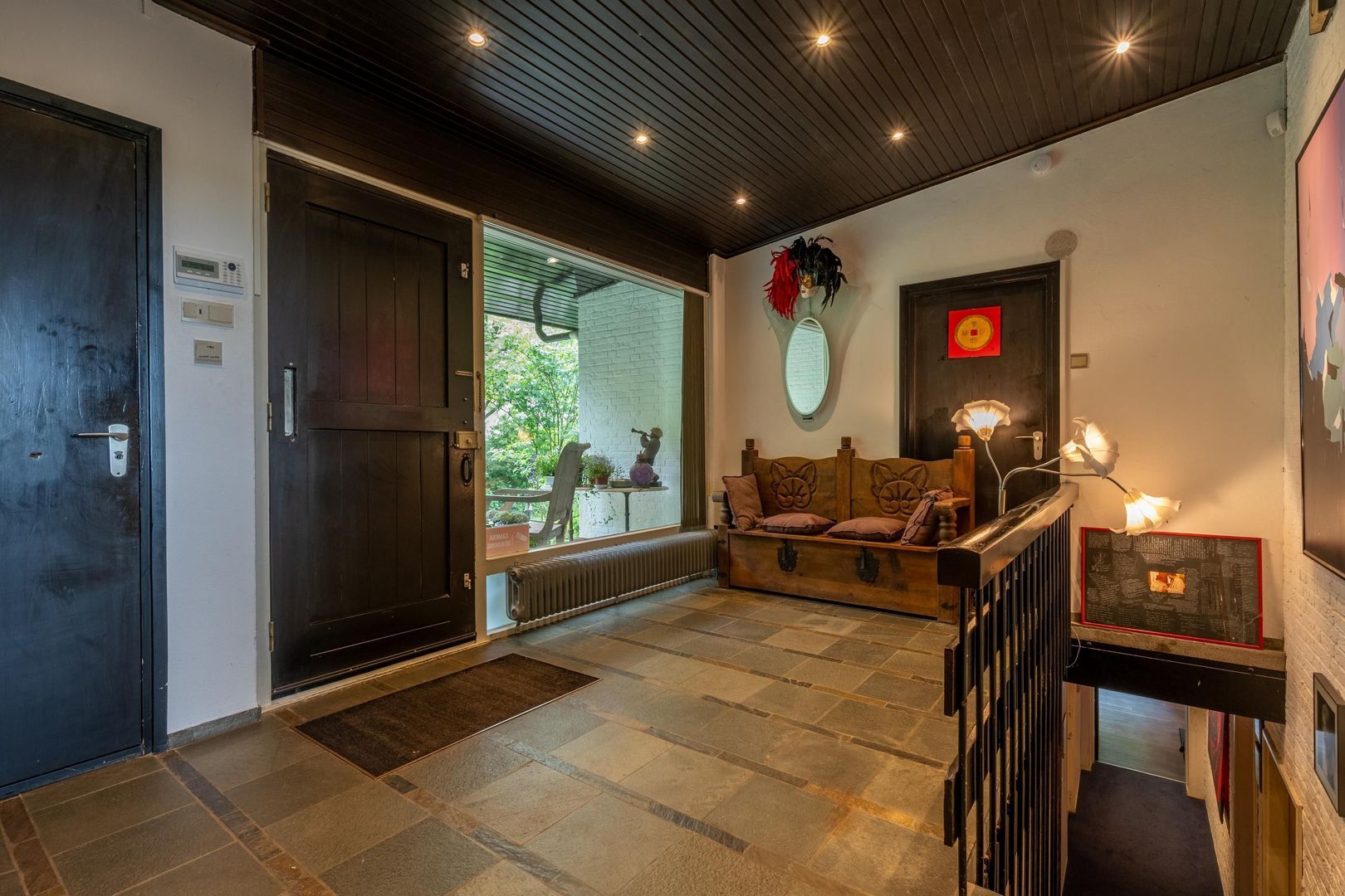 Dit landhuis dateert van 1967. Destijds gebouwd als groot, strak en modern gebouw met lessenaars dak, grote ramen en veel lichtinval. Het woongedeelte bevindt zich op de eerste verdieping. Daar treffen we een royale L-vormige huiskamer met open haard, een moderne keuken, een ruime ‘master bedroom, met aansluitende badkamer en een logeerkamer aan. Op de begane grond is - met onder andere vijf kamers - een zee van ruimte. Het terras dat grenst aan de woonkamer, biedt een onbetaalbaar uitzicht en een optimale privacy.