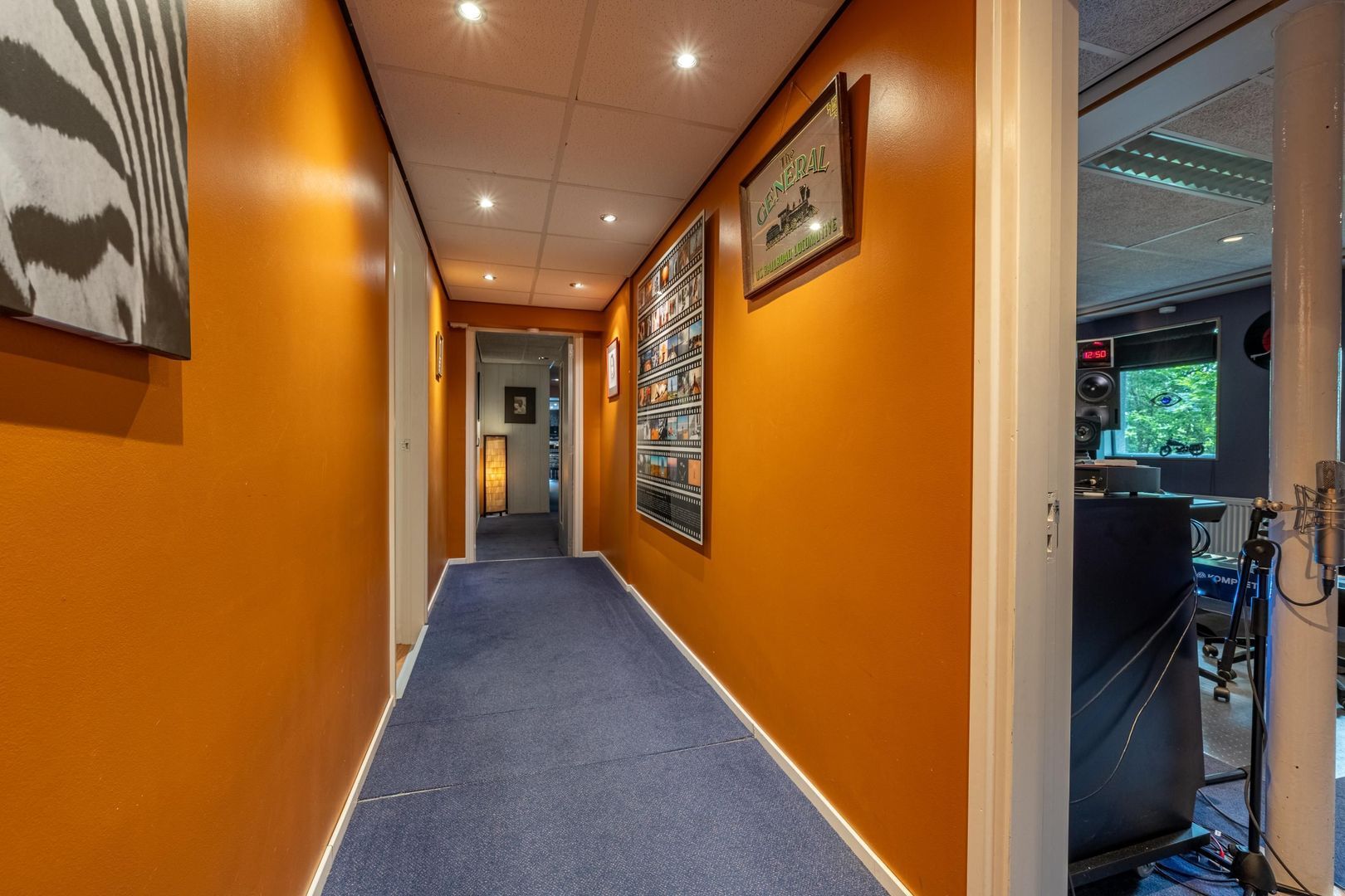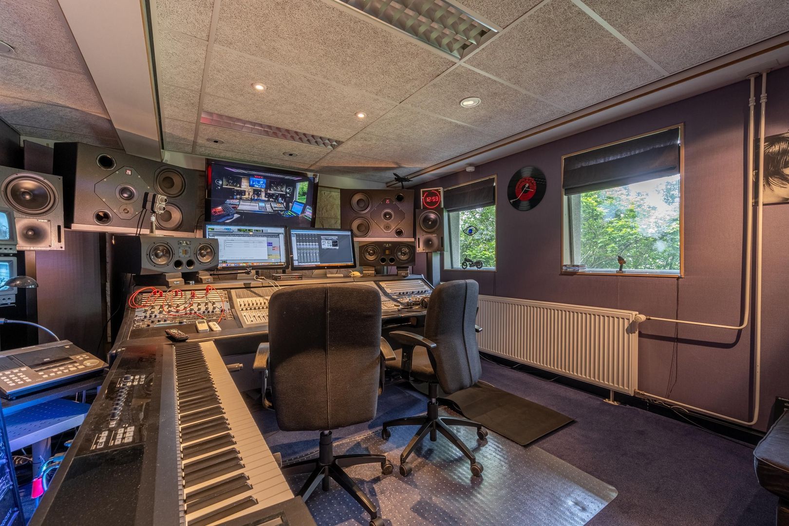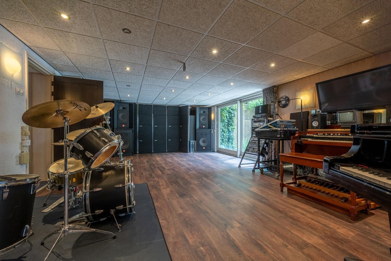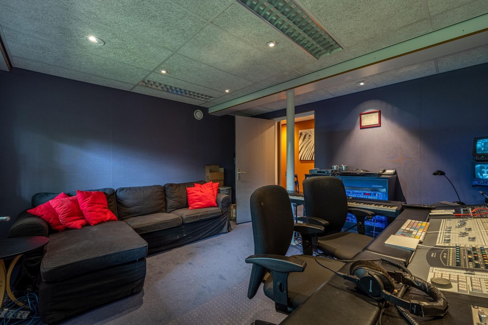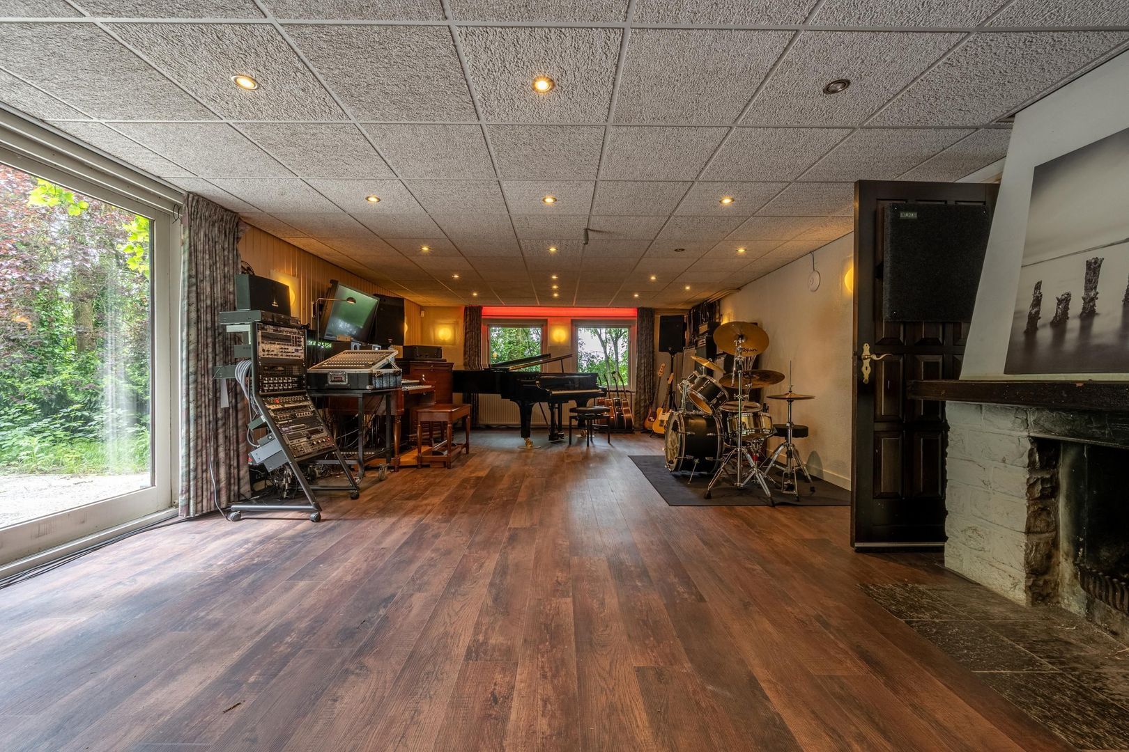Grenzend aan de huidige muziekopnameruimte (tuinkamer) treffen we een tweede open haard en een kitchenette aan. Op de vloer ligt ook hier PVC kliklaminaat. Aan de 16 meter lange gang treffen we een moderne badkamer met toilet en een CV-ruimte annex berging aan. De vier kamers zijn geschikt om als slaapkamer te worden gebruikt. Een kleine vijfde ruimte kan als kinderkamer, berging of inloopkast worden benut.