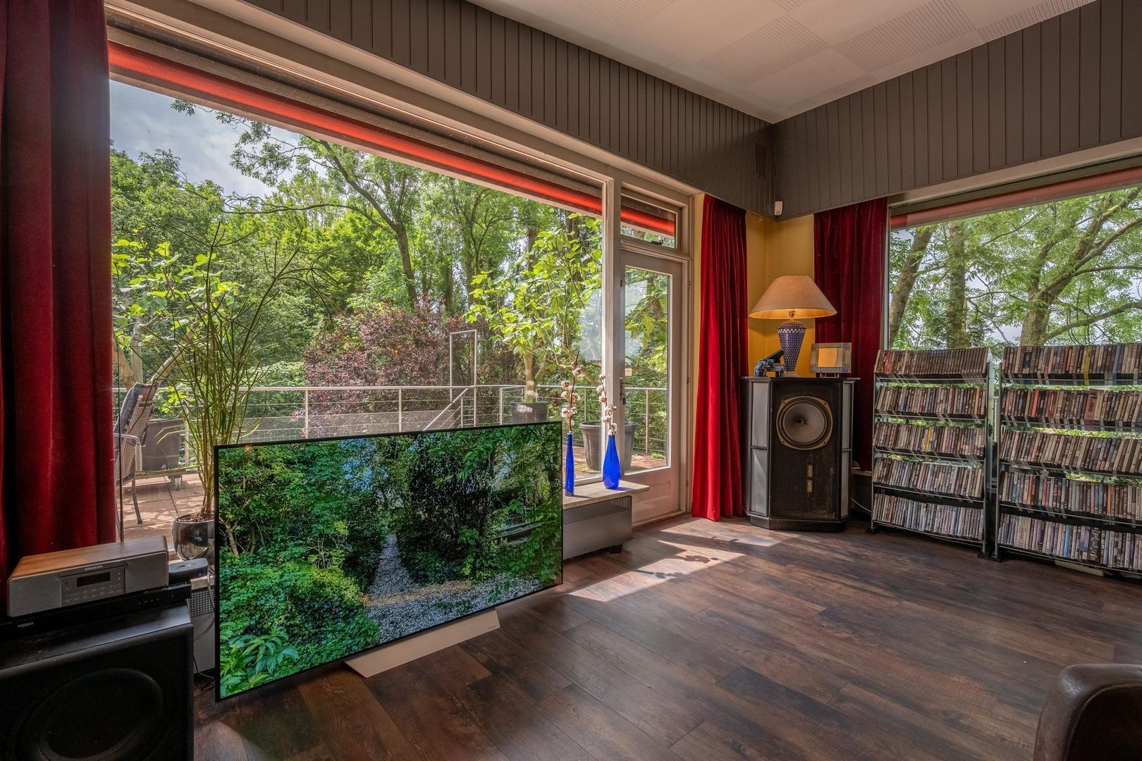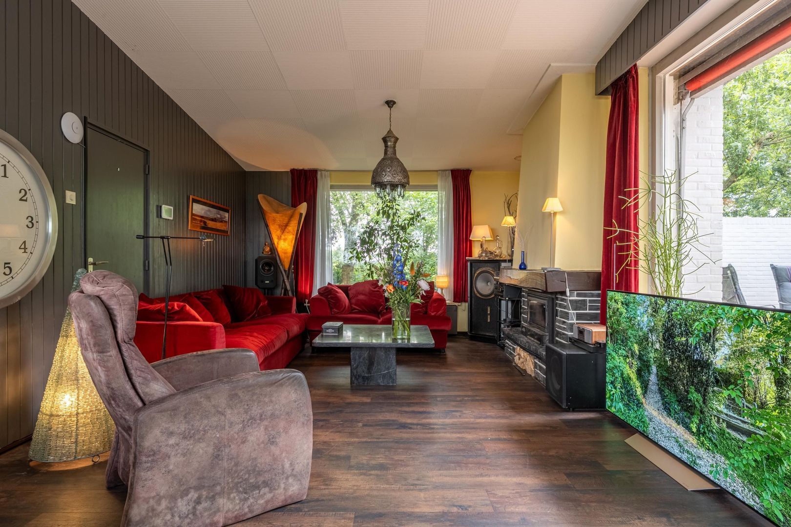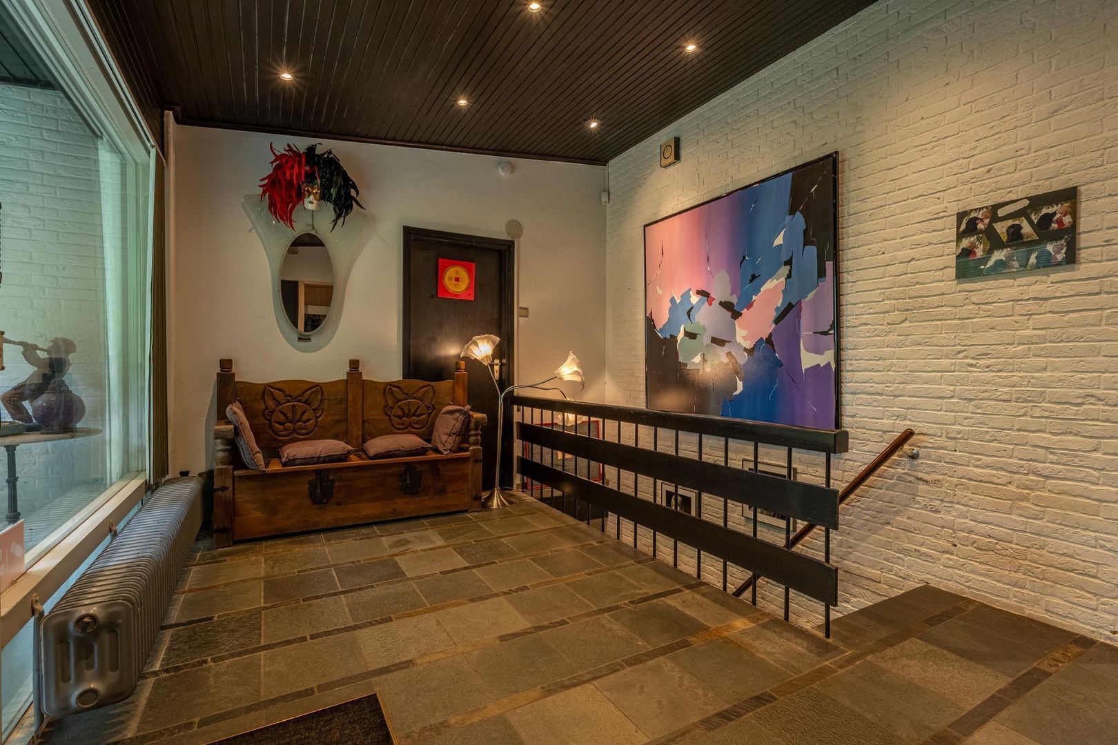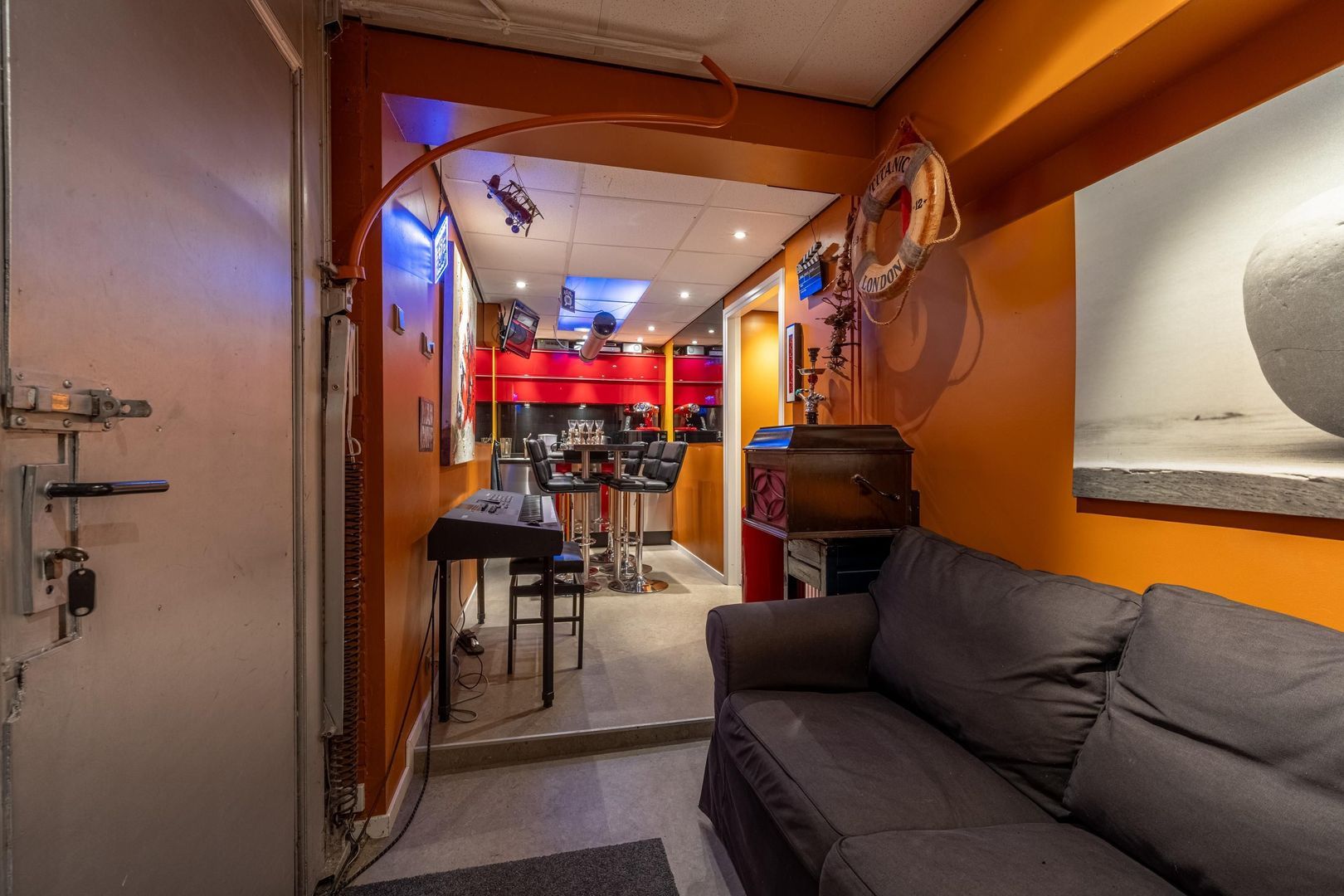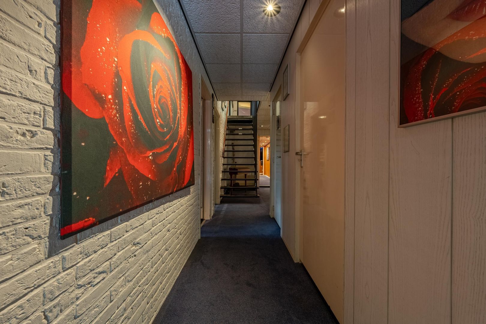Grenzend aan de huidige muziekopnameruimte (tuinkamer) treffen we een tweede open haard en een kitchenette aan. Op de vloer ligt ook hier PVC kliklaminaat. Aan de 16 meter lange gang treffen we een moderne badkamer met toilet en een CV-ruimte annex berging aan. De vier kamers zijn geschikt om als slaapkamer te worden gebruikt. Een kleine vijfde ruimte kan als kinderkamer, berging of inloopkast worden benut.