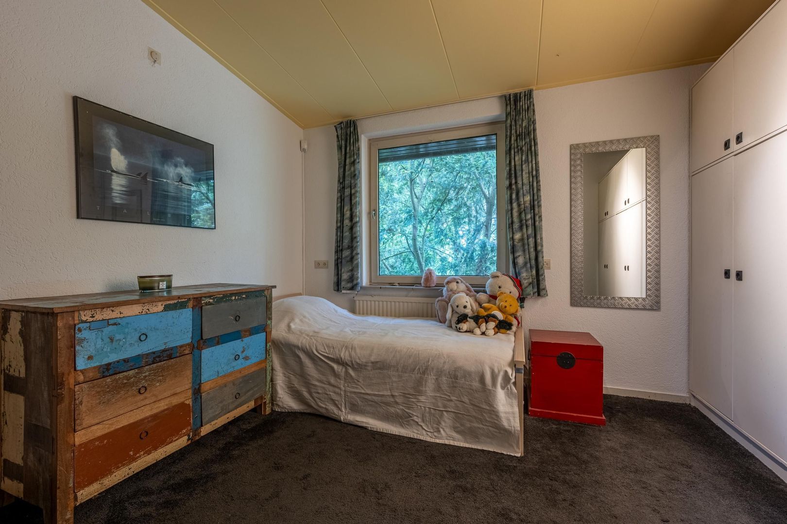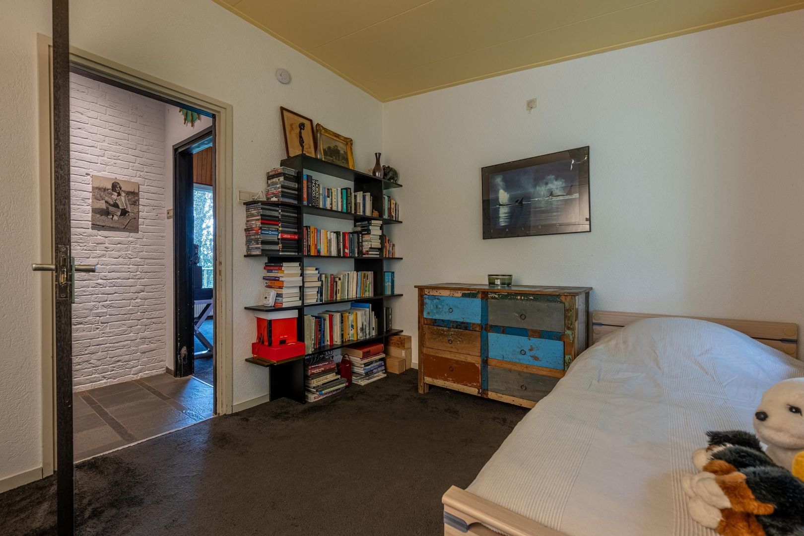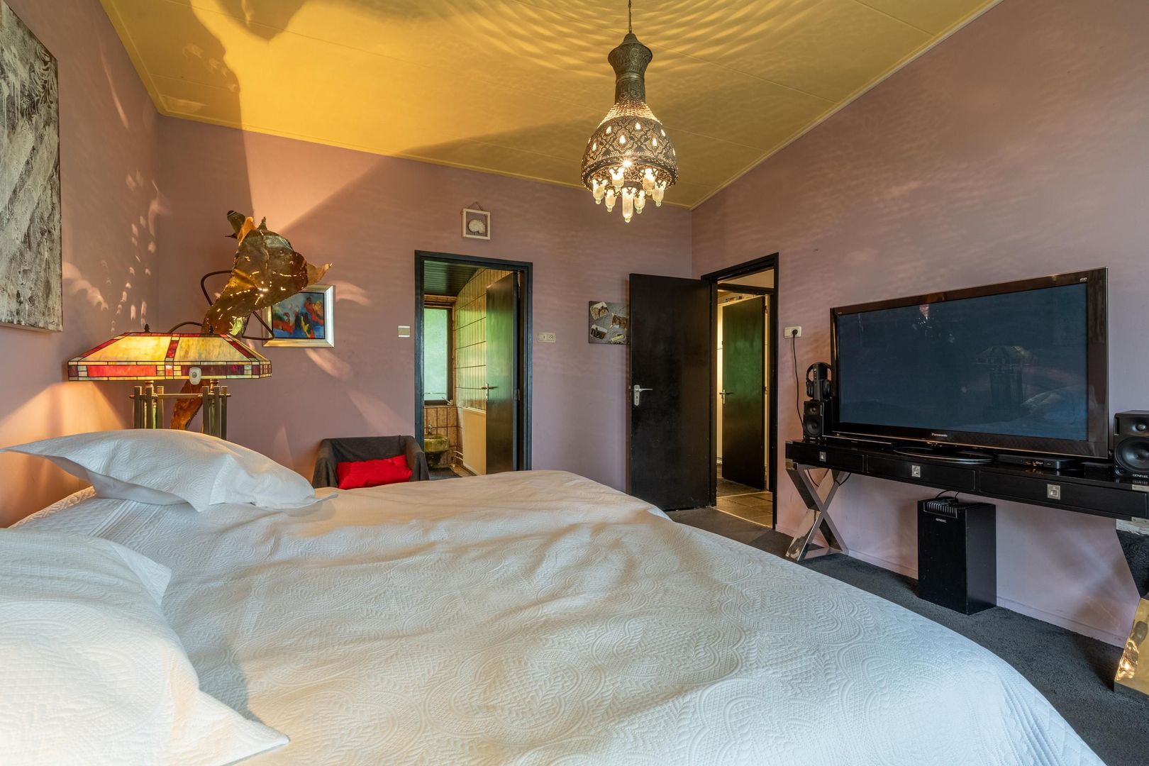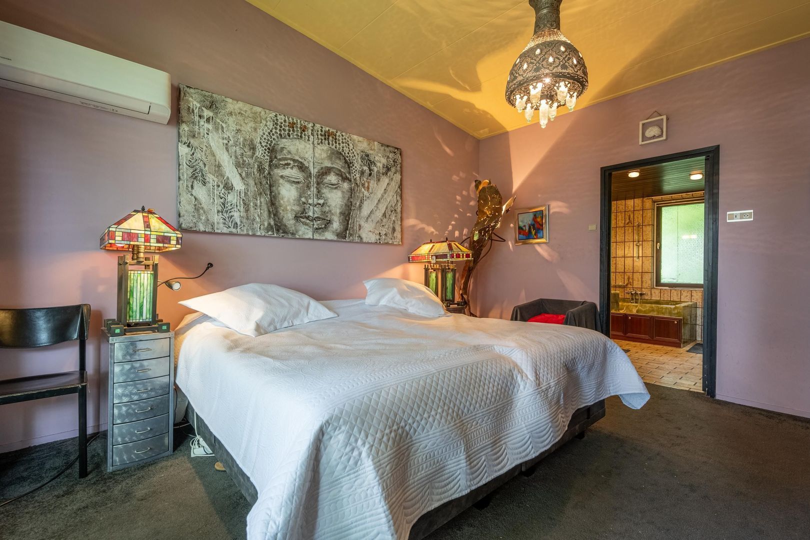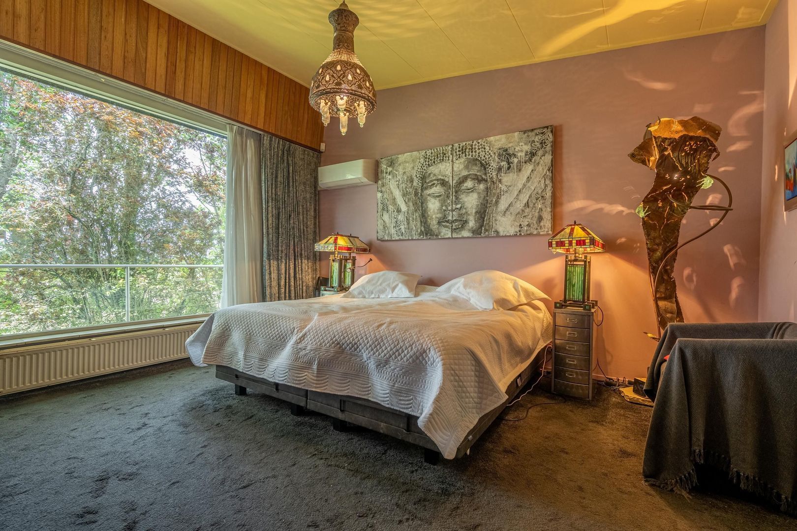 De grootste (tuin)kamer biedt via een schuifpui toegang tot een tweede terras met fraai uitzicht op de wilde tuin en het buitenzwembad.