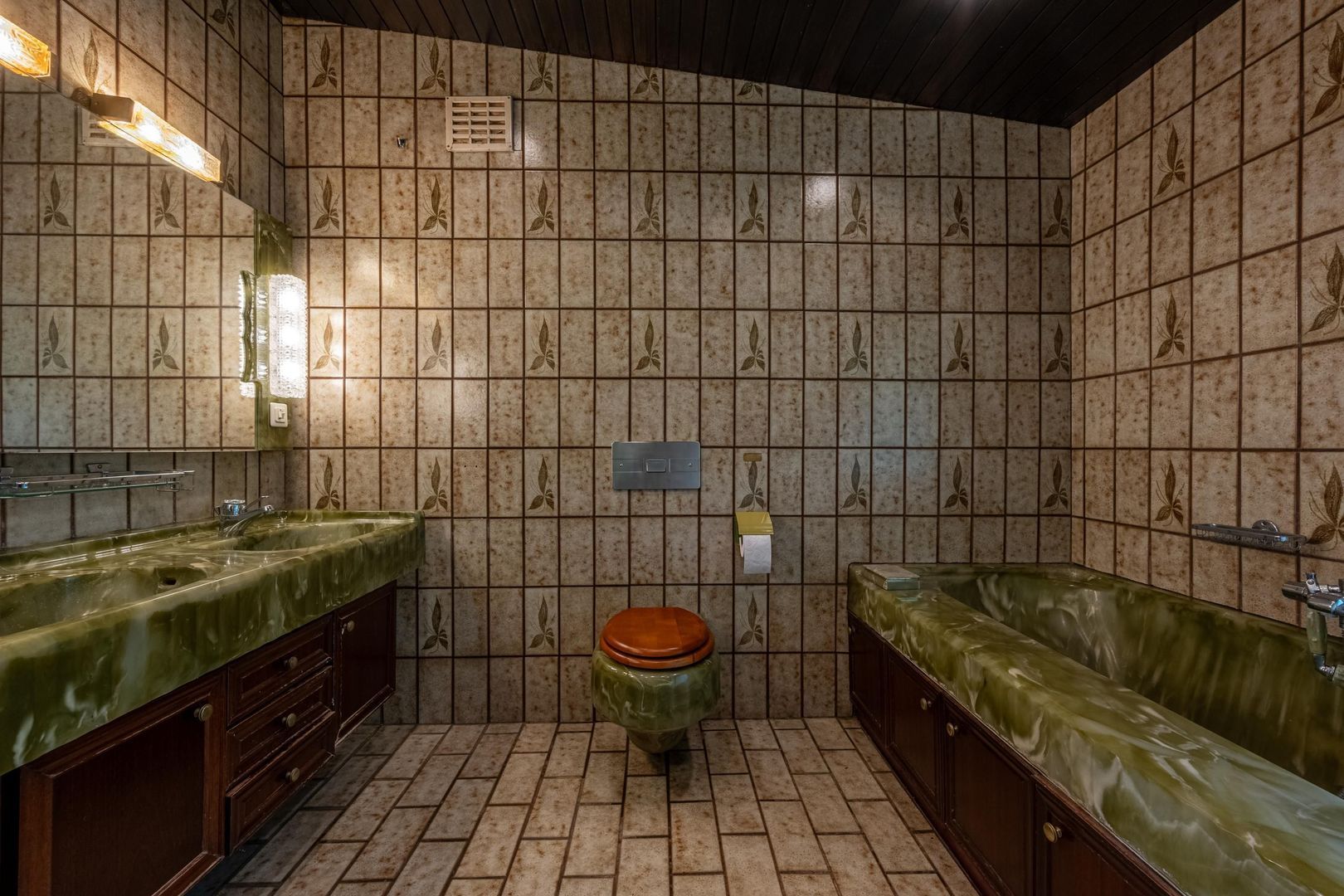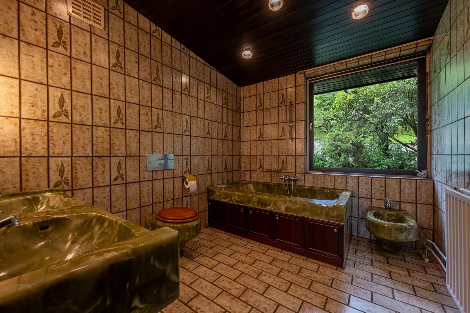 Op deze verdieping treffen we ook de ruime ‘master bedroom’ met aansluitende badkamer en een logeerkamer. De badkamer is ruim en ‘retro’ en ingericht met een royaal ligbad, een dubbele wastafel, bidet en toilet.
