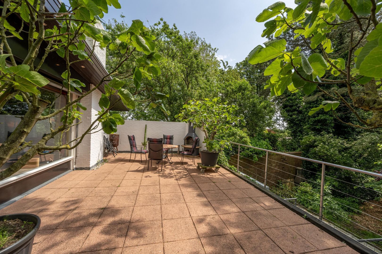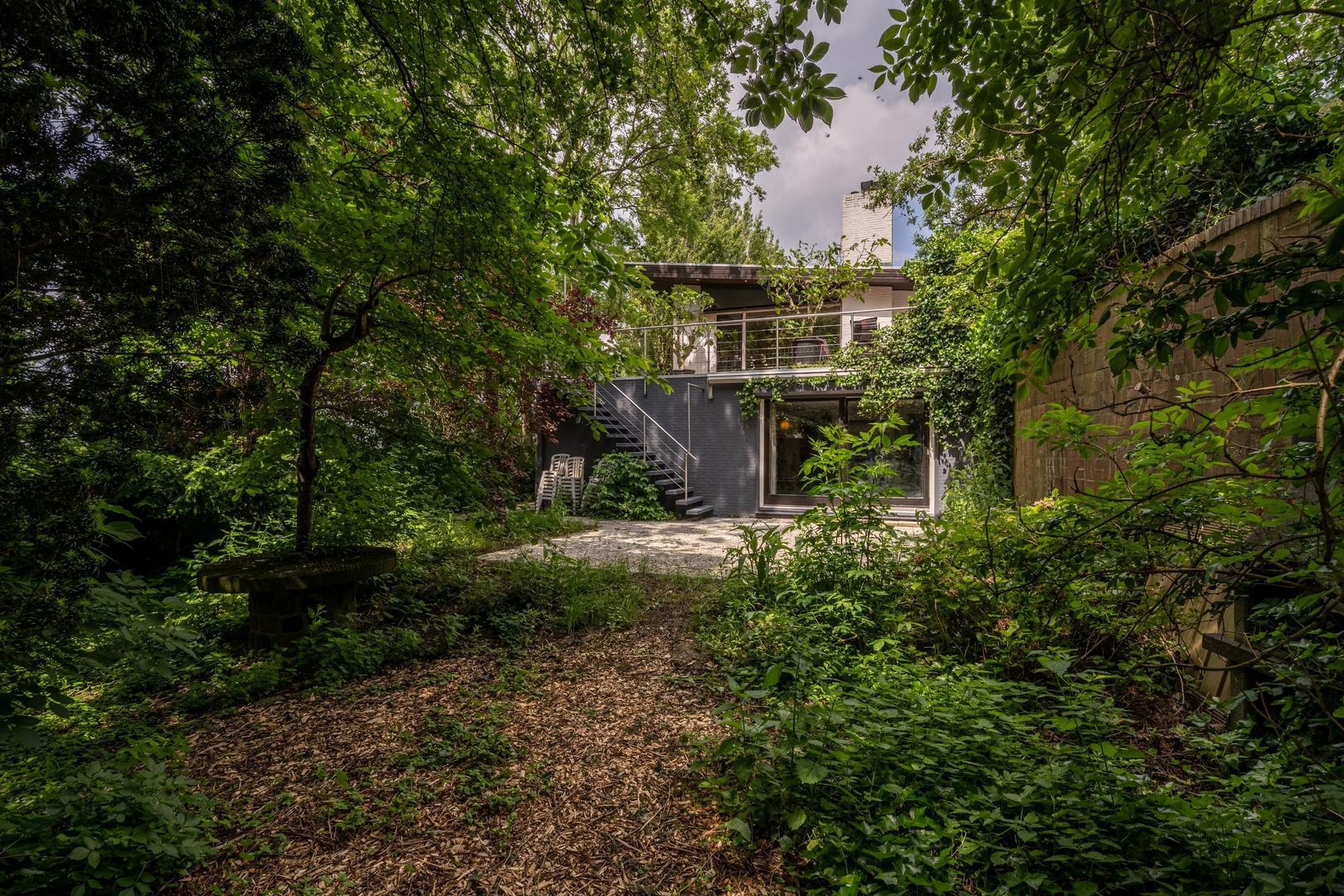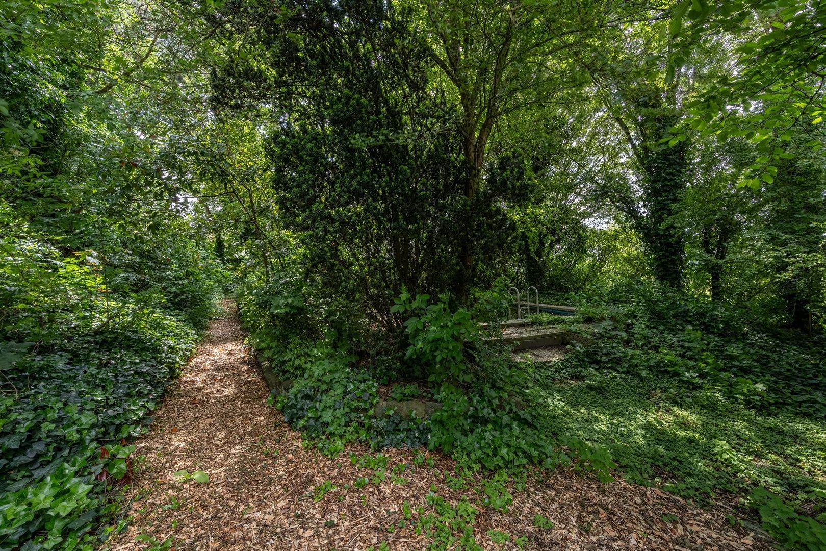 Het terrein rondom de woning is weelderig volgroeid met meer dan honderd gevarieerde soorten aan bomen en struiken. Merendeels ‘evergreen’ beplanting die het hele jaar door veel privacy garandeert.