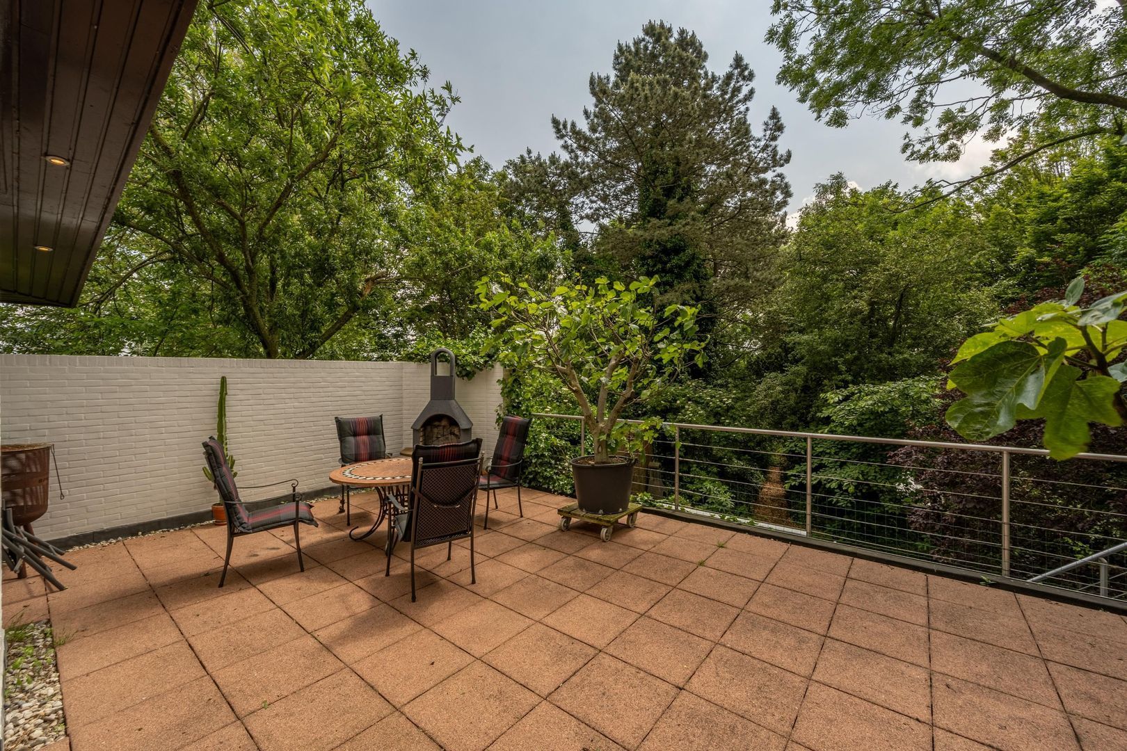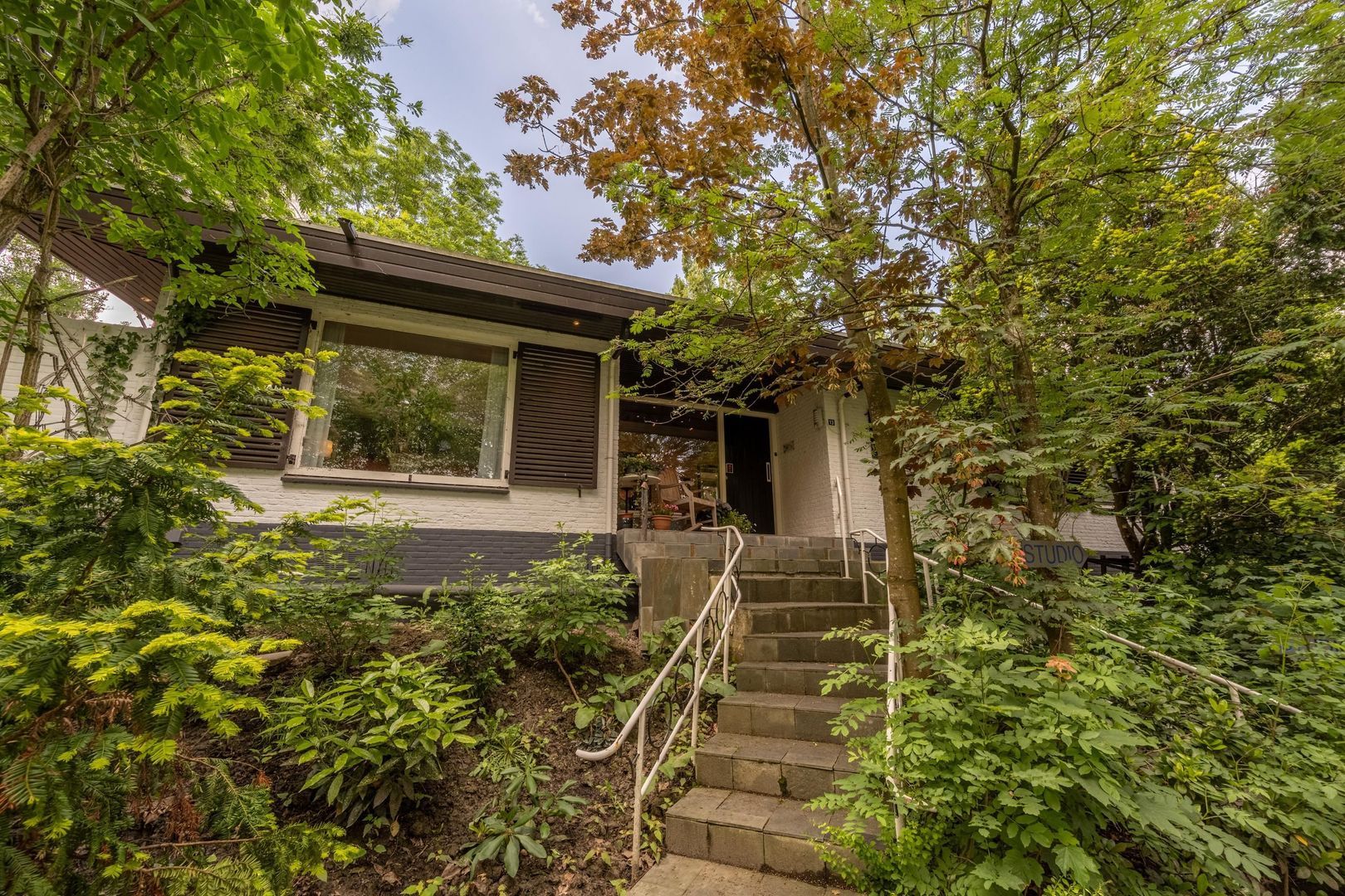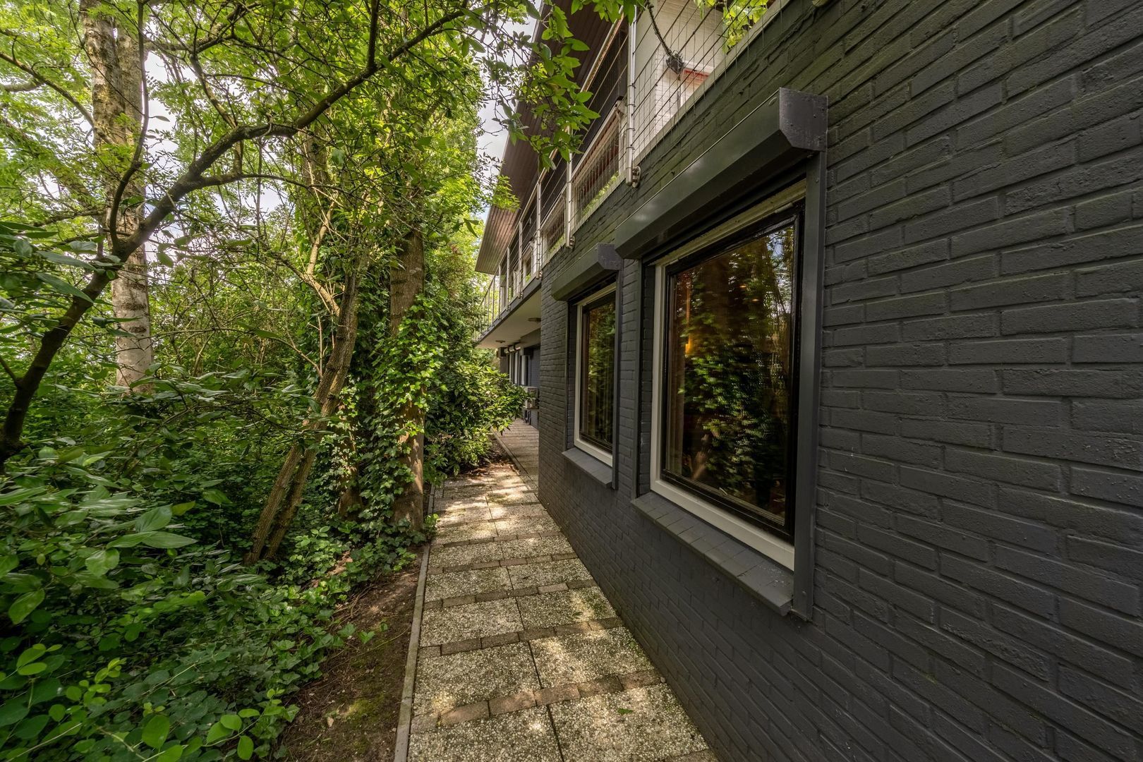 Het terrein rondom de woning is weelderig volgroeid met meer dan honderd gevarieerde soorten aan bomen en struiken. Merendeels ‘evergreen’ beplanting die het hele jaar door veel privacy garandeert.