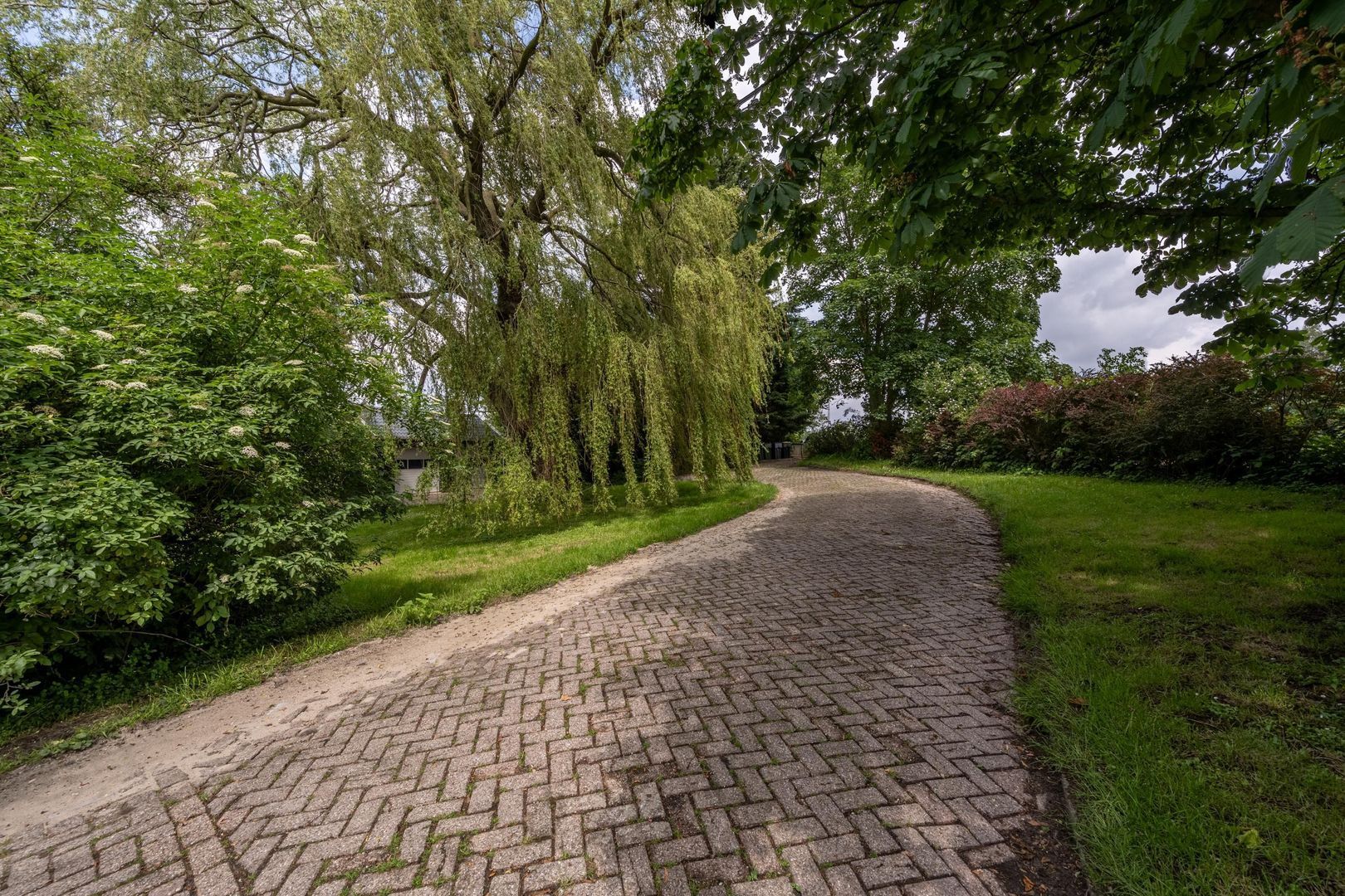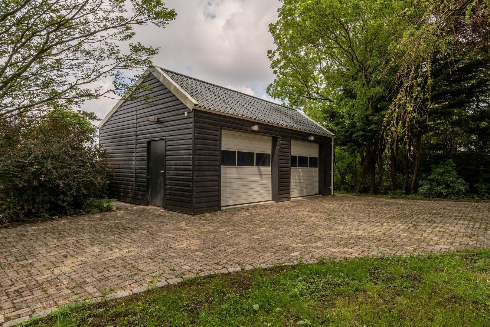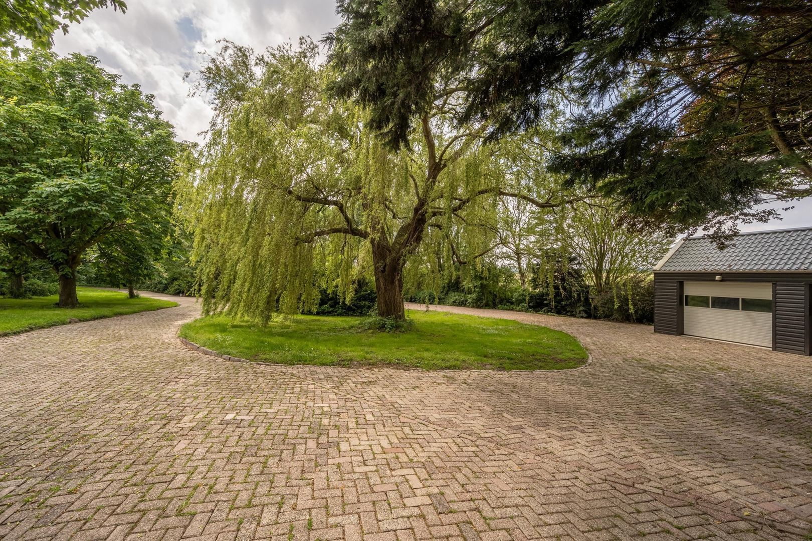 Het landhuis is gebouwd op ruim 3.000 m² eigen grond. Dit bestaat uit een grote groene border/buffer aan de straatkant, een eigen 150 meter lange oprijlaan met drie toegangen tot de woning op de begane grond en drie toegangen op de verdieping. In de tuin is een buitenzwembad aanwezig en er is een paar jaar geleden een nieuwe onderhoudsvrije, moderne dubbele loods opgetrokken.