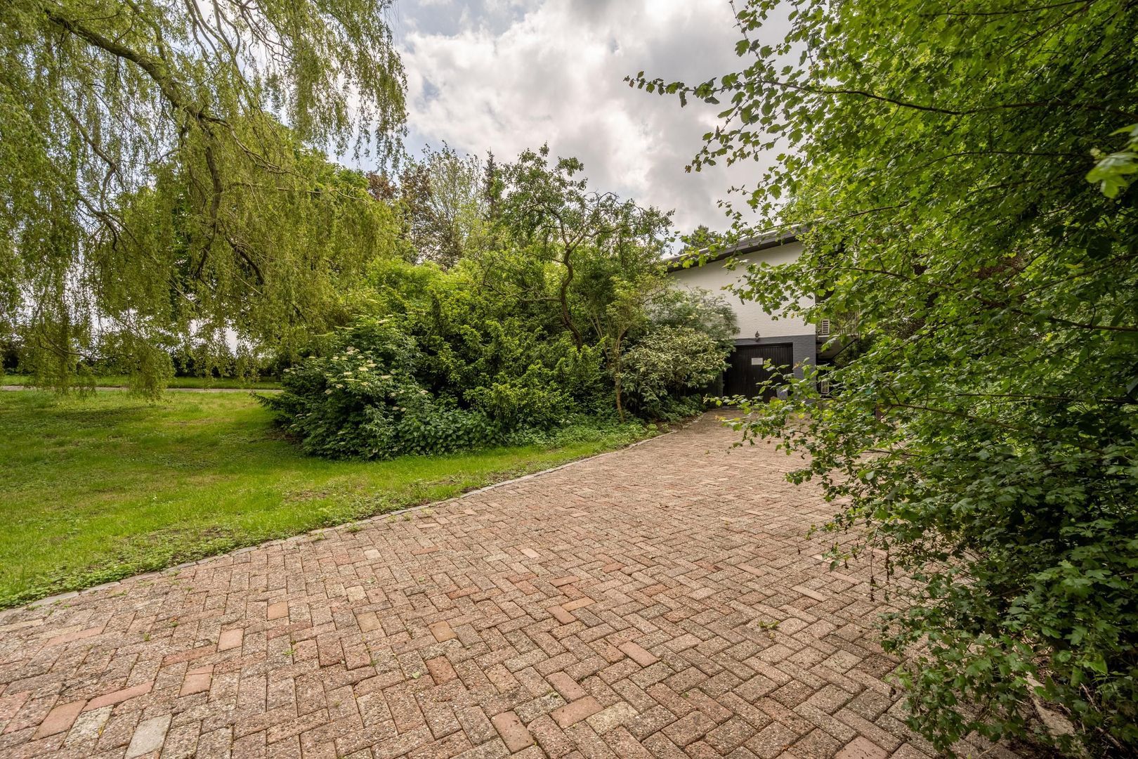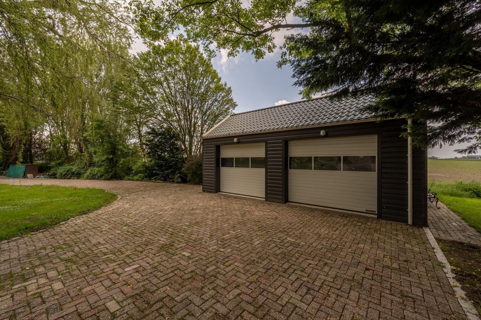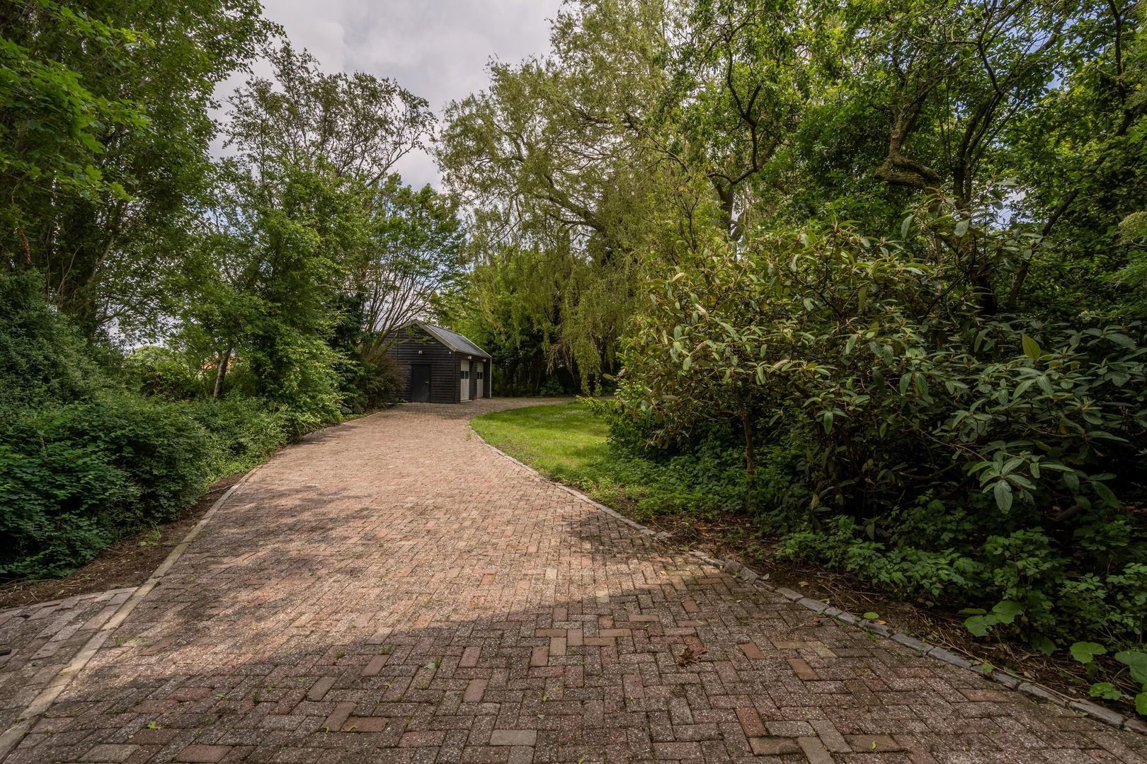 Het landhuis is gebouwd op ruim 3.000 m² eigen grond. Dit bestaat uit een grote groene border/buffer aan de straatkant, een eigen 150 meter lange oprijlaan met drie toegangen tot de woning op de begane grond en drie toegangen op de verdieping. In de tuin is een buitenzwembad aanwezig en er is een paar jaar geleden een nieuwe onderhoudsvrije, moderne dubbele loods opgetrokken.