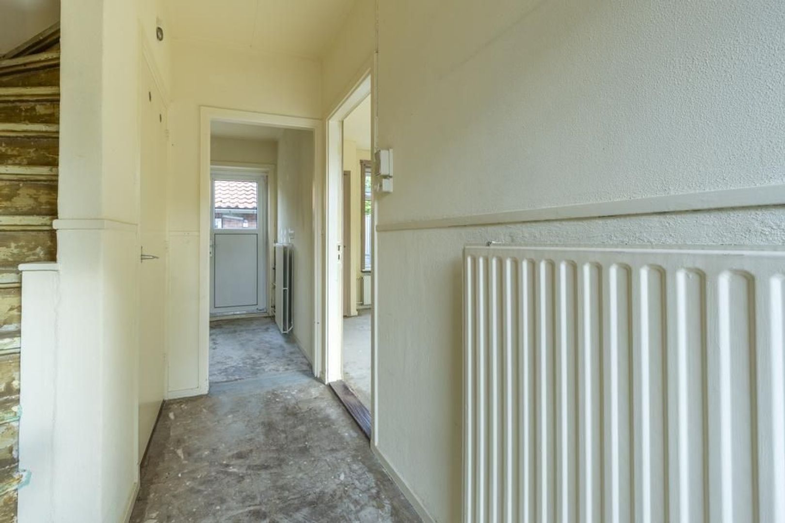 De indeling is globaal als volgt: entree, hal met toiletruimte, meterkast, trapopgang en trapkast. Doorzonwoonkamer en dichte keuken met eenvoudige wandopstelling.