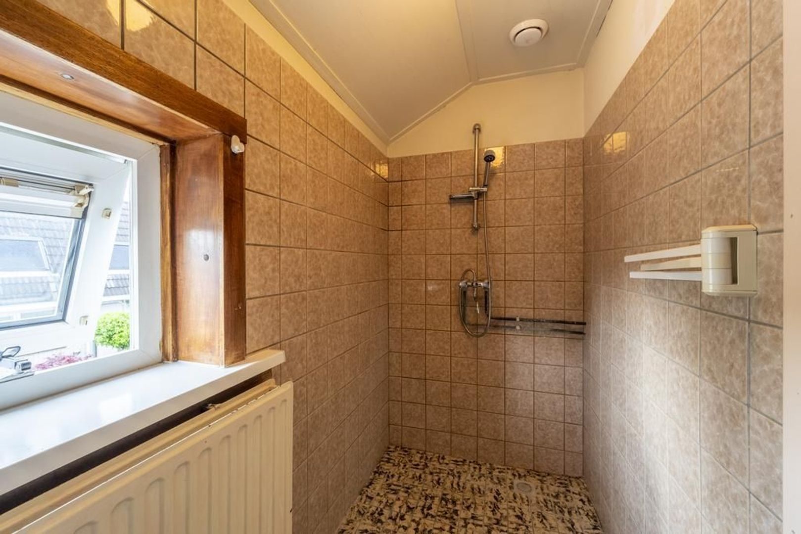 Op de eerste verdieping zijn de overloop, drie slaapkamers, waarvan twee kamers zijn voorzien van een vaste kast, en de badkamer. Deze is eenvoudig ingericht met een wastafel, douchegelegenheid en een raam.
